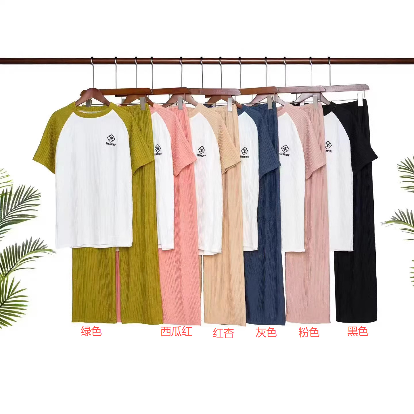 동남아시아 문자 자수 천잎 세트 여성 여름 패션 아이스 실크 홈웨어 반팔 긴바지 투피스 세트