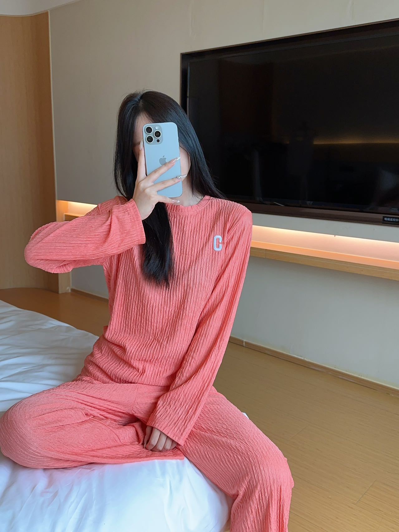 동남아시아 문자 자수 천잎 세트 여성 여름 패션 아이스 실크 홈웨어 반팔 긴바지 투피스 세트스토어 가기