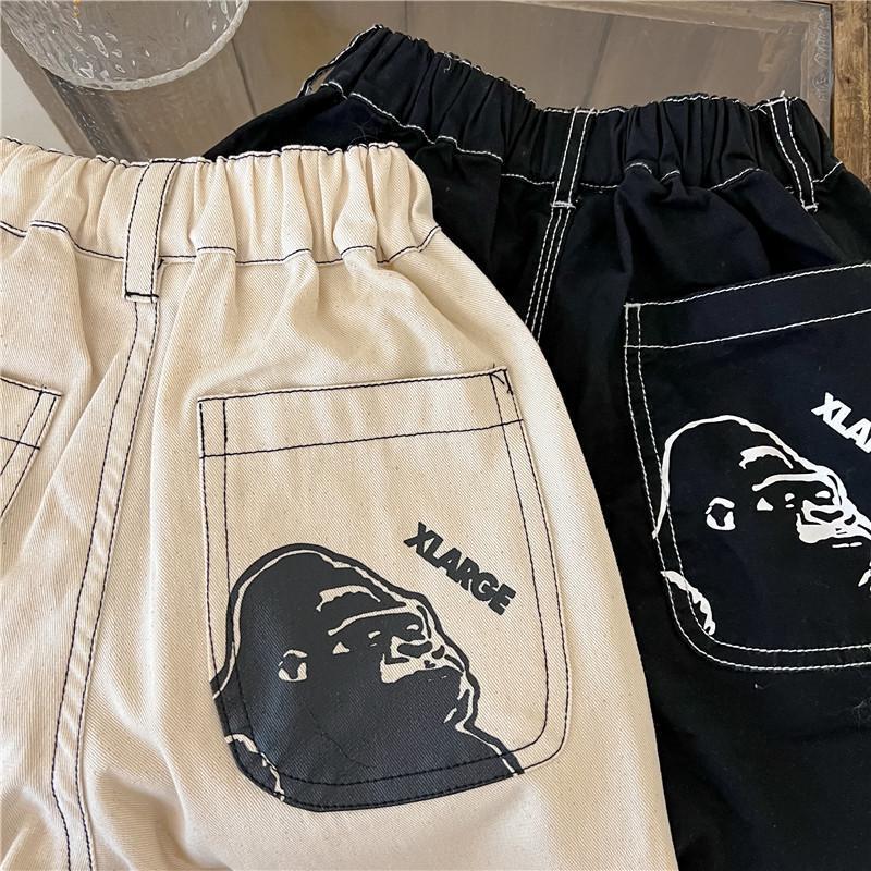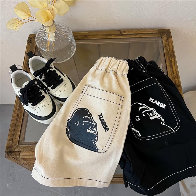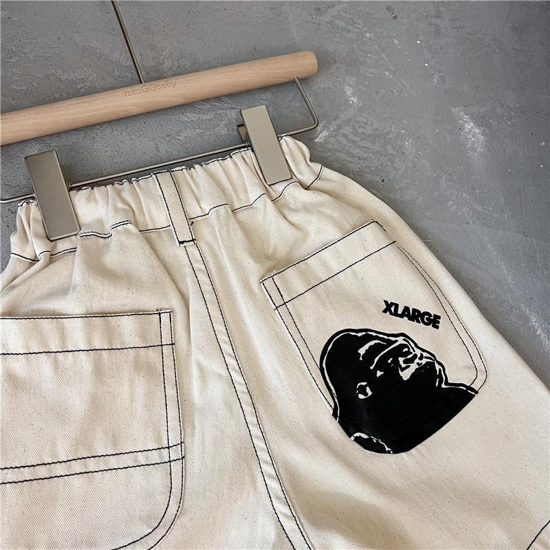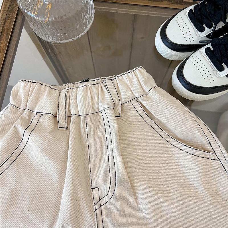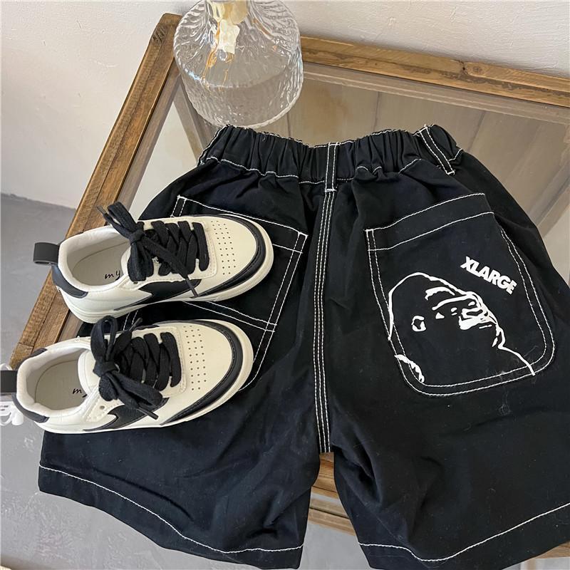 Chen Ma 어린이 반바지 2025 여름 새 소년과 소녀 만화 밝은 라인 면 캐주얼 바지 아기 한국식 5 점 바지스토어 가기