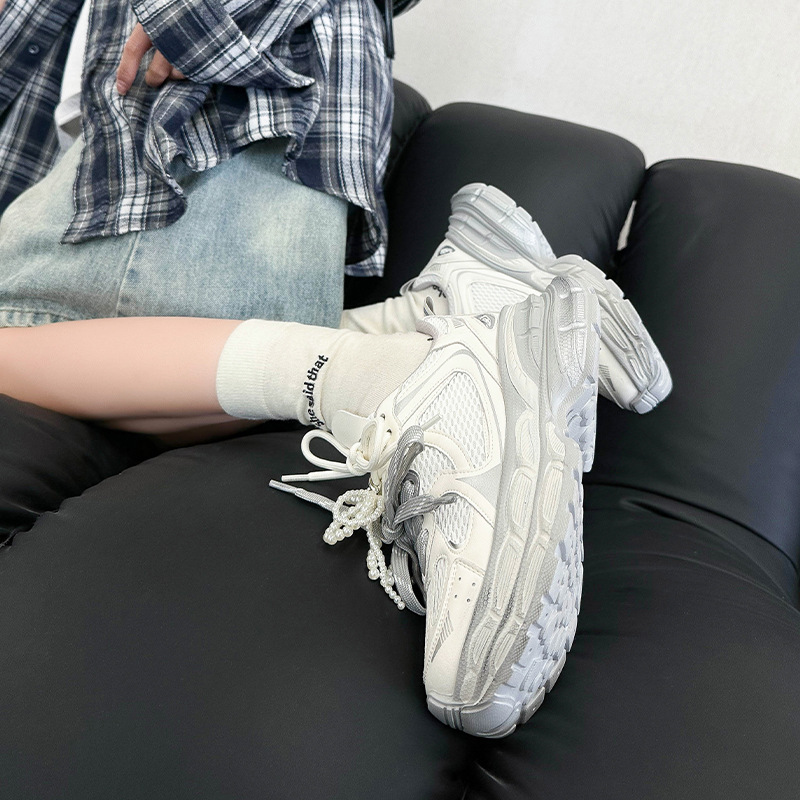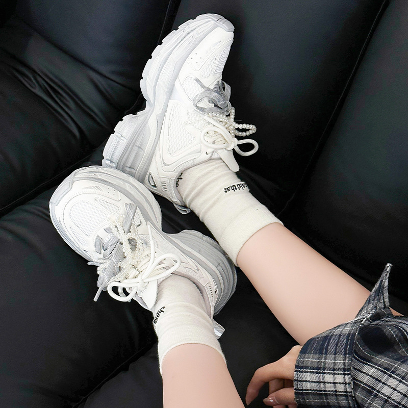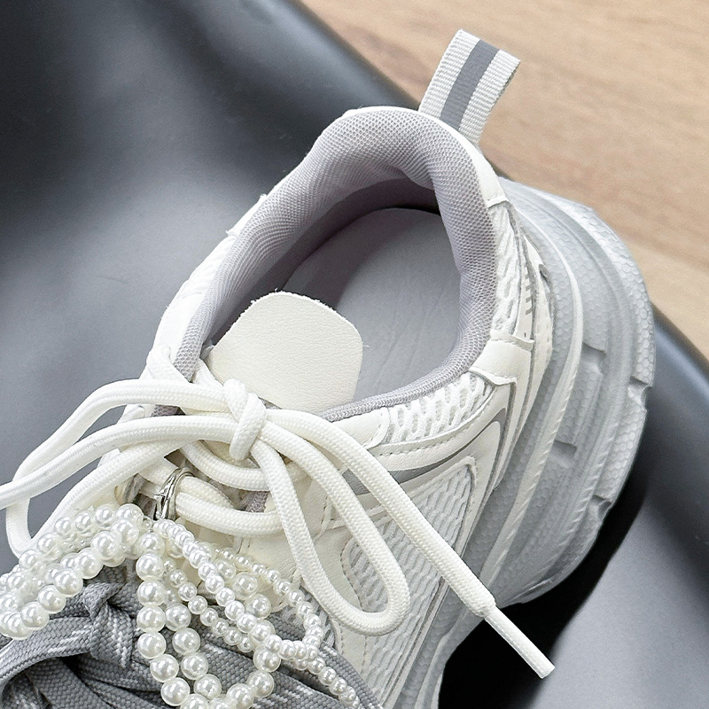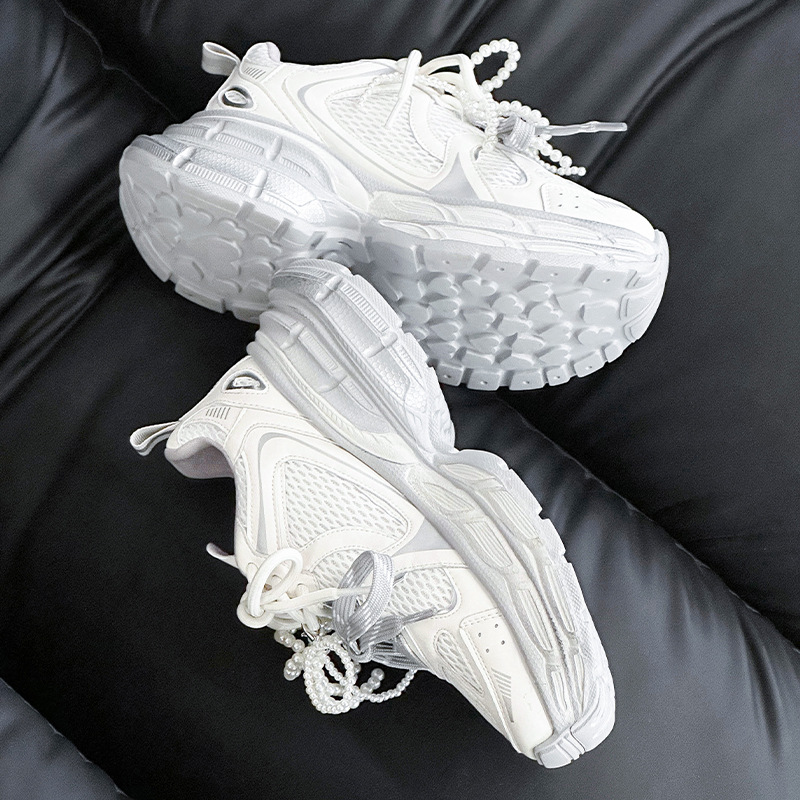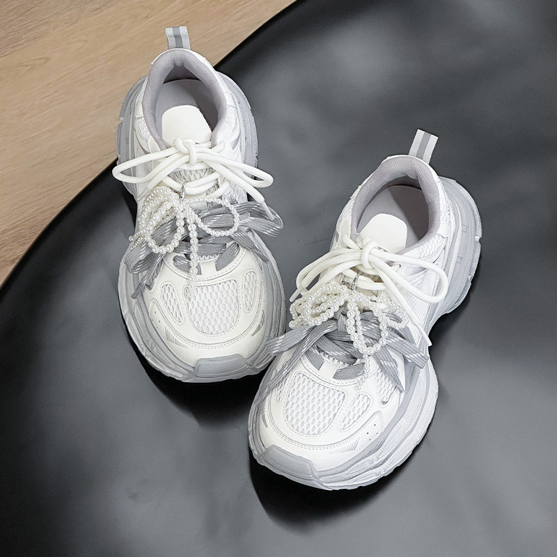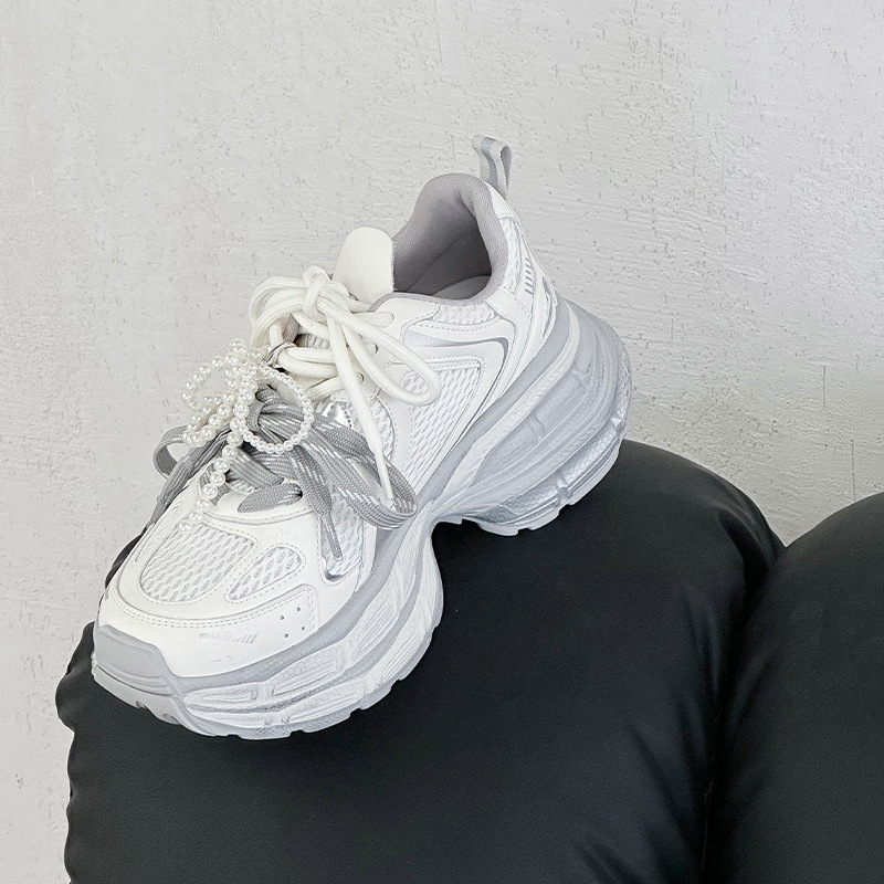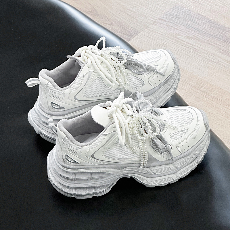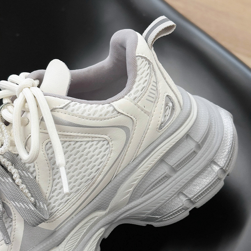진짜 가죽 조커 두꺼운 바닥 토르 신발 증가 여성 2025 봄 새로운 통기성 캐주얼 패션 메쉬 운동화 여성