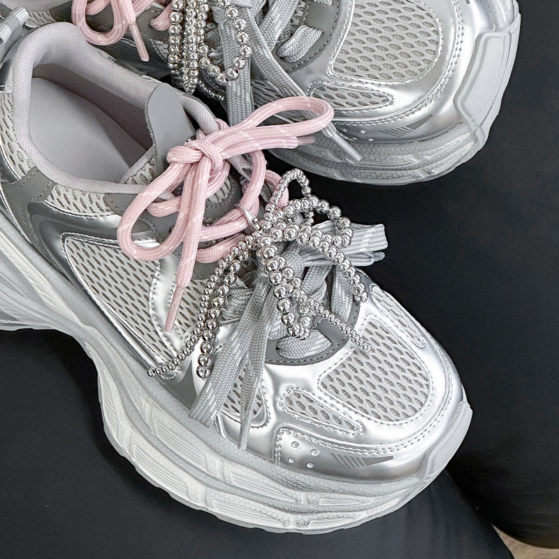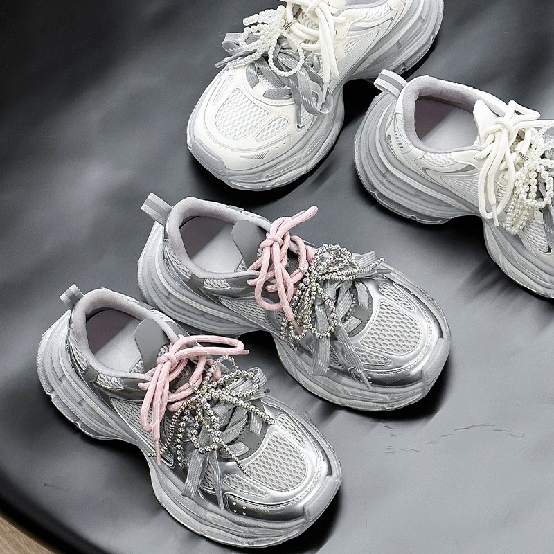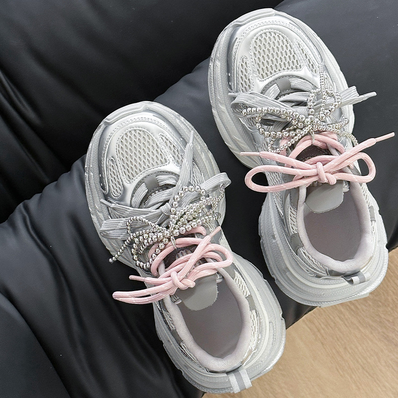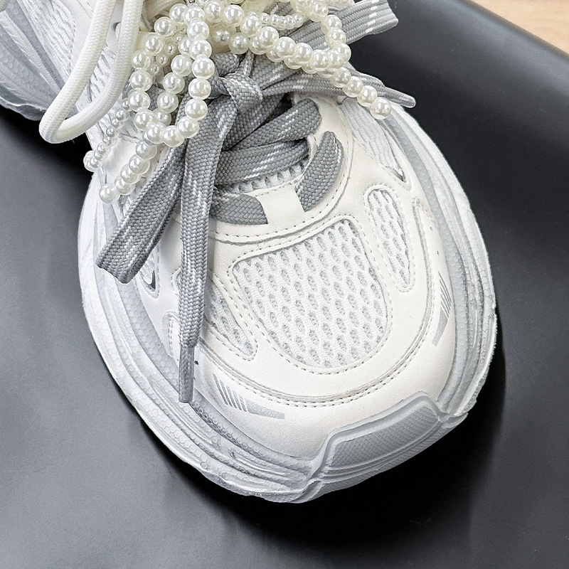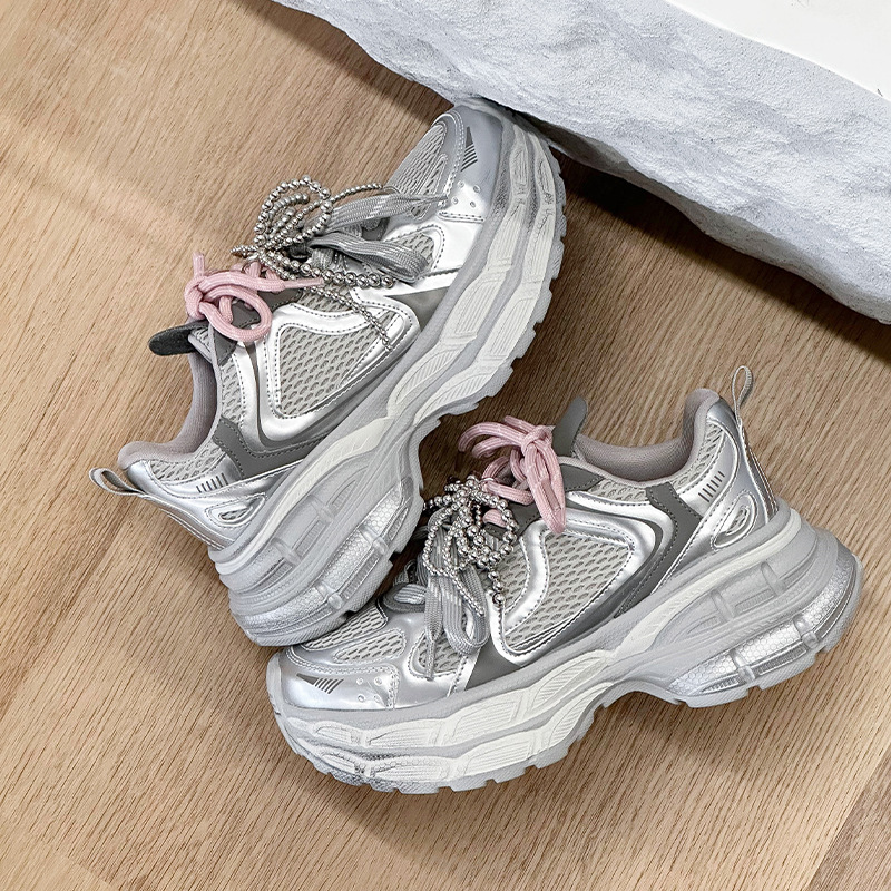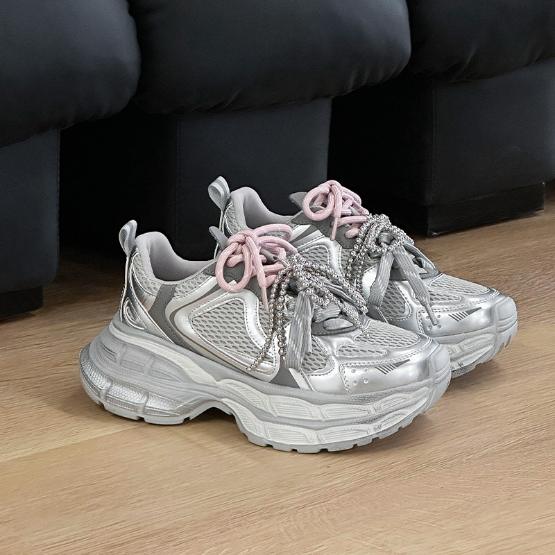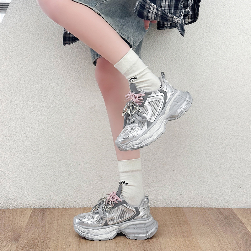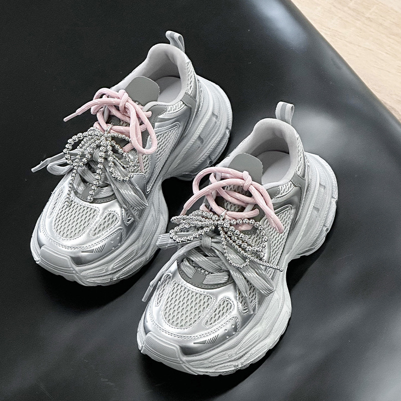 진짜 가죽 조커 두꺼운 바닥 토르 신발 증가 여성 2025 봄 새로운 통기성 캐주얼 패션 메쉬 운동화 여성