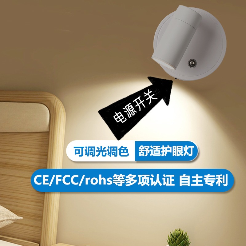 구멍을 뚫거나 배선이 필요 없는 국경 간 LED 실내 벽 램프, 자기 벽 램프, 침실 머리맡 고급 야간 조명