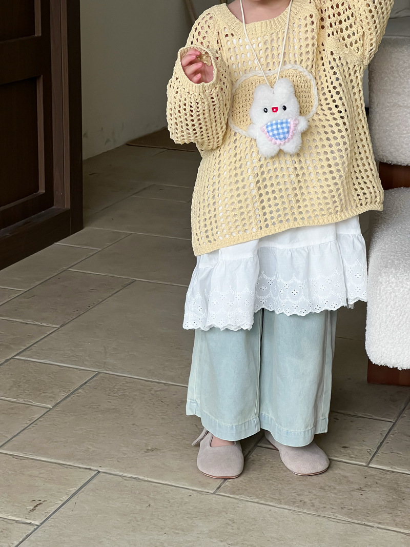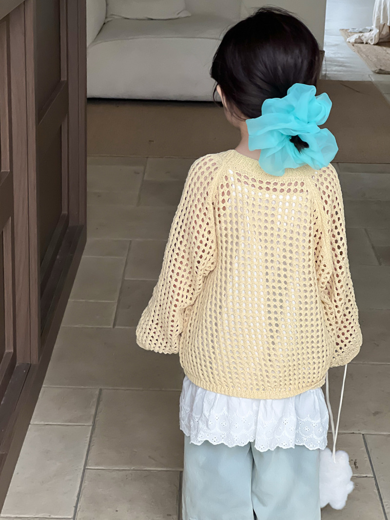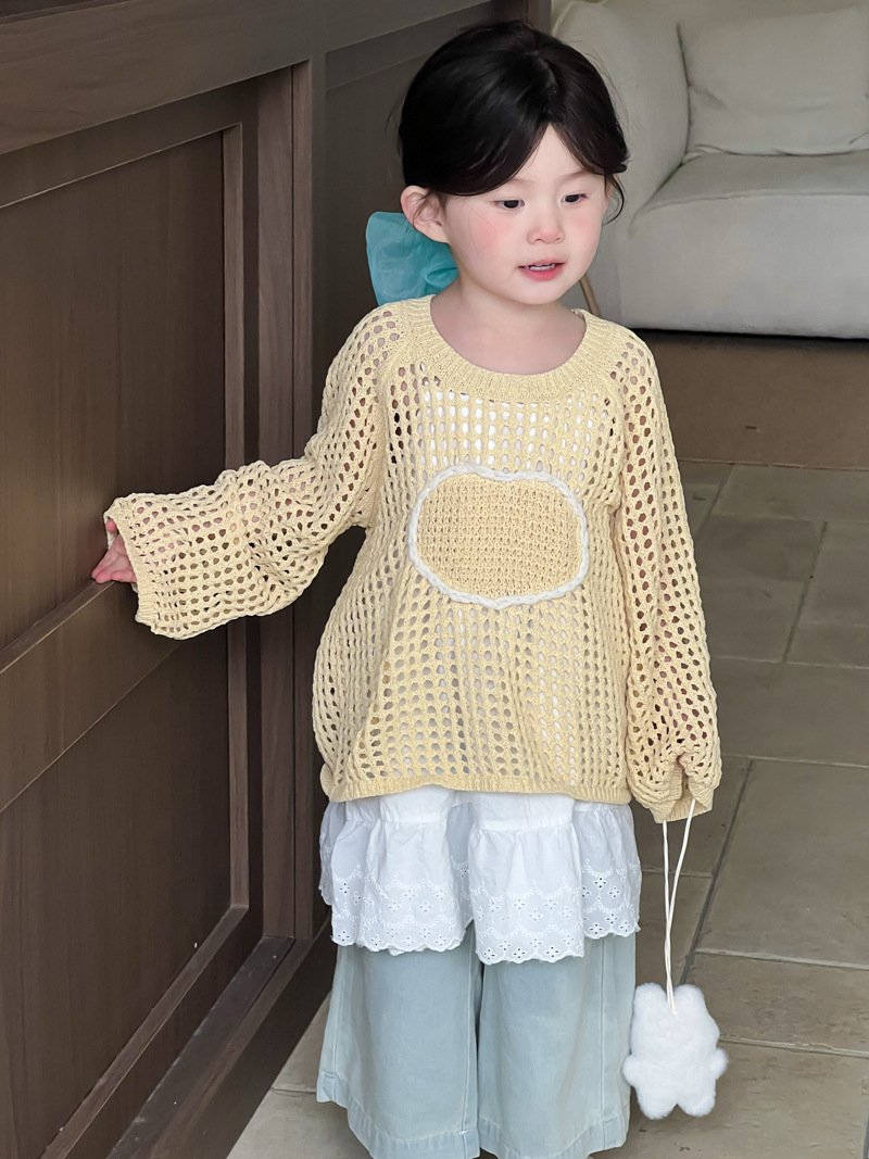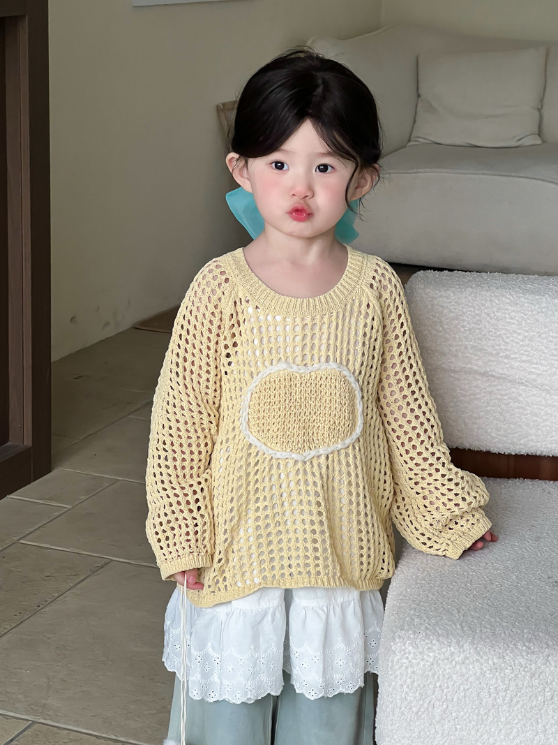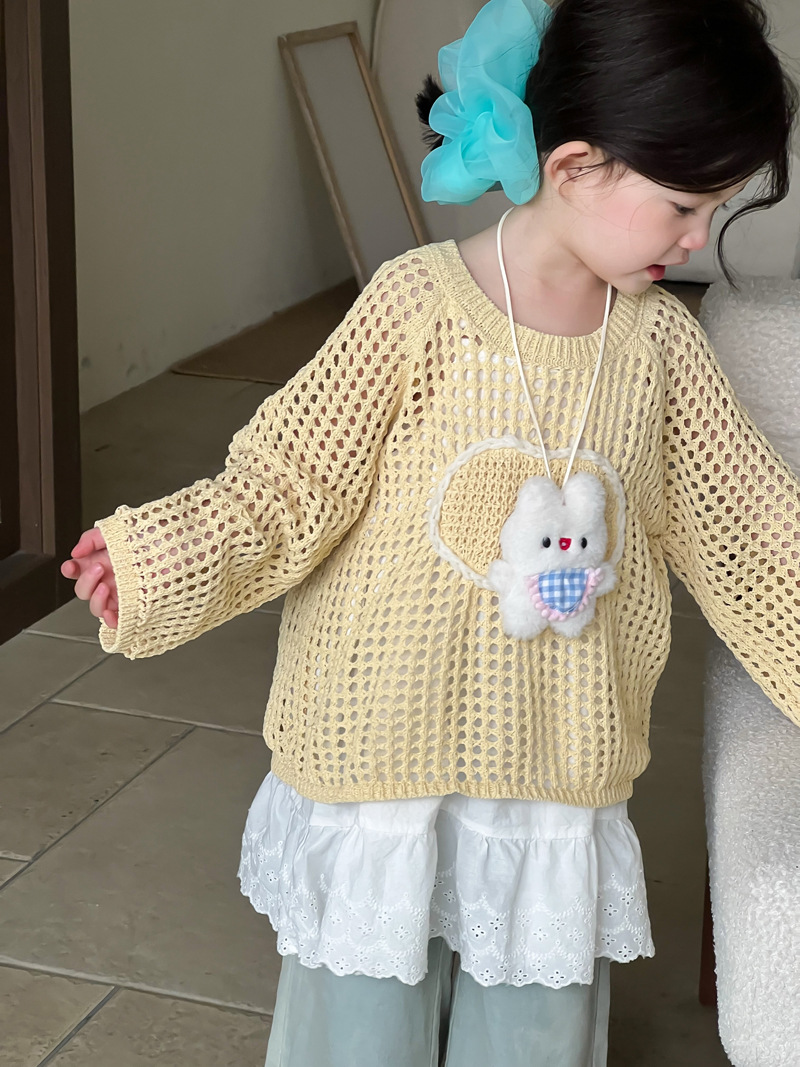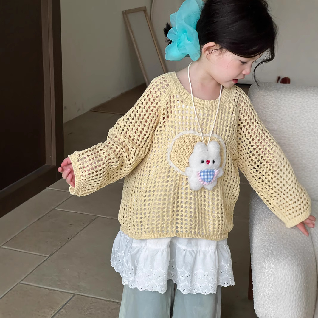 2025 새로운 아동복 소녀 한국식 중공 긴팔 니트웨어 어린이 봄 느슨한 코트 블라우스 탑
