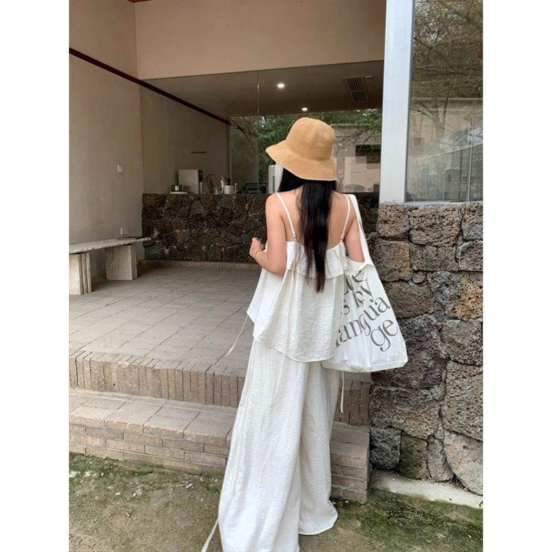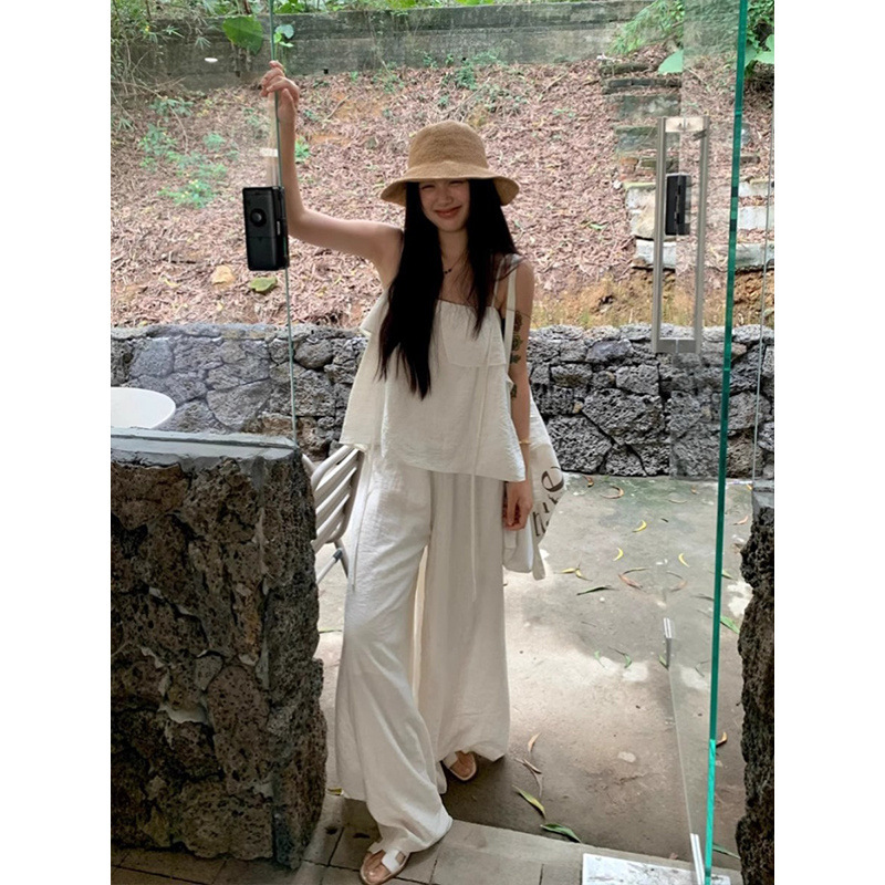 패션 세트 여성 디자인 카미솔 여성 최고 여름 느슨한 와이드 레그 캐주얼 투피스 세트스토어 가기