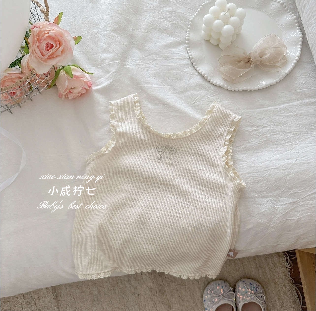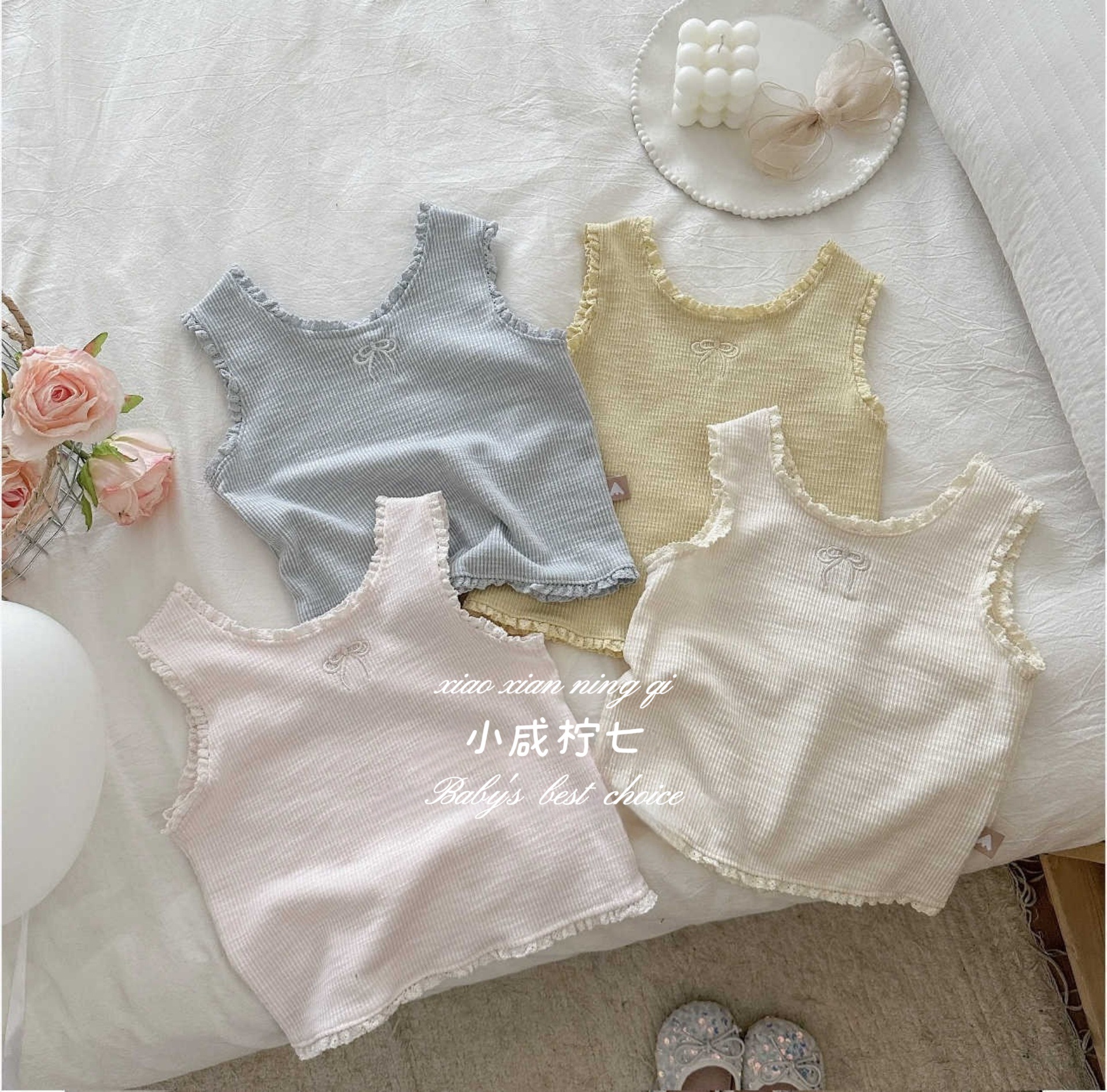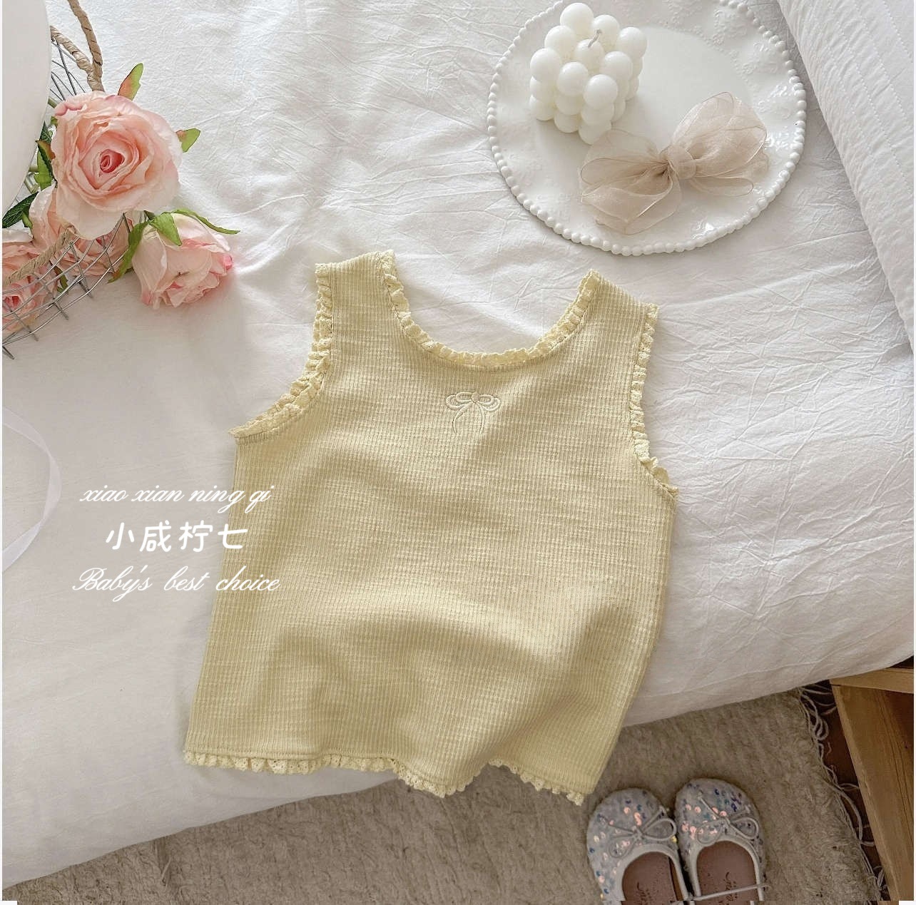 여아용 자수 러플 민소매 탑, 귀엽고 스타일리시한 여아용 셔츠, 귀엽고 다재다능한 이너웨어, 도매스토어 가기