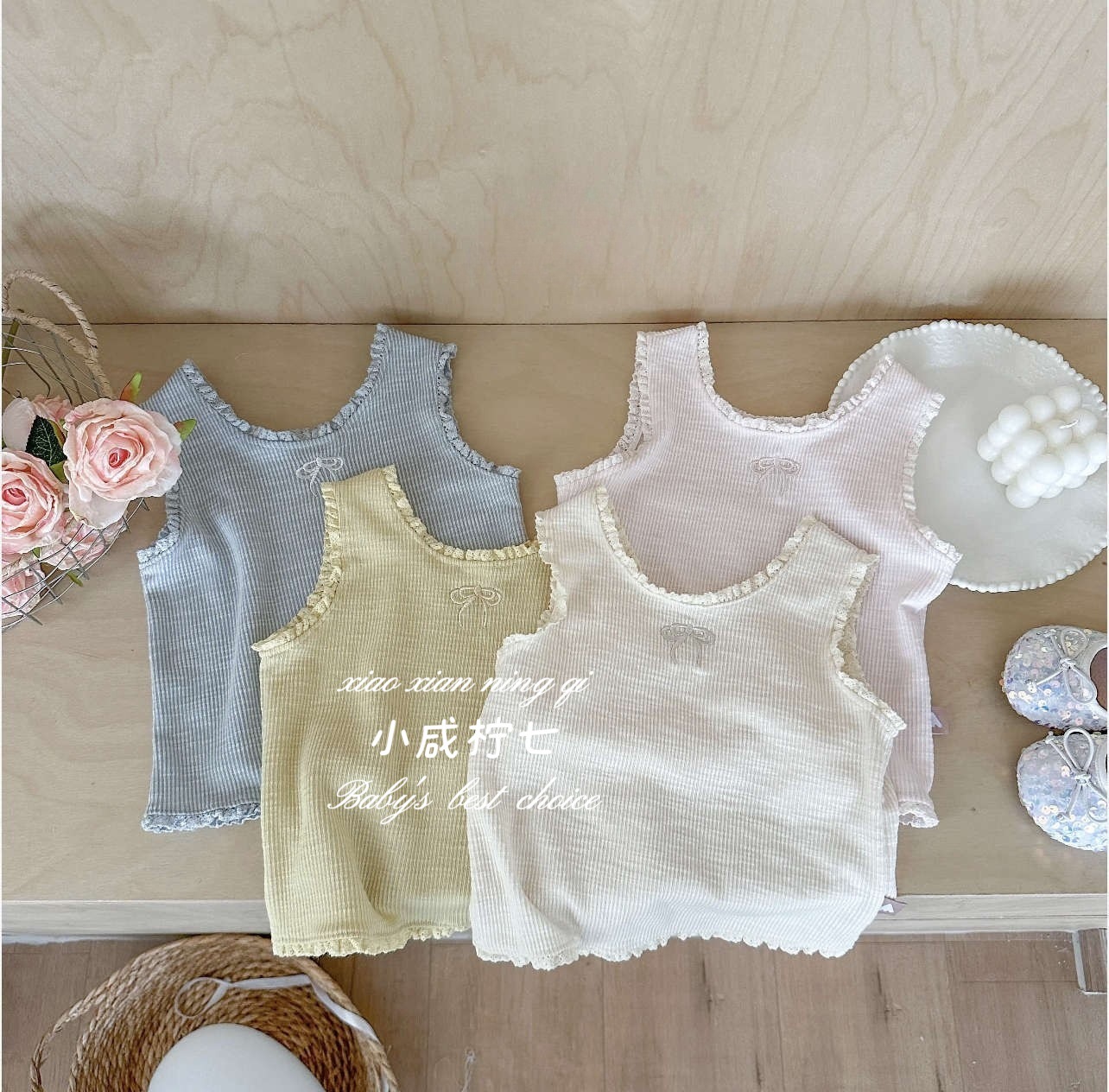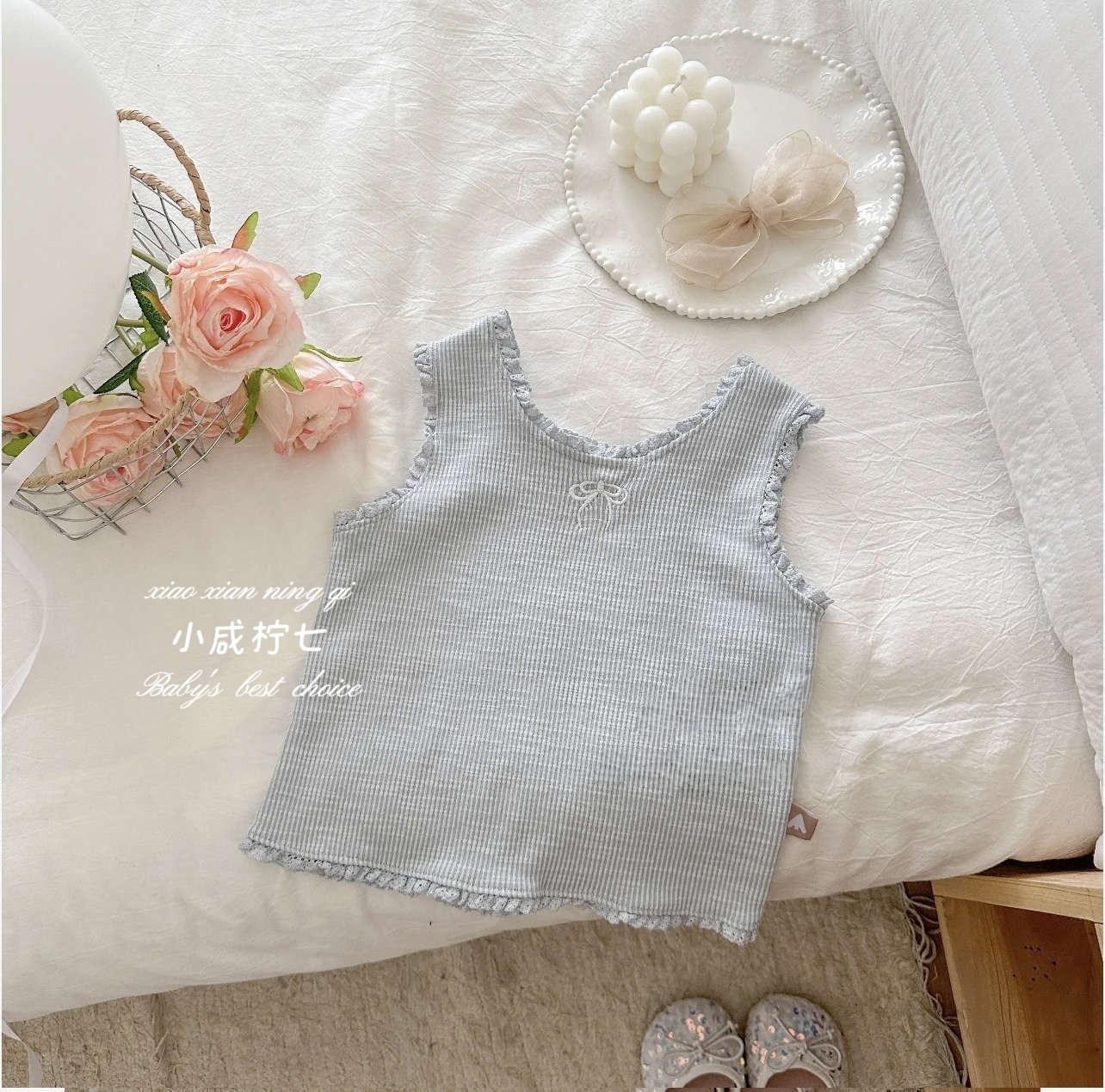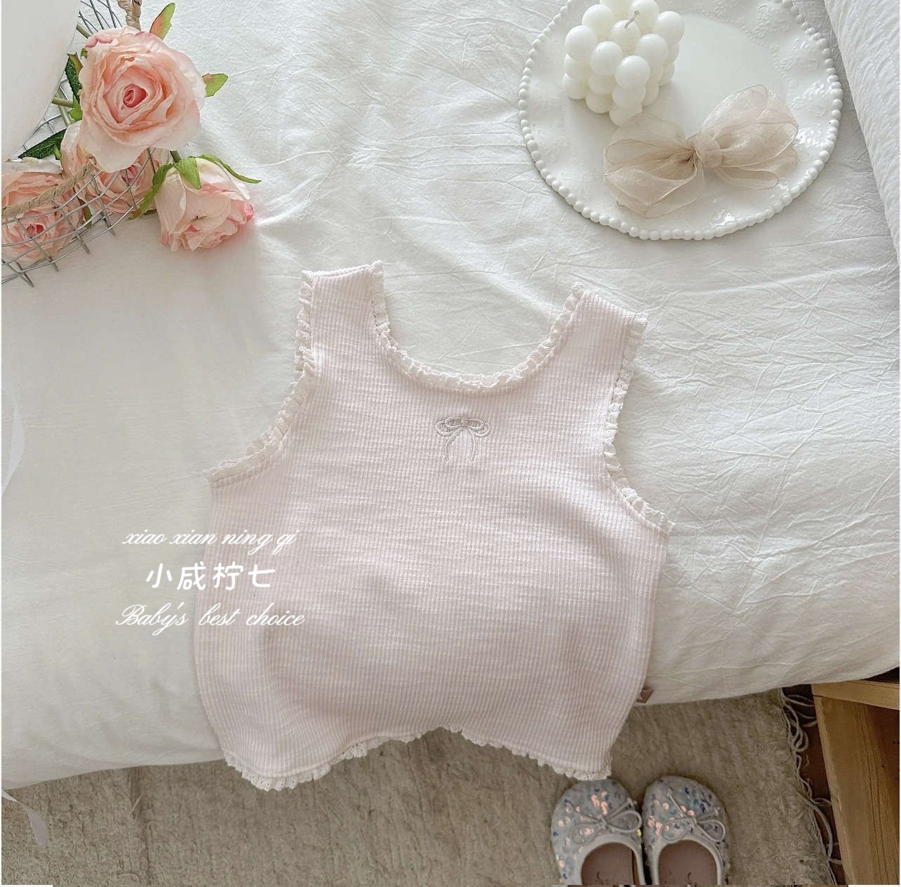 여아용 자수 러플 민소매 탑, 귀엽고 스타일리시한 여아용 셔츠, 귀엽고 다재다능한 이너웨어, 도매스토어 가기