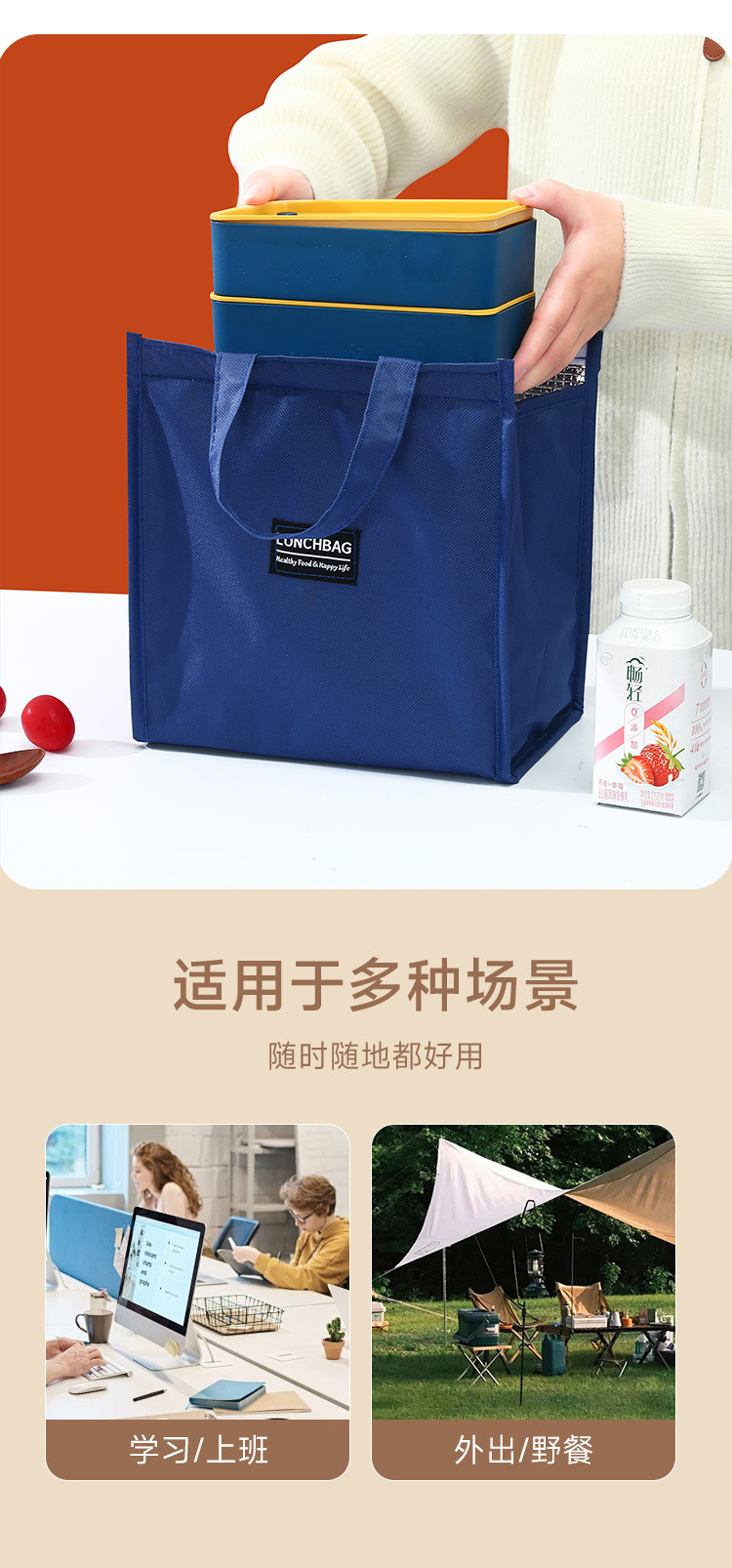 휴대용 도시락 가방 점심 가방 학생 사무실 노동자 휴대용 가방 얼룩 방지 두꺼운 알루미늄 호일 점심 가방 테이크 아웃 단열 가방
