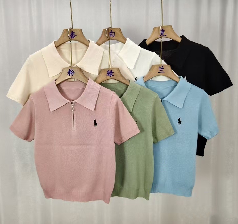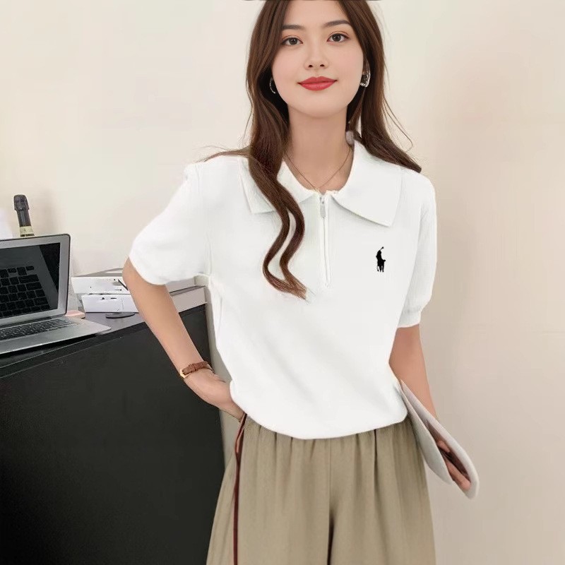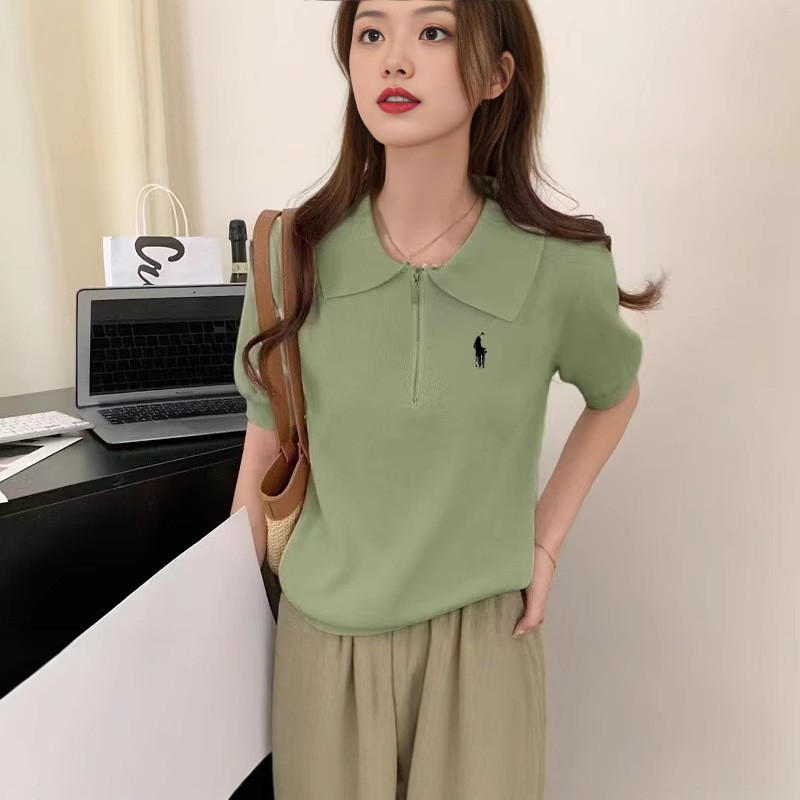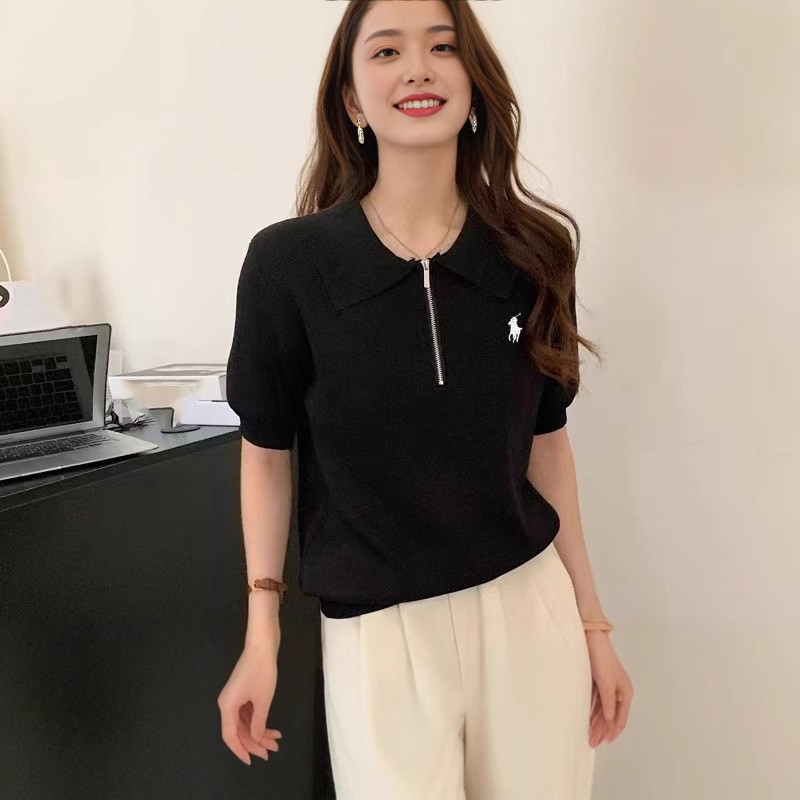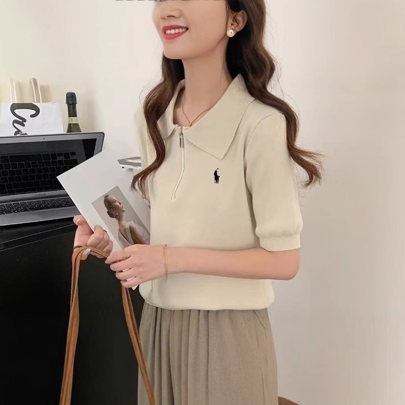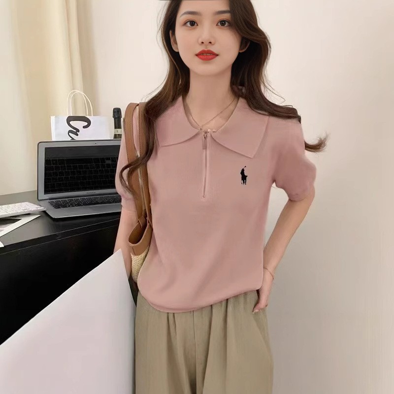 봄과 여름 한국 스타일 옷깃 반팔 셔츠 여자 여름 얇은 자수 유행 통기성 슬리밍 올 매치 니트 탑