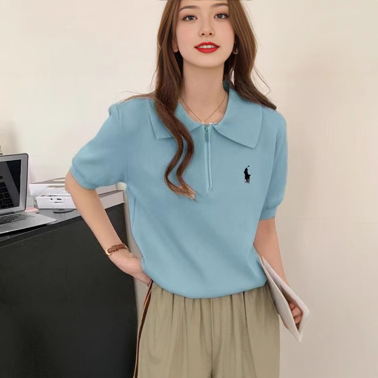 봄과 여름 한국 스타일 옷깃 반팔 셔츠 여자 여름 얇은 자수 유행 통기성 슬리밍 올 매치 니트 탑스토어 가기
