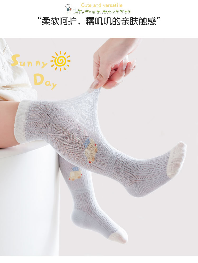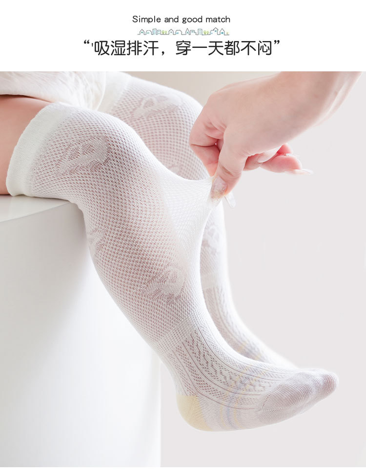 25 봄과 여름 아기 양말 만화 자동차 아기 스타킹 메쉬 얇은 통기성 어린이 항균 무릎 양말