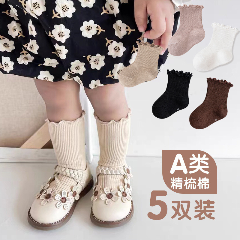 어린이 양말 아기 봄 가을면 소나무 귀 누출 어린이 짧은 양말 아기의 중간 튜브 양말 걸스 레이스 양말스토어 가기