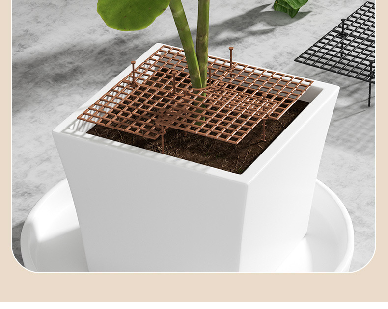 护土栏是一个轻盈、坚韧的网状栅栏,直接放置于花盆土壤表面,如同一道温柔的防护网,将土壤与宠物隔开,有效阻止宠物扒土、啃咬植物或在里面“埋宝藏”。