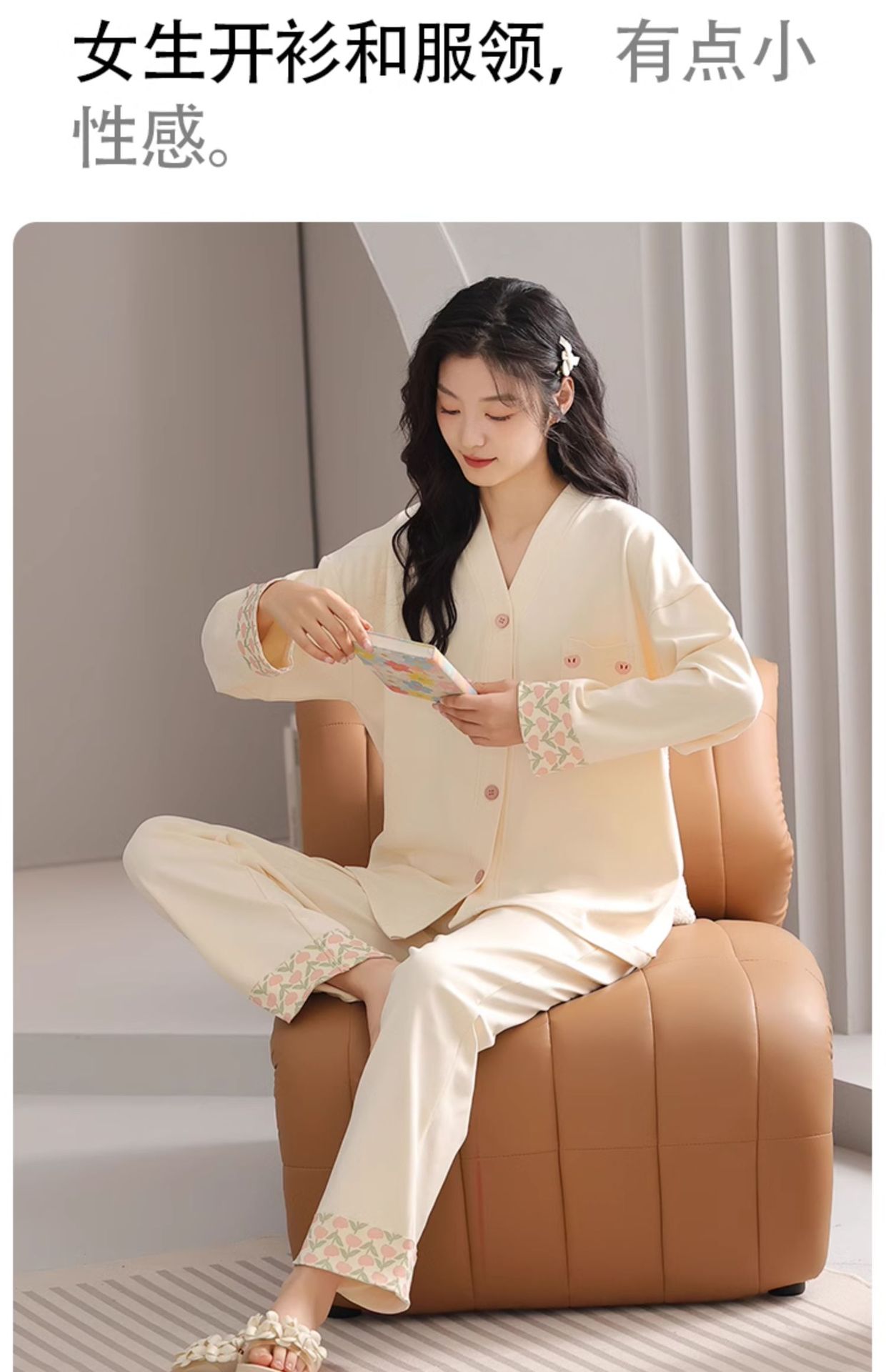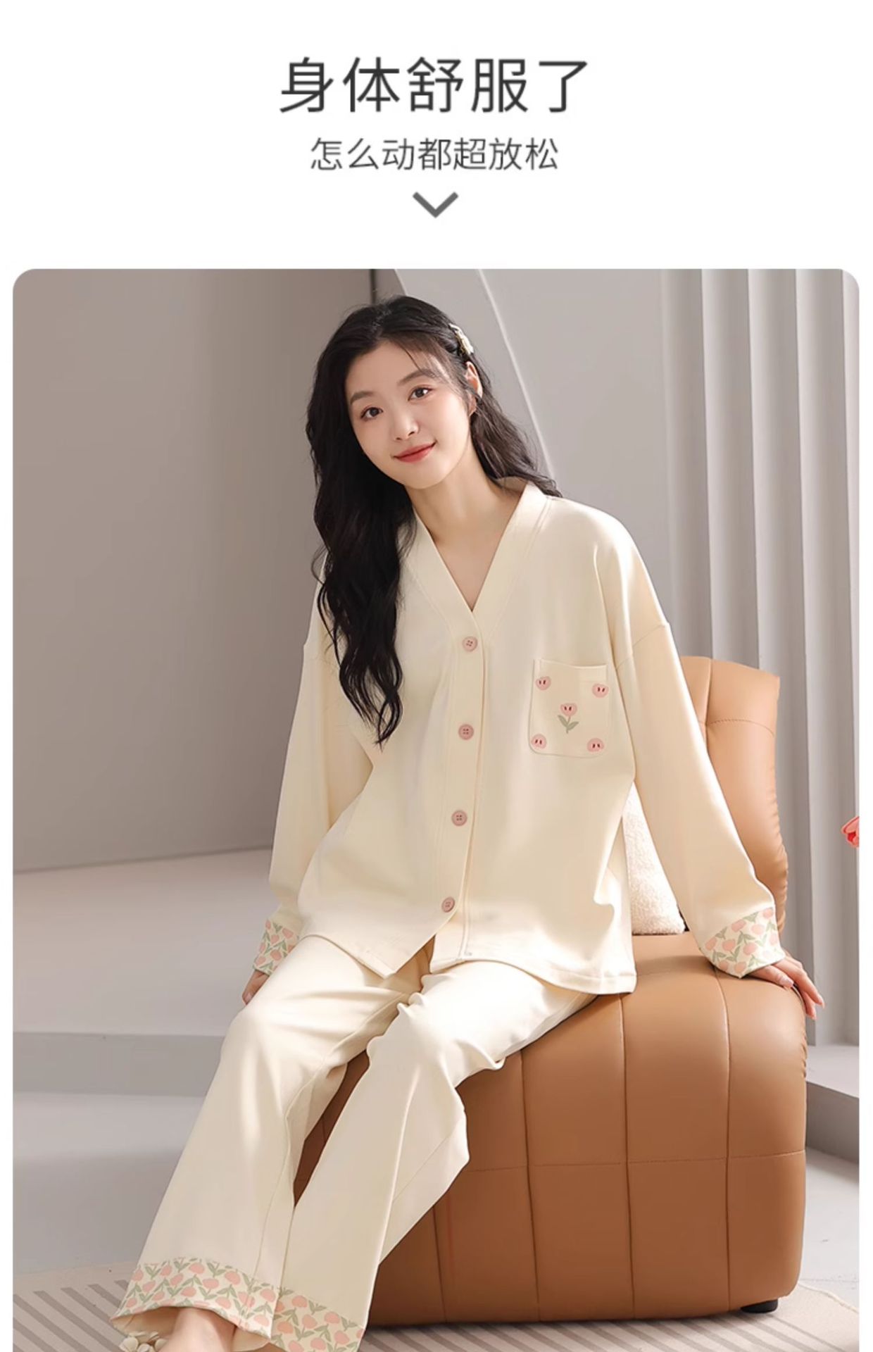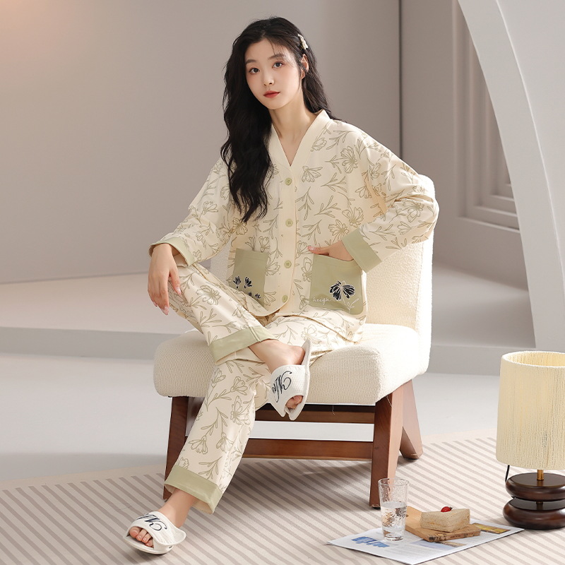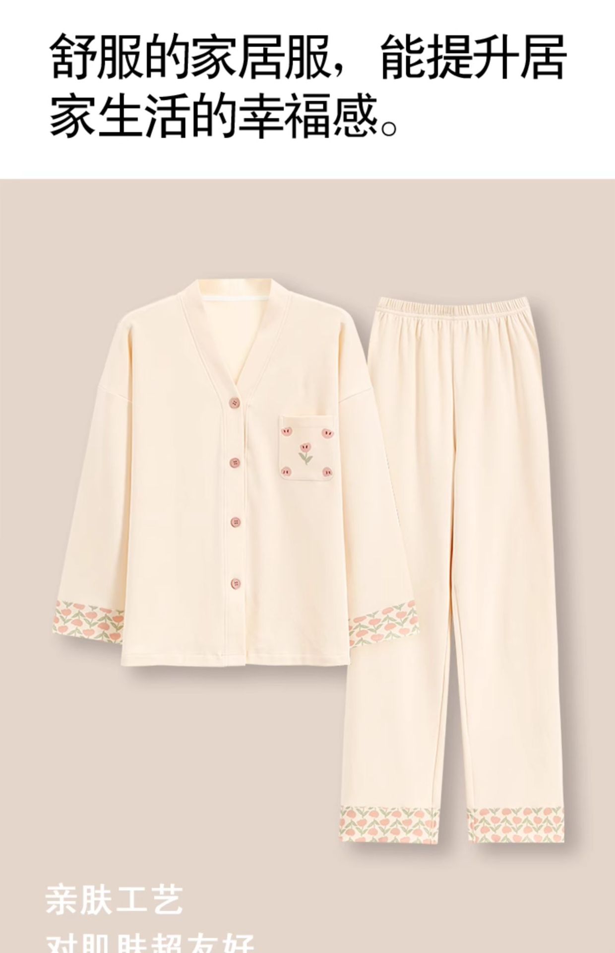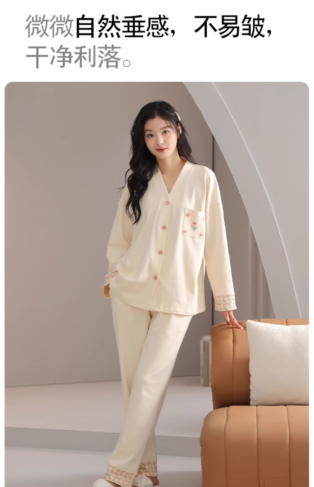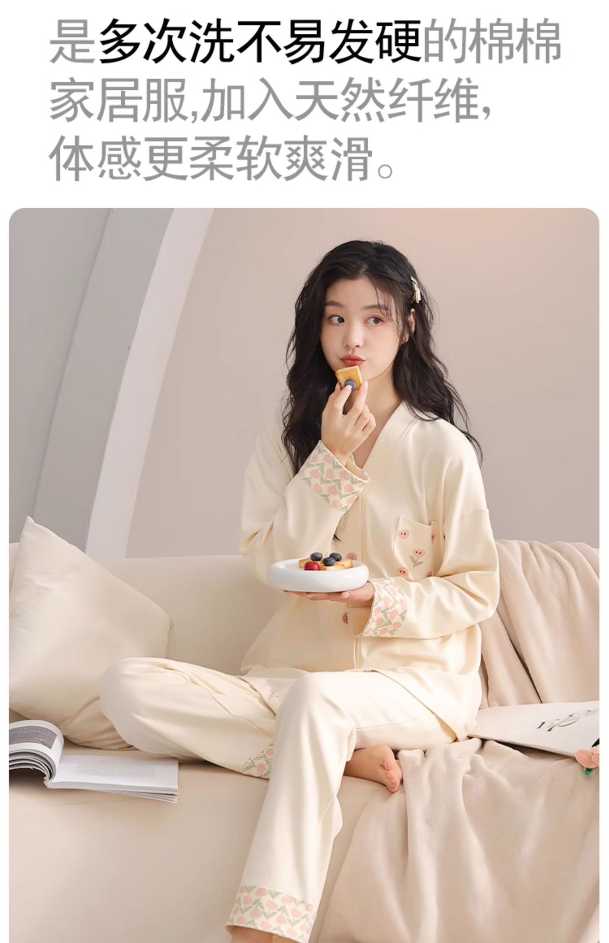 7A 세균성 면화 잠옷 여성 클래스 A 면 봄과 가을 긴 소매 새로운 중국 캐주얼 아웃웨어 홈 의류 세트스토어 가기