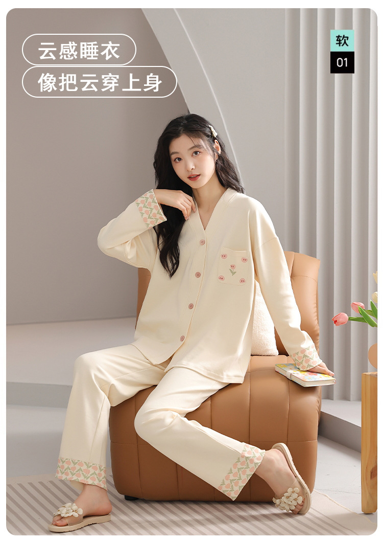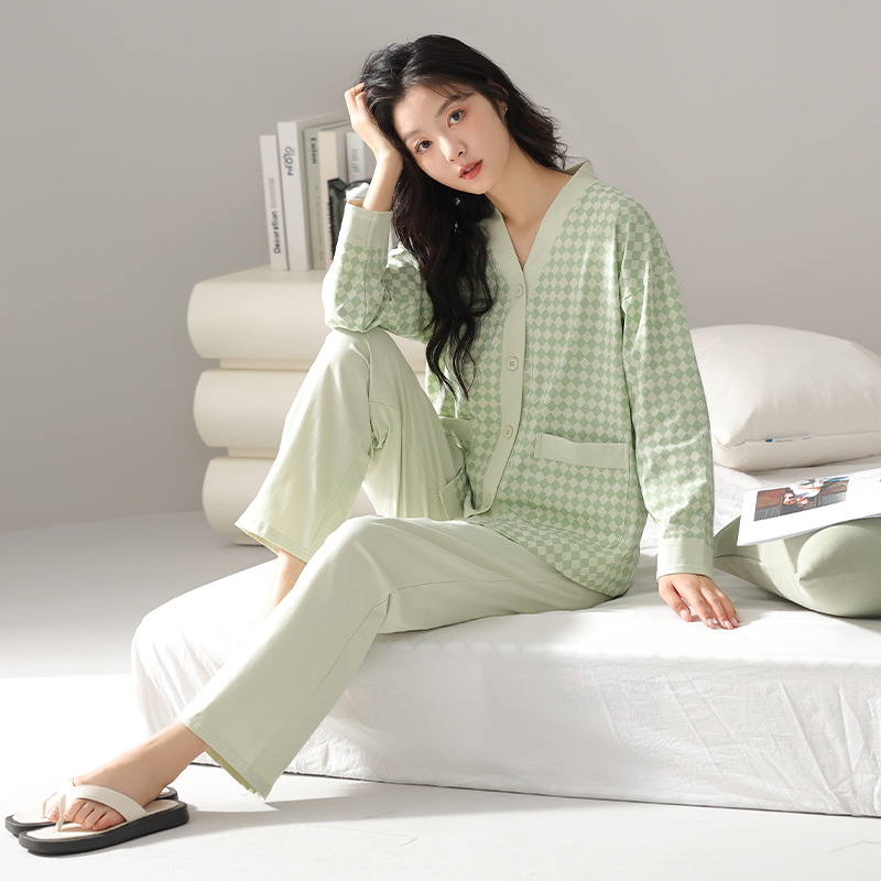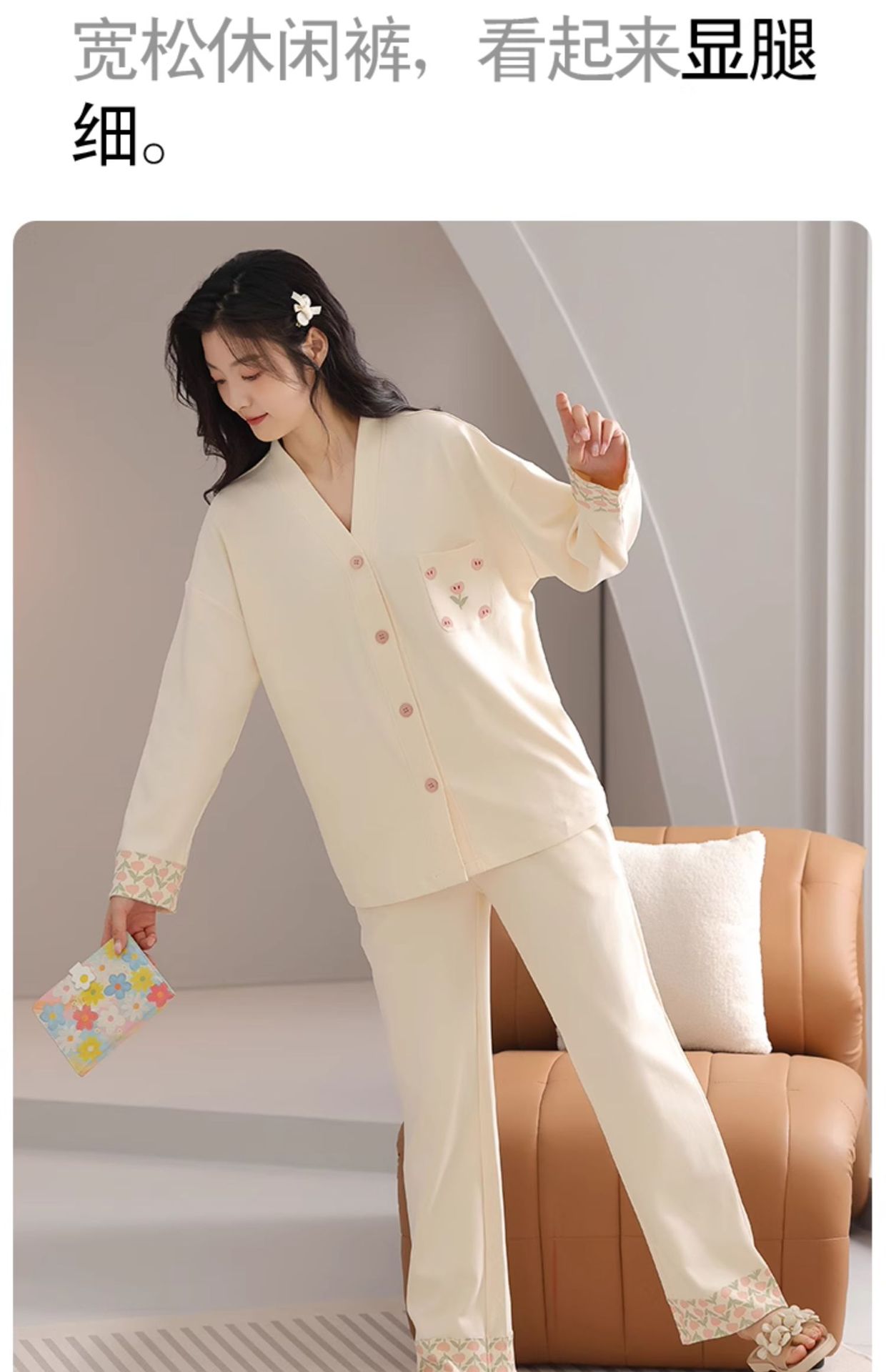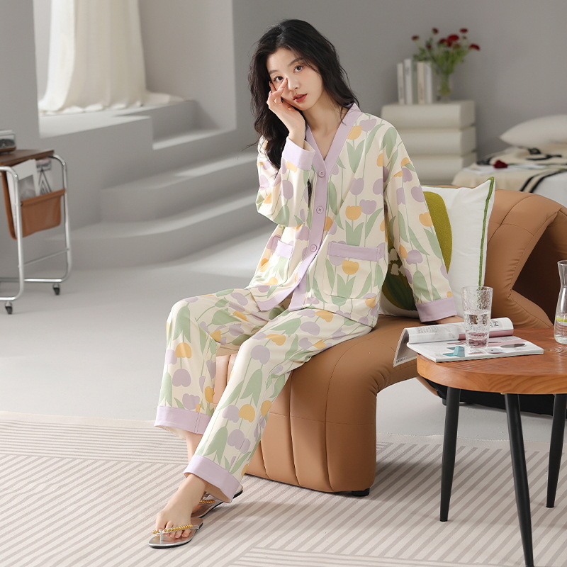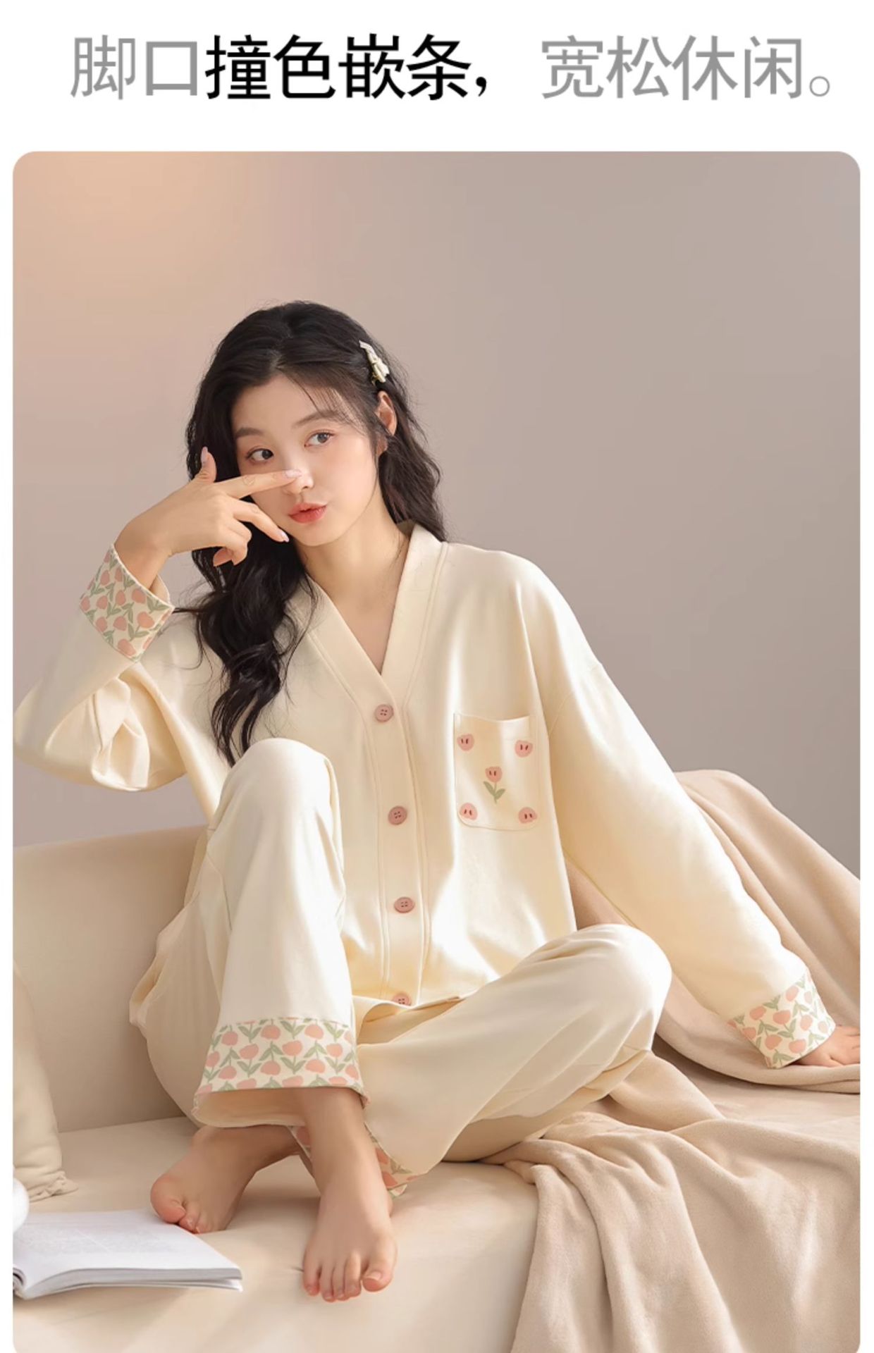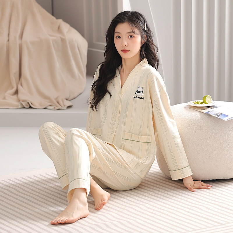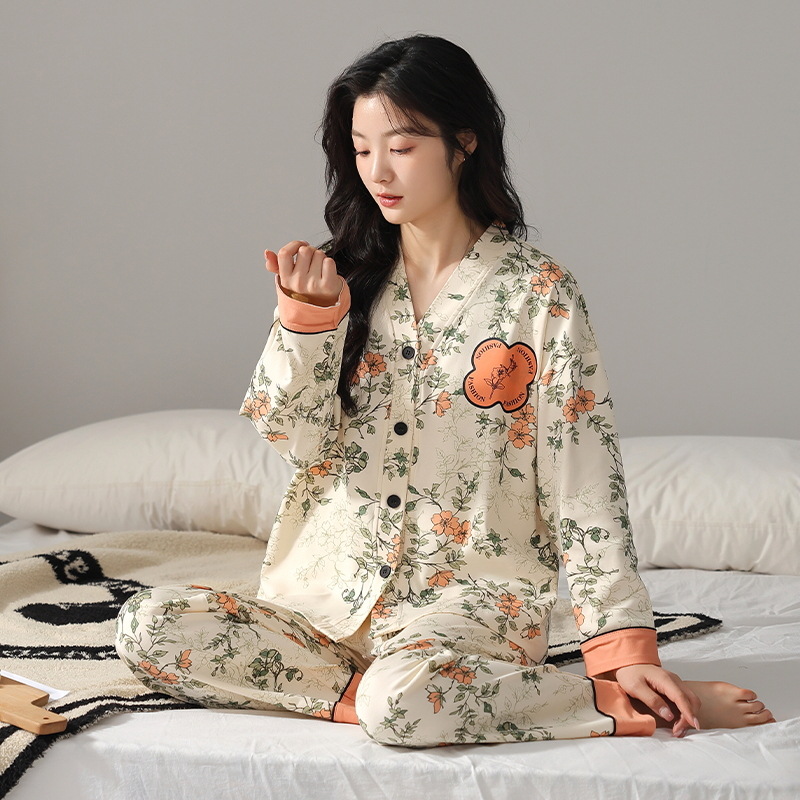 7A 세균성 면화 잠옷 여성 클래스 A 면 봄과 가을 긴 소매 새로운 중국 캐주얼 아웃웨어 홈 의류 세트스토어 가기