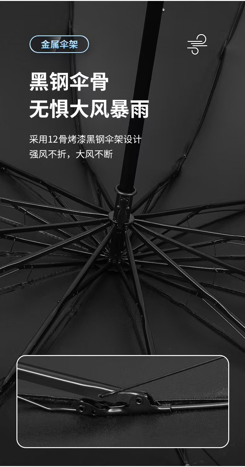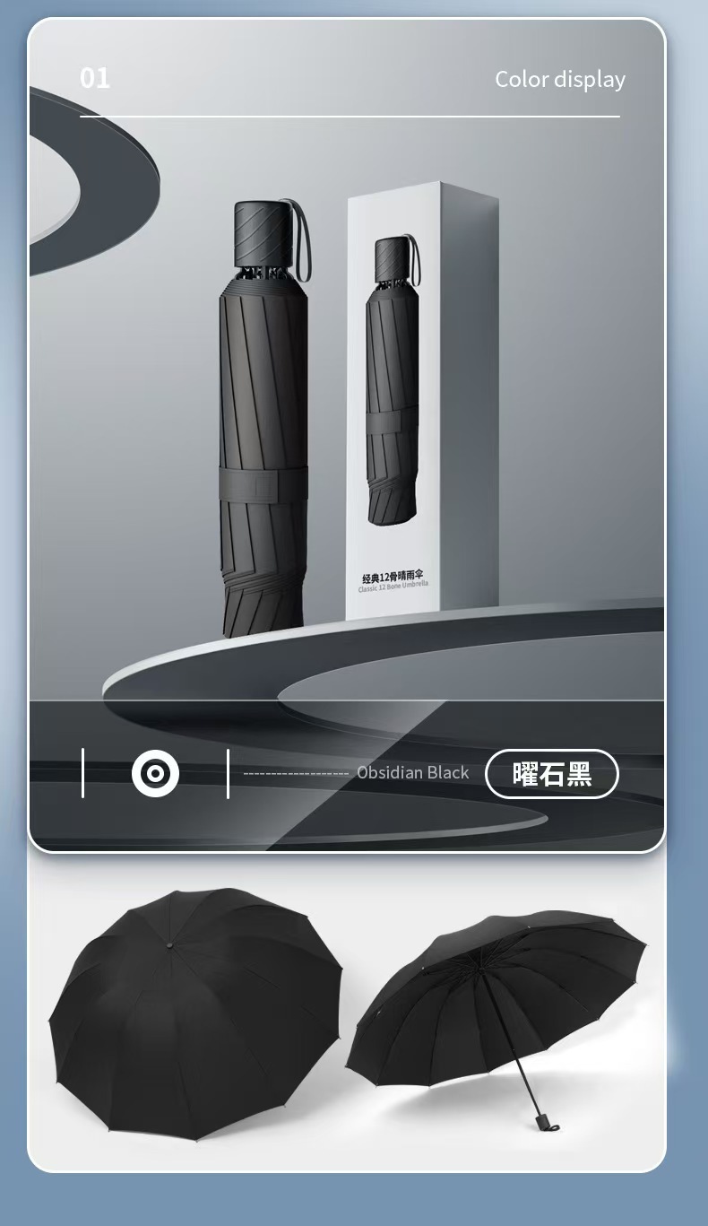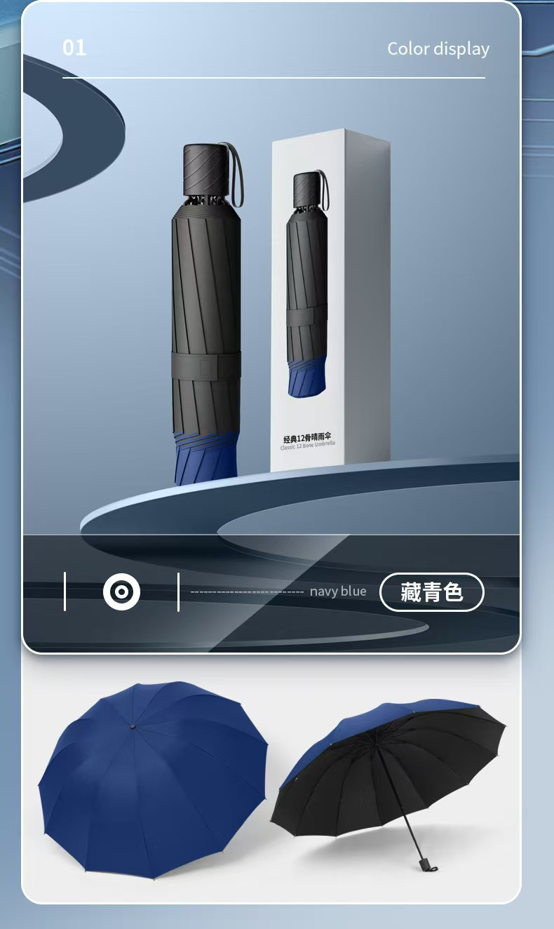 12 뼈 우산 도매 3 접이식 검은 고무 눈 비 이중 사용 UV 차양 태양 우산 광고 우산 로고