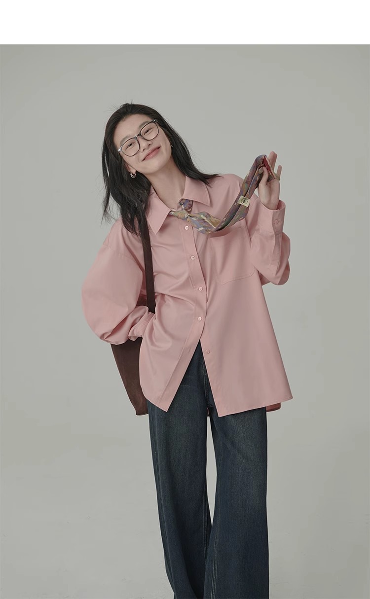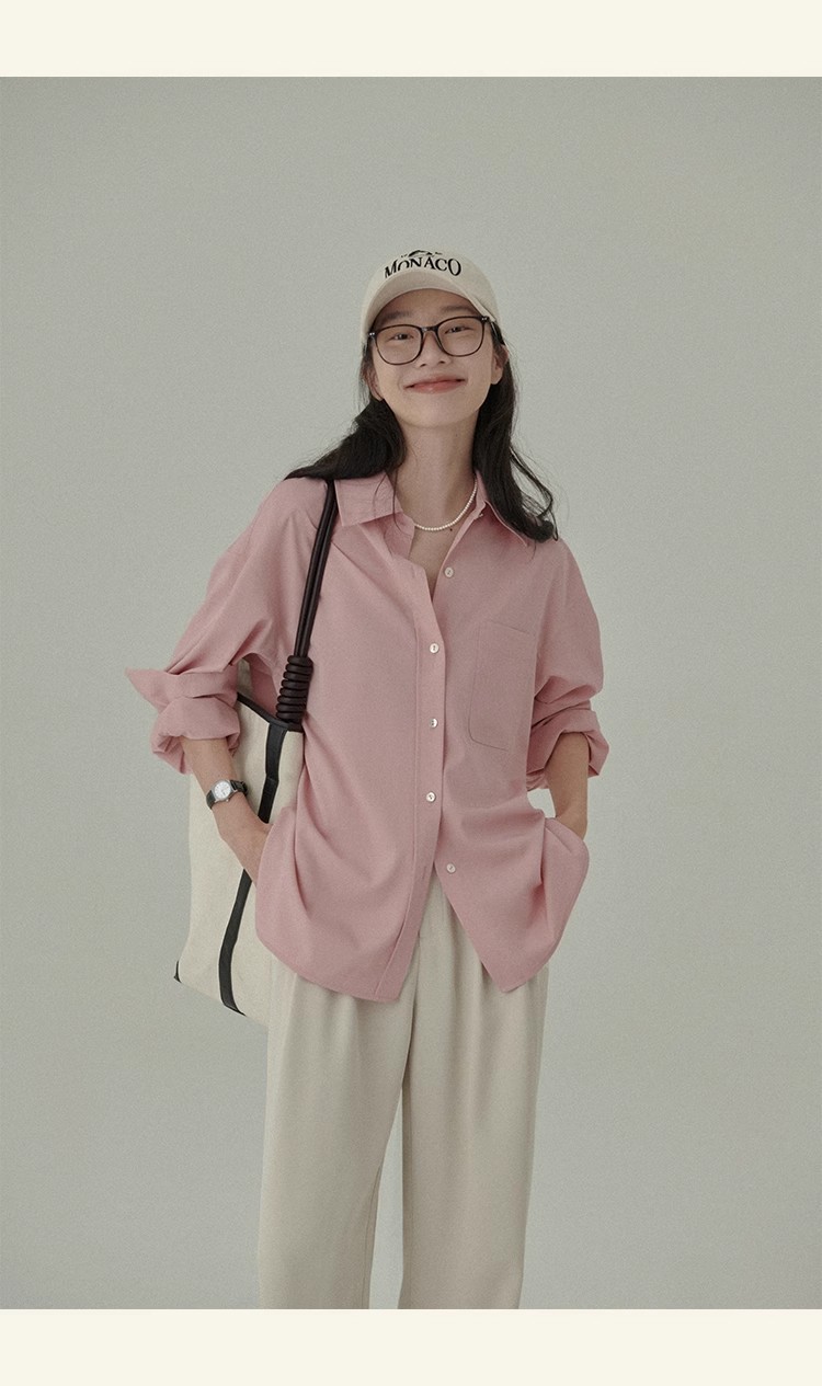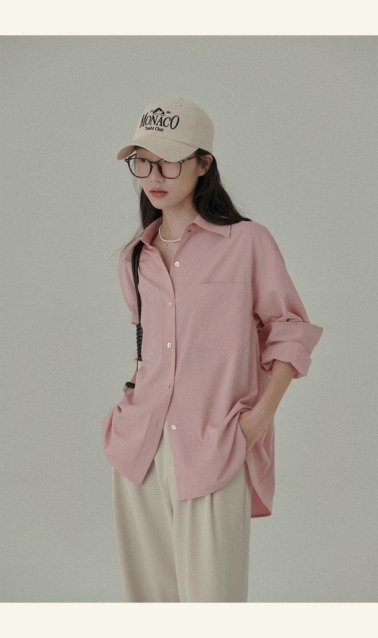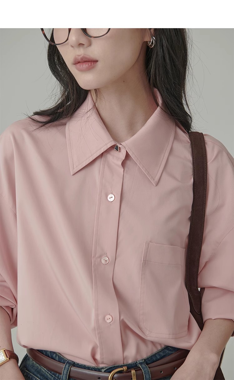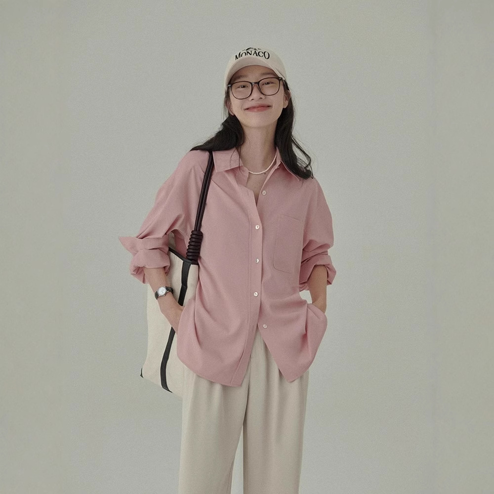봄 레스토랑 새로운 화이트 복숭아 민트 상쾌한 셔츠 여성용 느슨한 포장 주름 기본 핑크 셔츠 탑스토어 가기