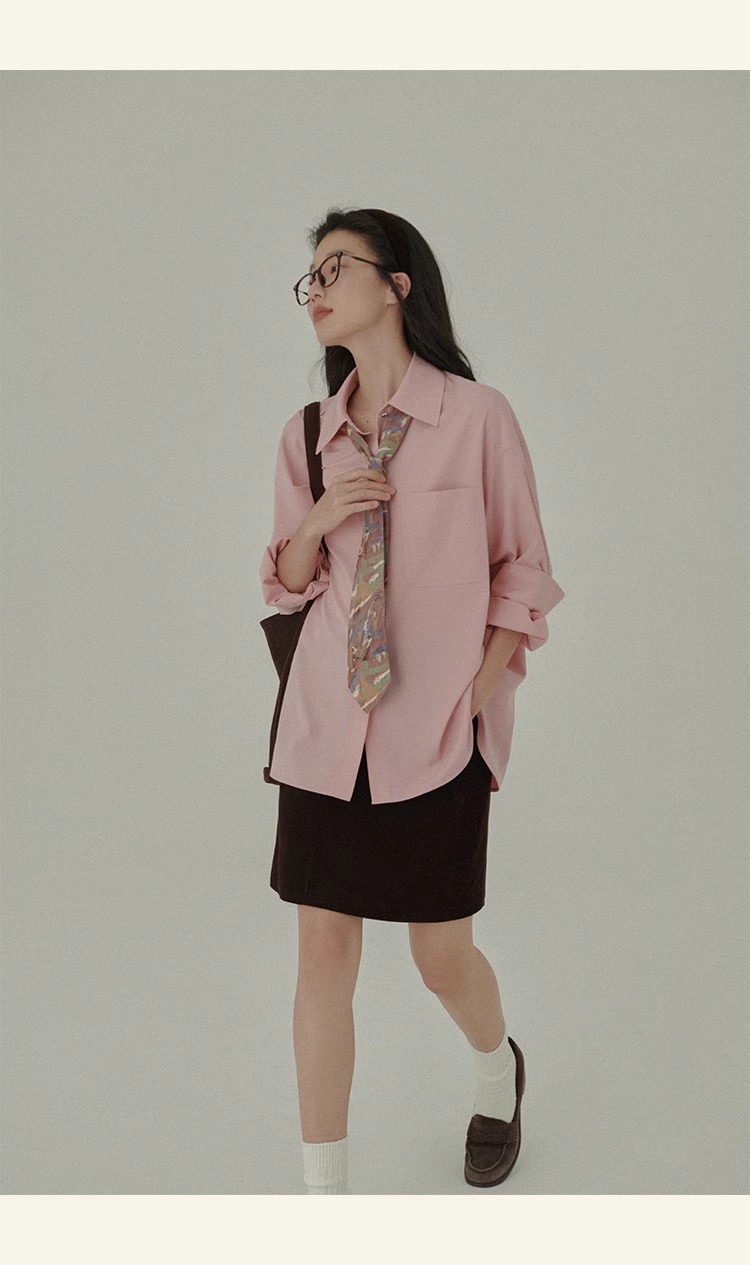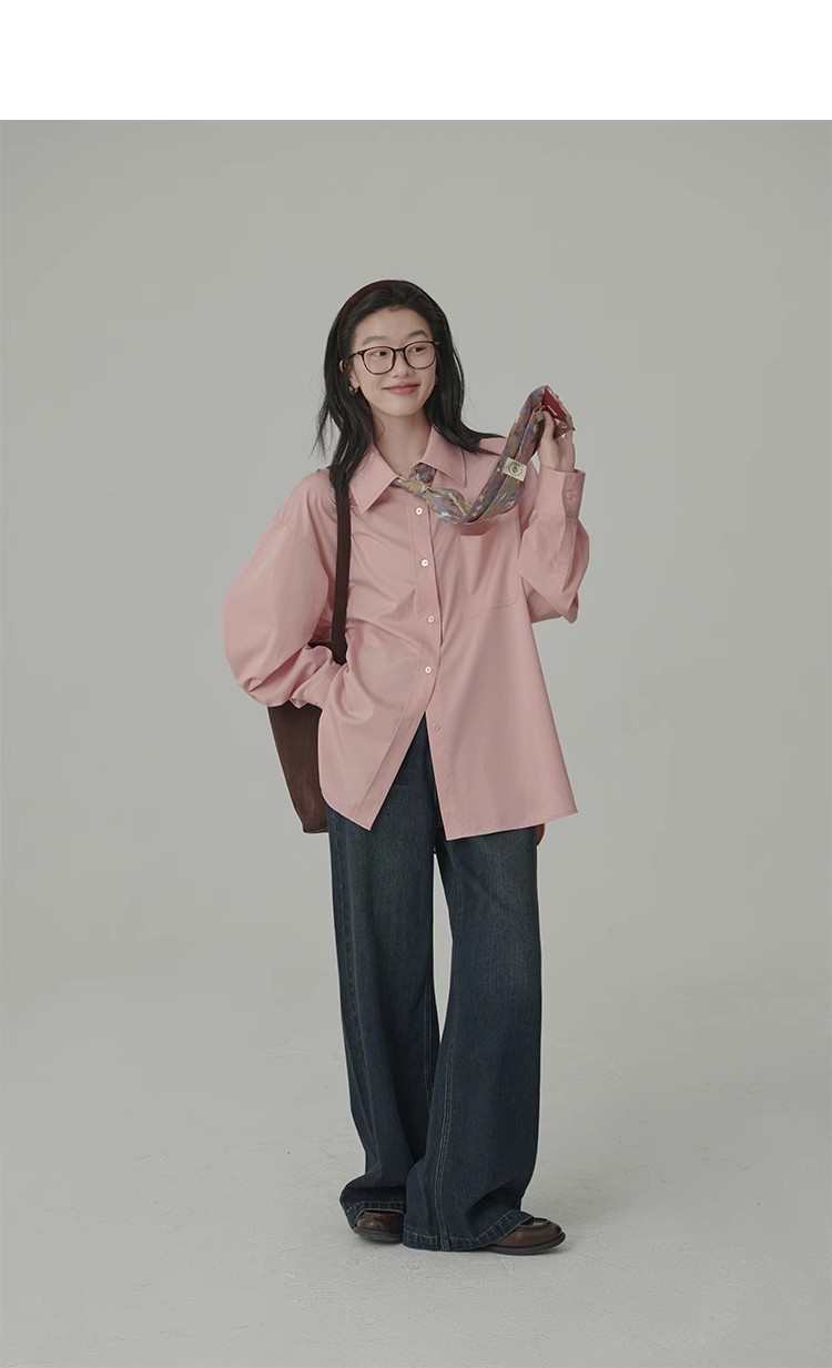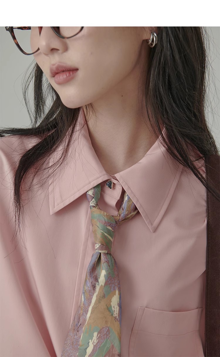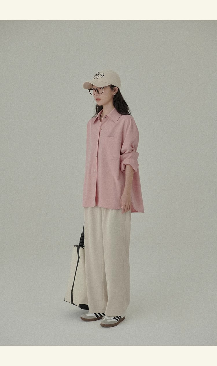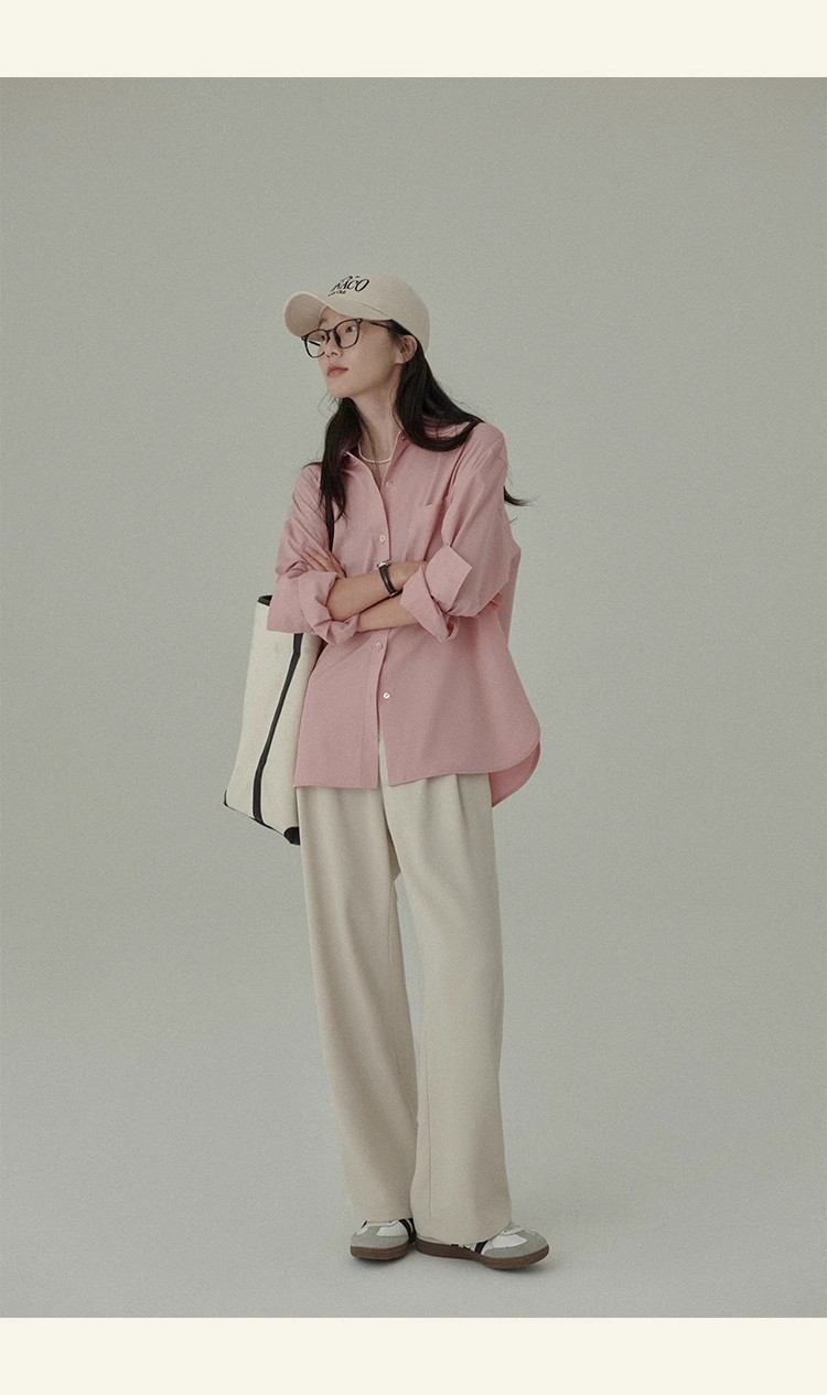 봄 레스토랑 새로운 화이트 복숭아 민트 상쾌한 셔츠 여성용 느슨한 포장 주름 기본 핑크 셔츠 탑스토어 가기