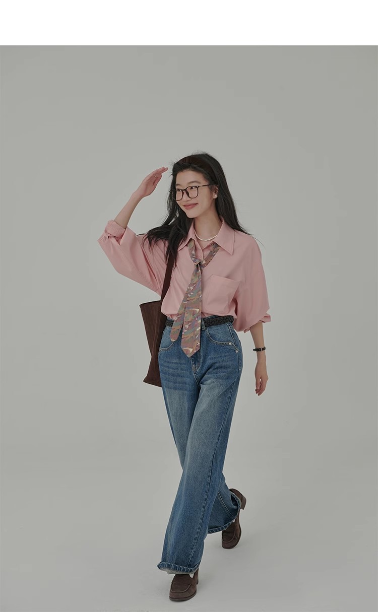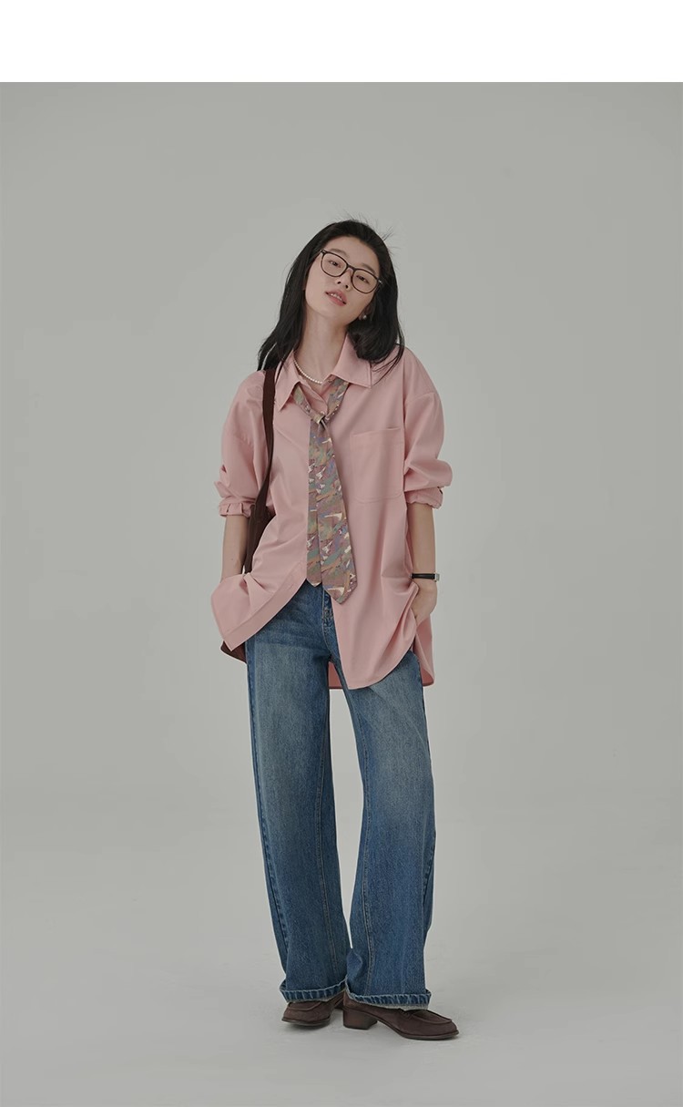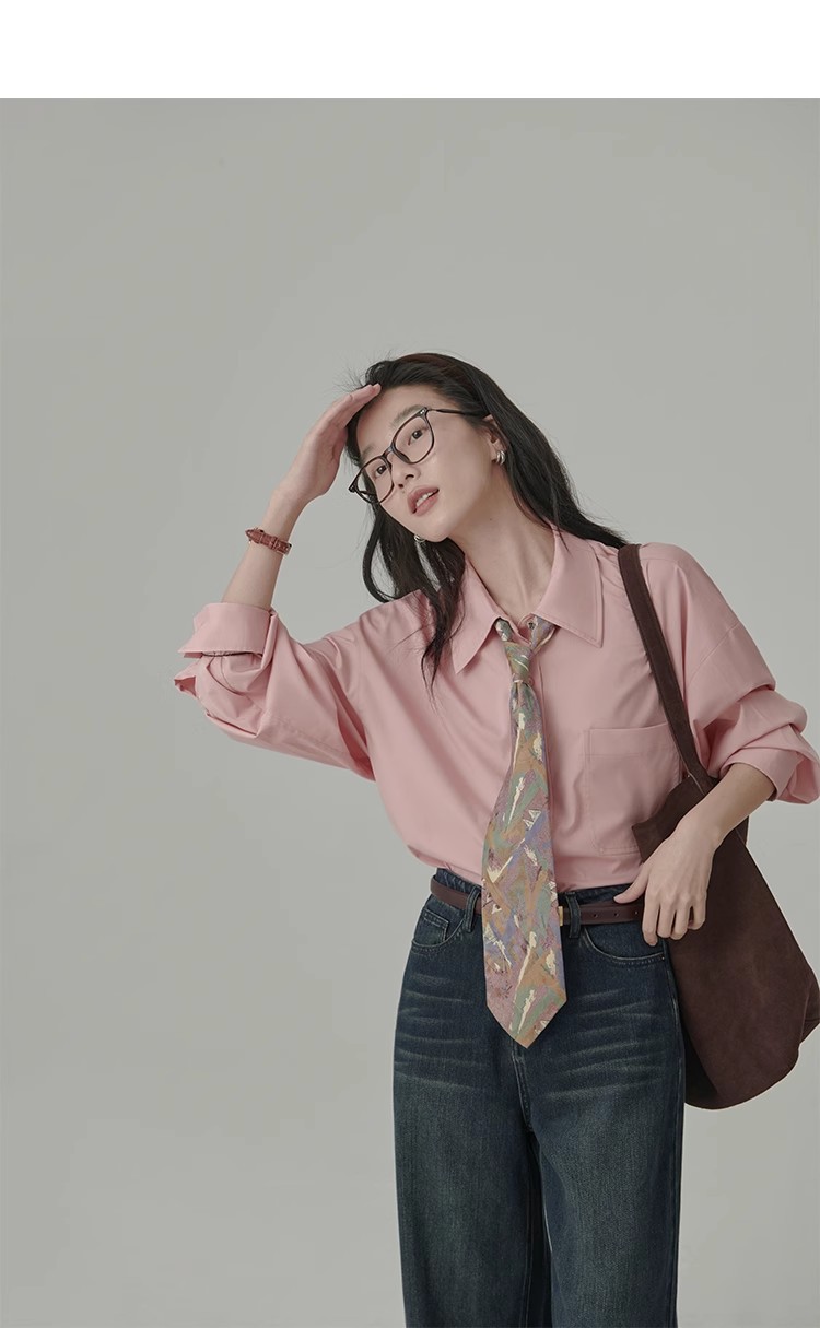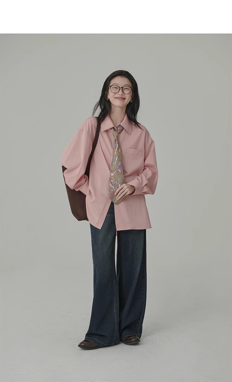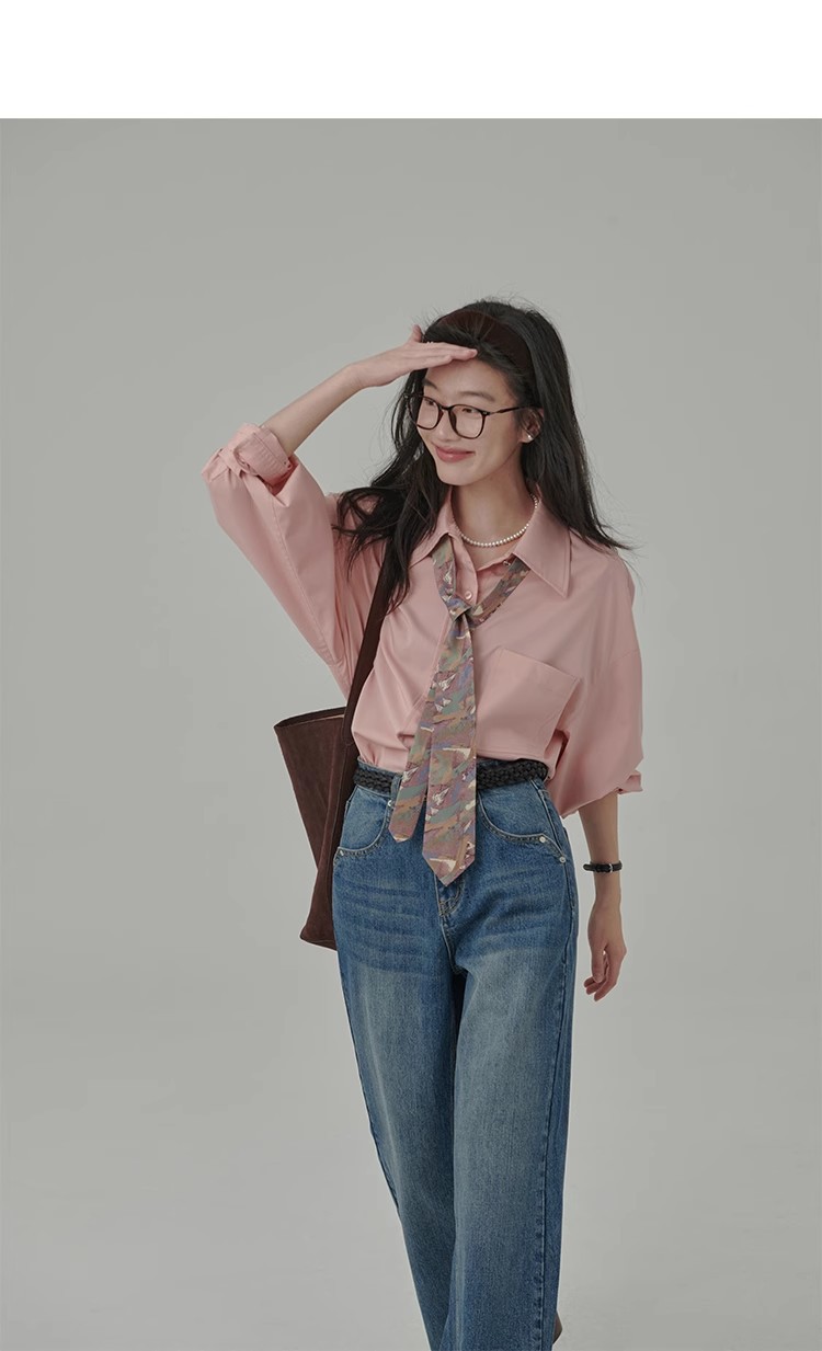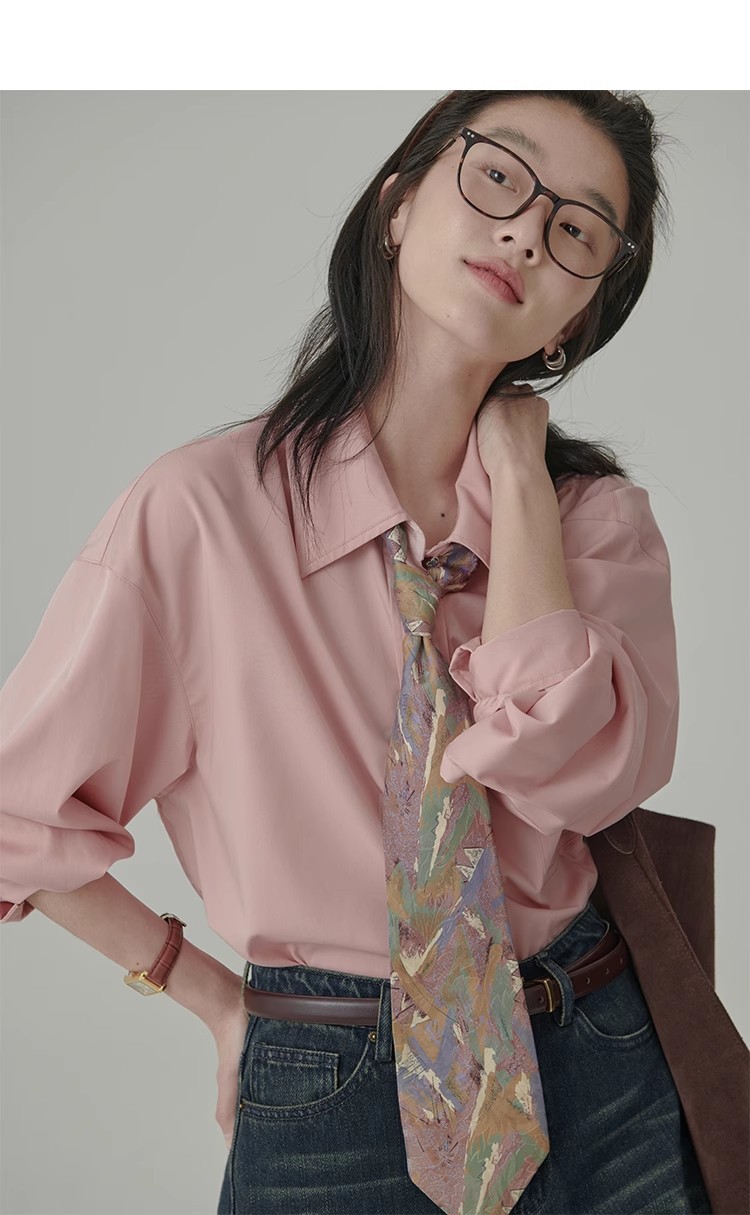 봄 레스토랑 새로운 화이트 복숭아 민트 상쾌한 셔츠 여성용 느슨한 포장 주름 기본 핑크 셔츠 탑스토어 가기