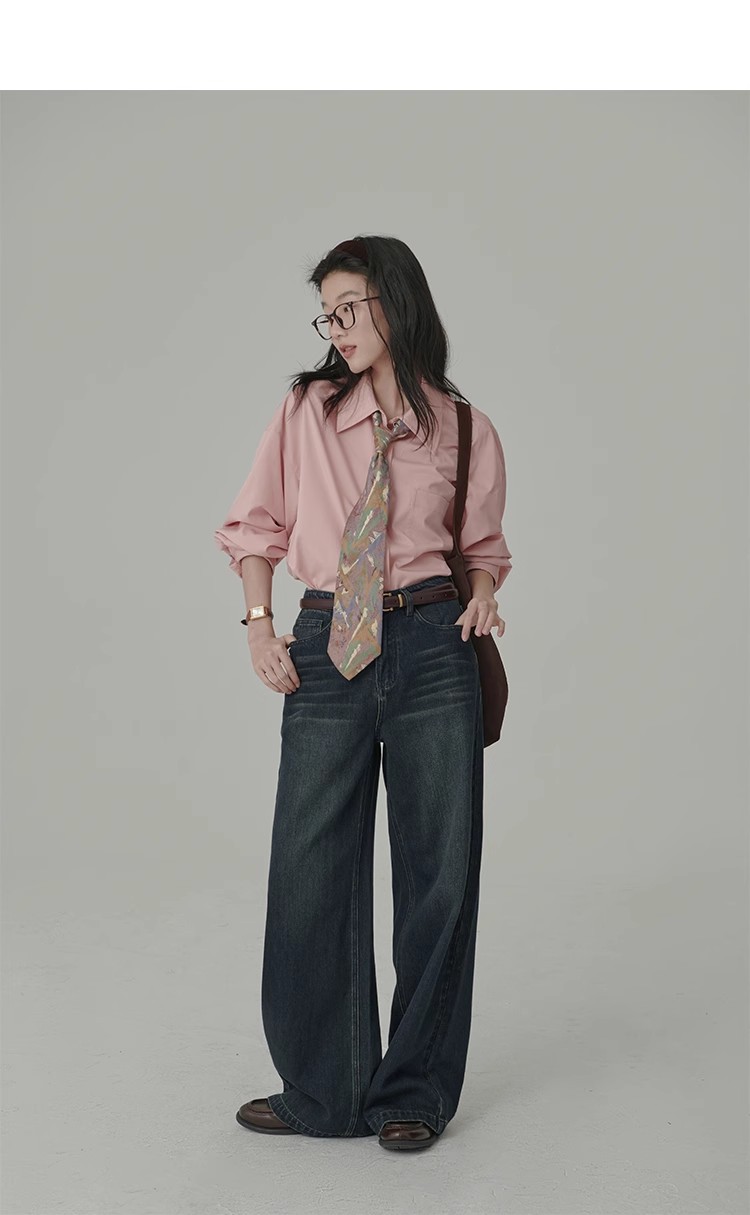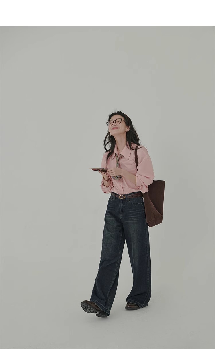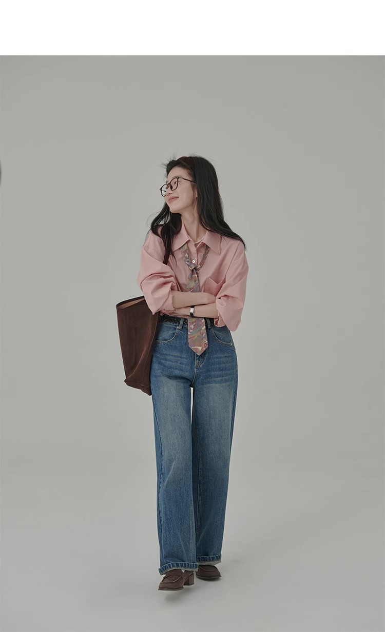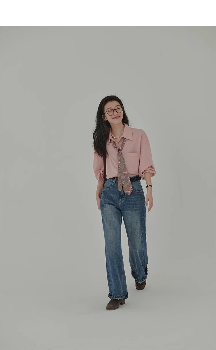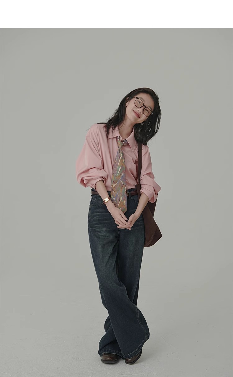 봄 레스토랑 새로운 화이트 복숭아 민트 상쾌한 셔츠 여성용 느슨한 포장 주름 기본 핑크 셔츠 탑스토어 가기