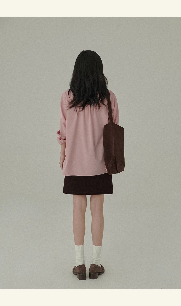 봄 레스토랑 새로운 화이트 복숭아 민트 상쾌한 셔츠 여성용 느슨한 포장 주름 기본 핑크 셔츠 탑