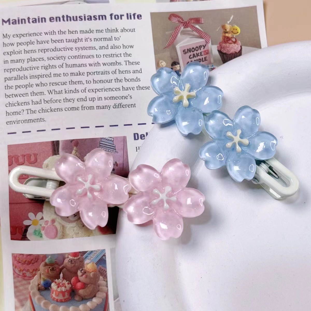 • 복숭아꽃 머리핀 (랜덤혼합모)