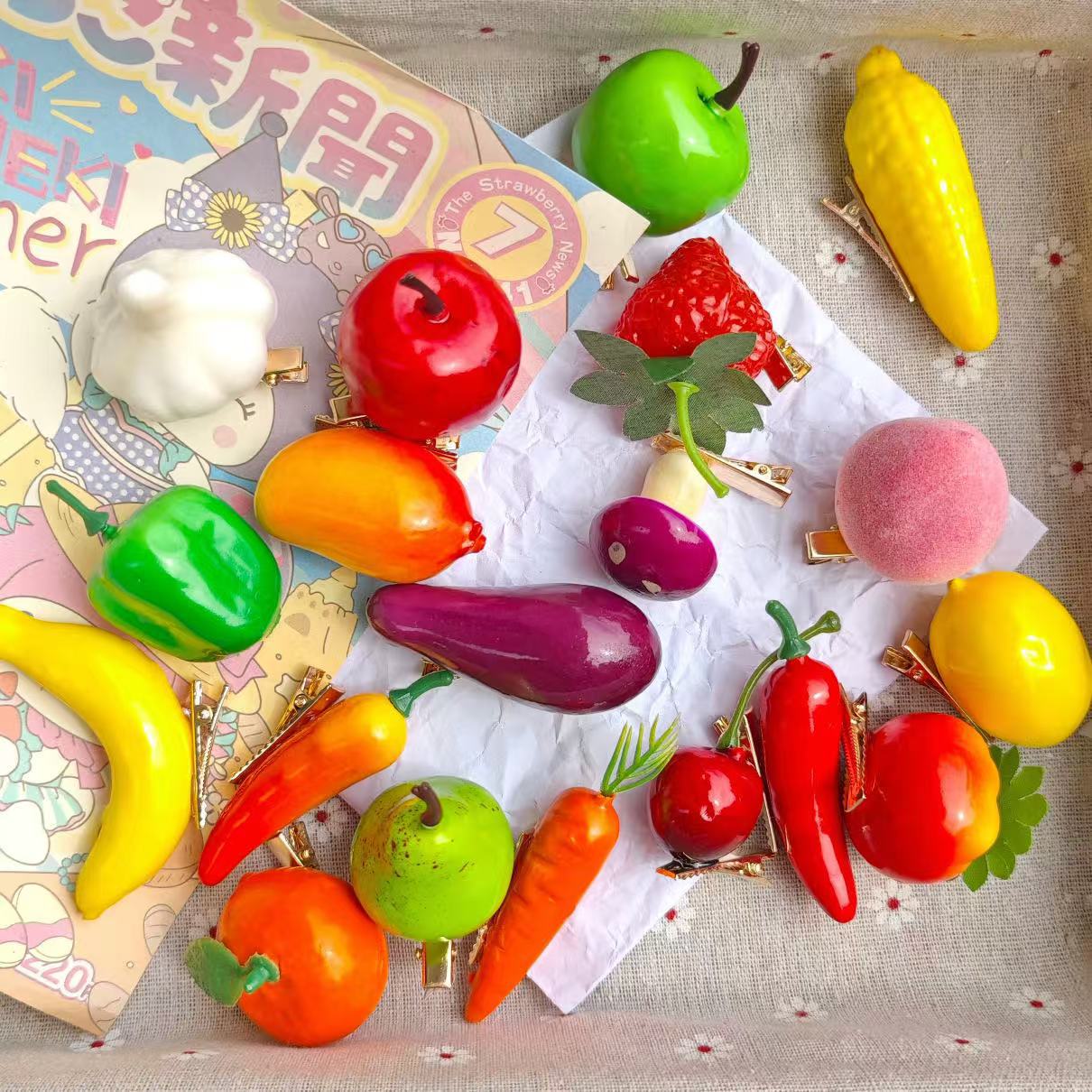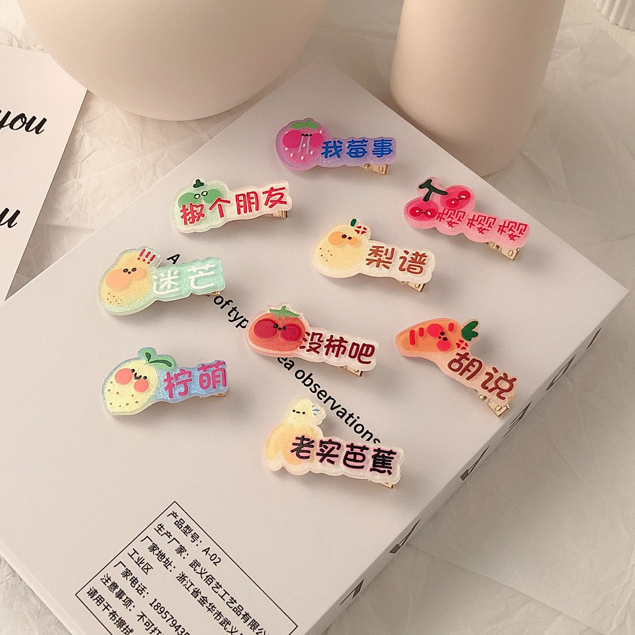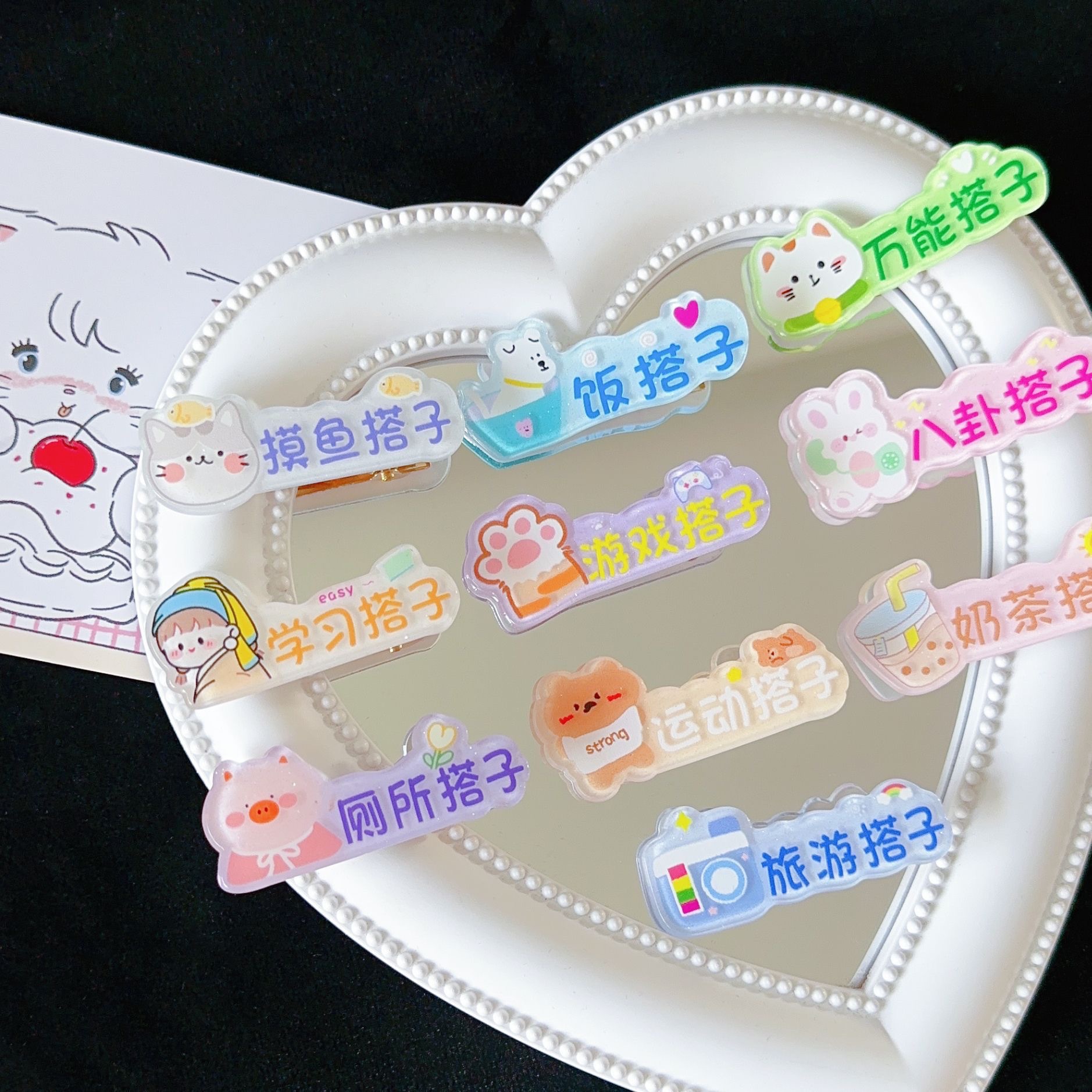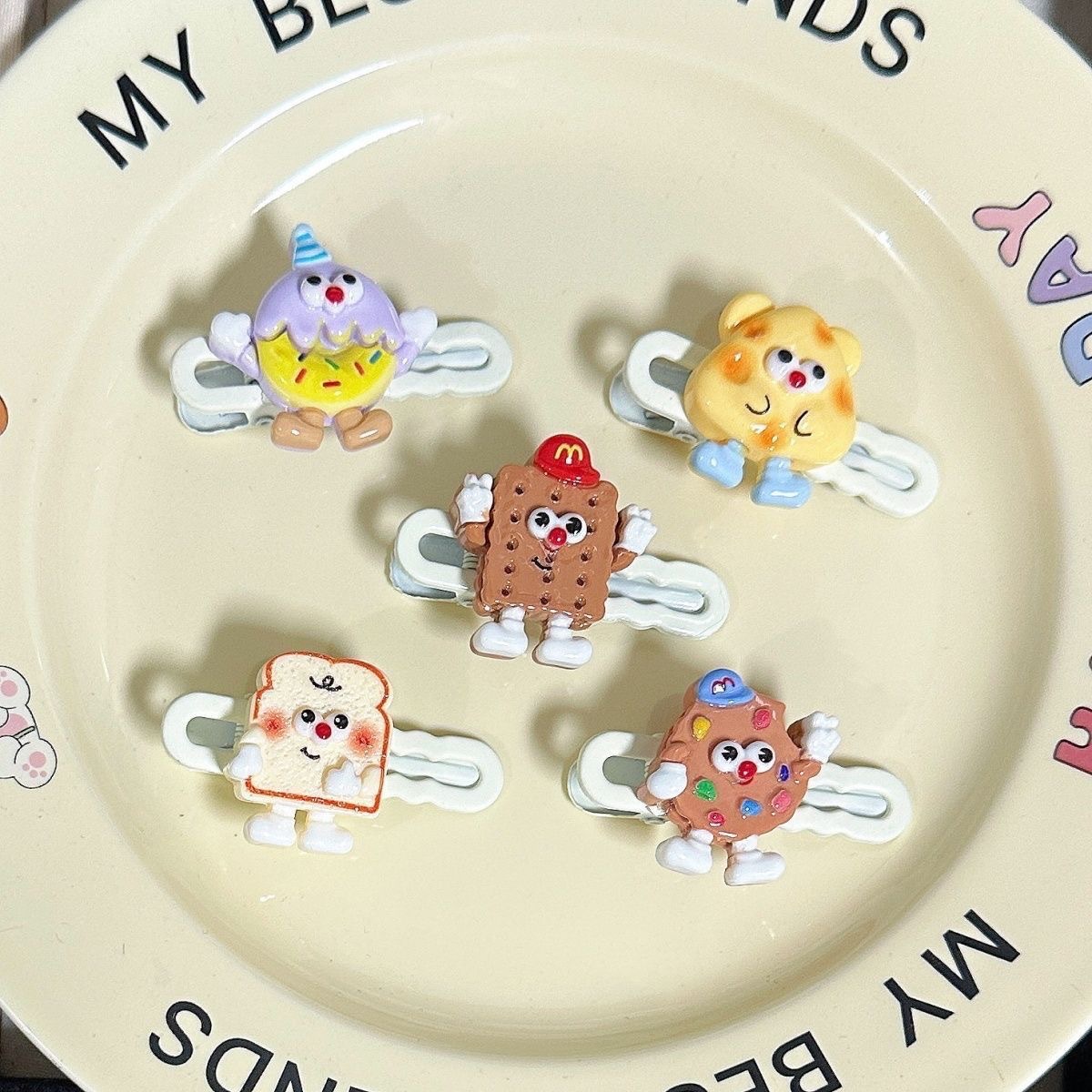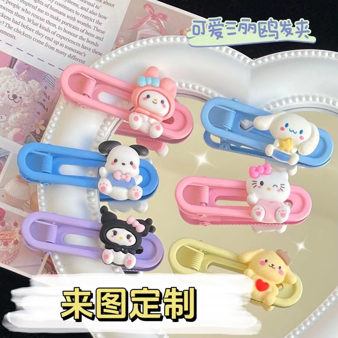 혼합 배치 폭발 1 달러 머리핀 그물 붉은 밤 시장 만화 시뮬레이션 스톨 머리핀 텍스트 플러시 혼합 머리 장식 도매