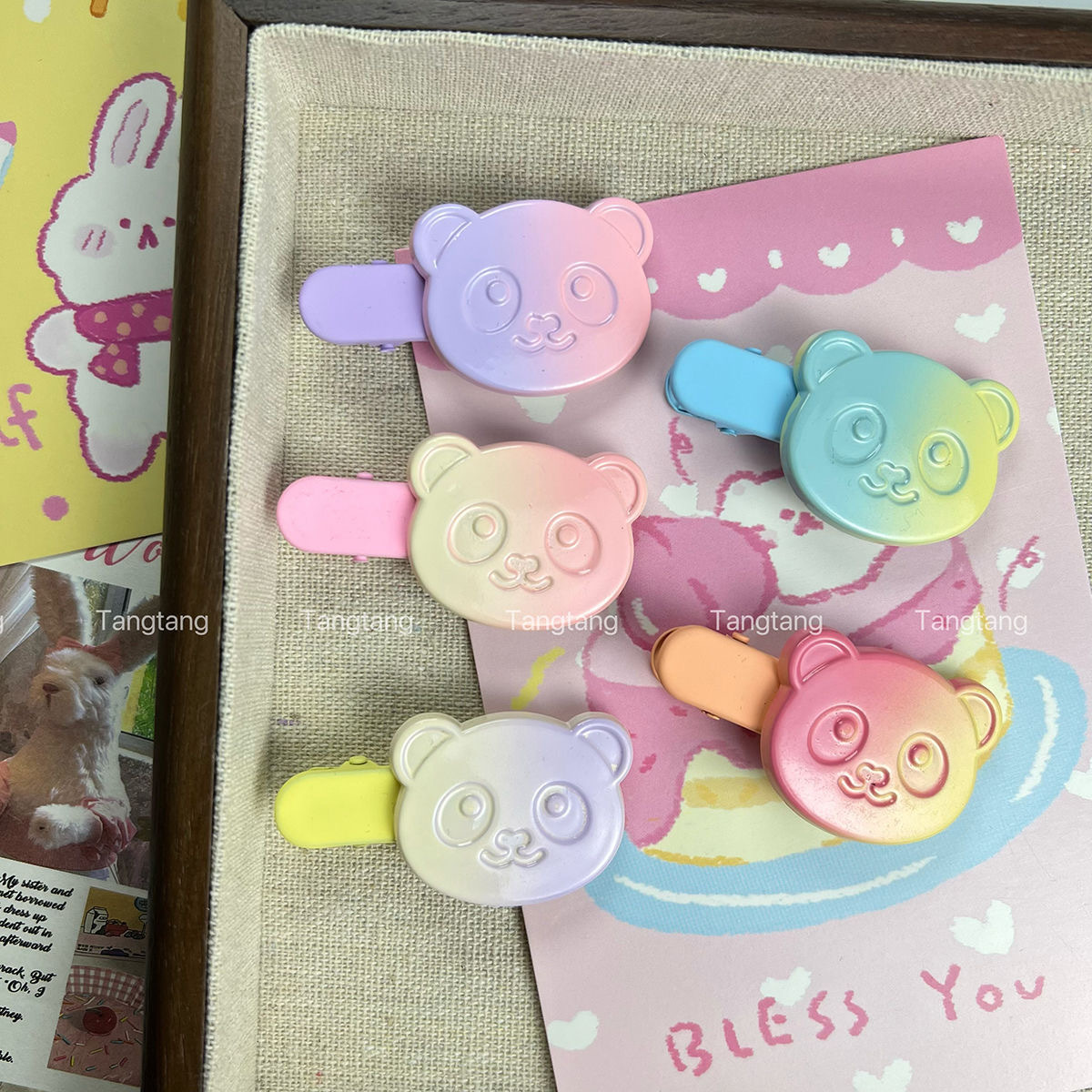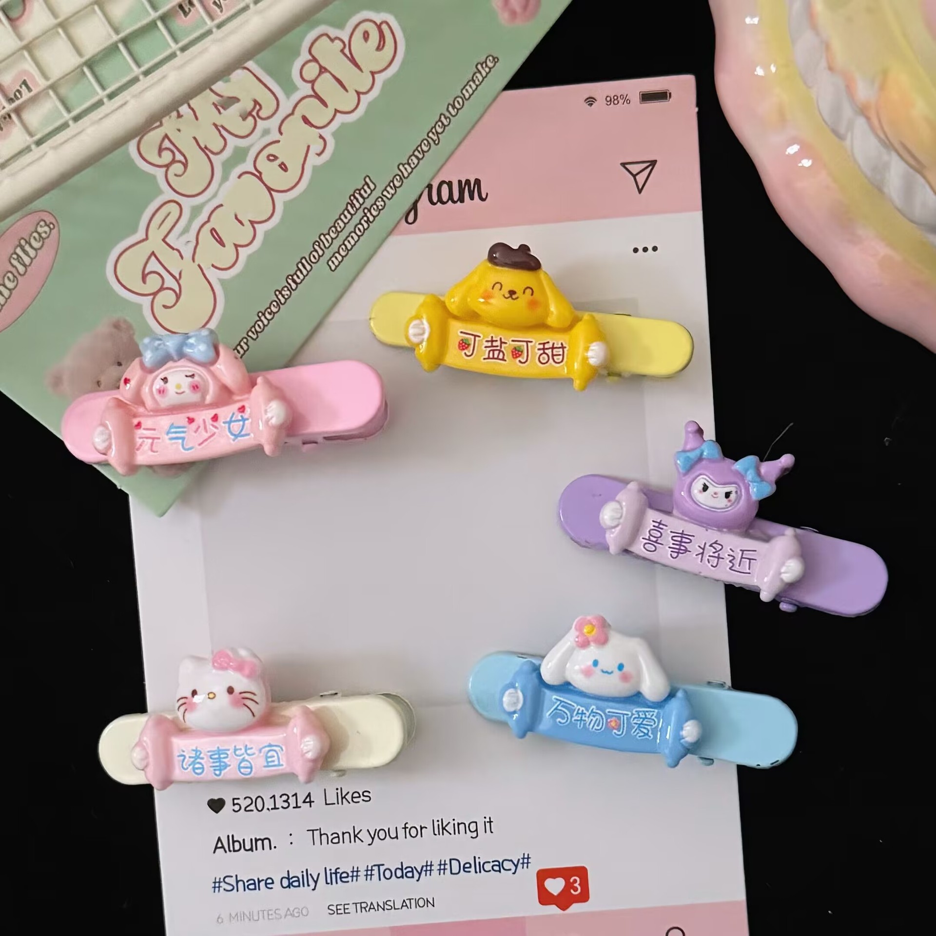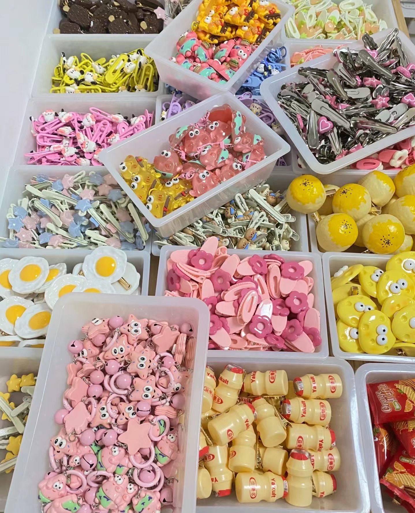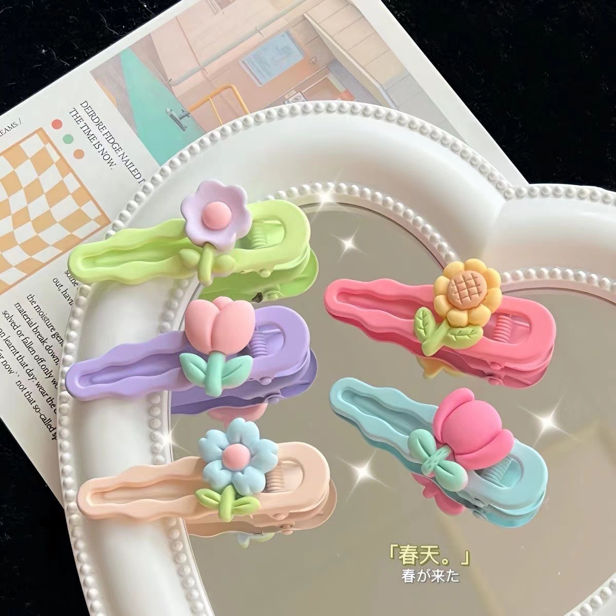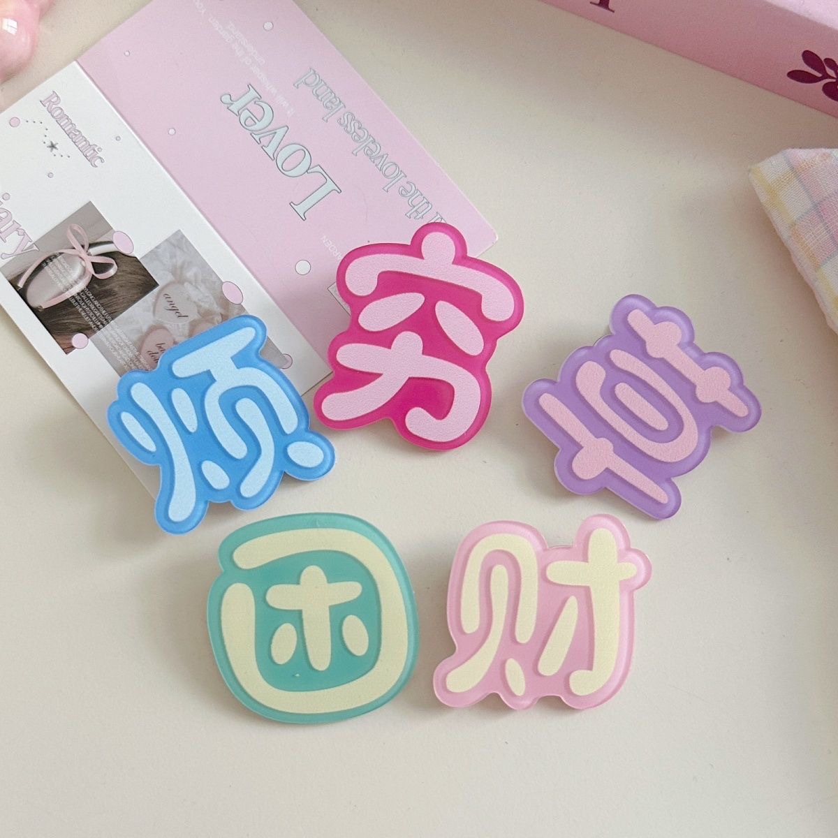 혼합 배치 폭발 1 달러 머리핀 그물 붉은 밤 시장 만화 시뮬레이션 스톨 머리핀 텍스트 플러시 혼합 머리 장식 도매