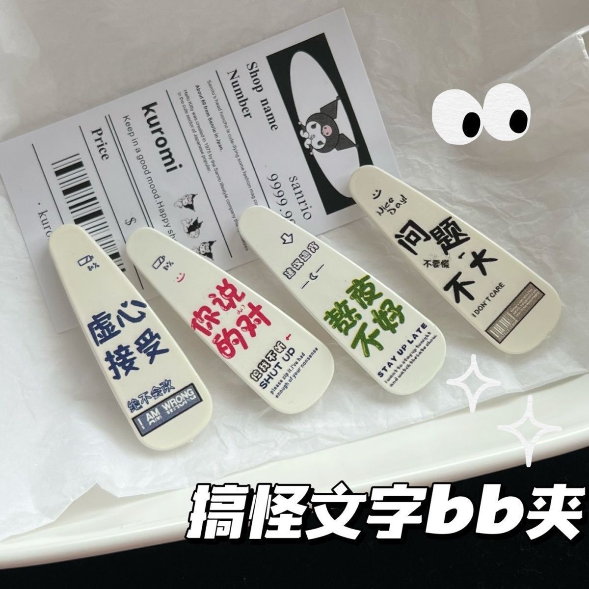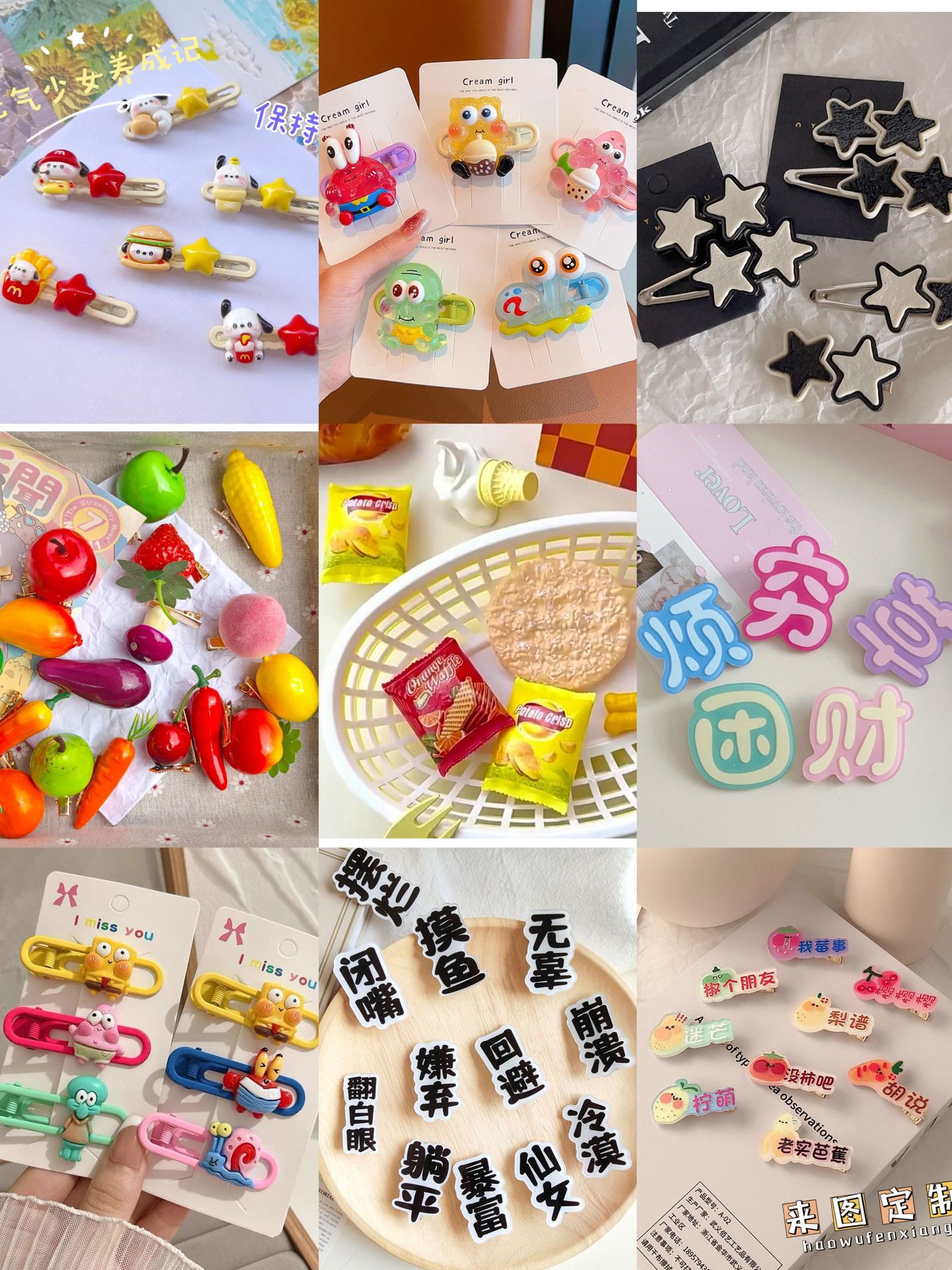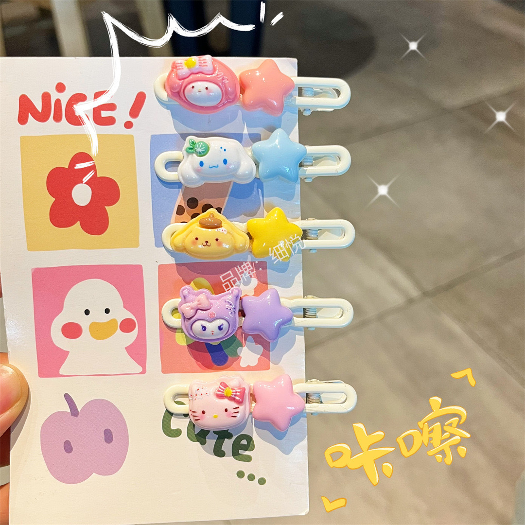 혼합 배치 폭발 1 달러 머리핀 그물 붉은 밤 시장 만화 시뮬레이션 스톨 머리핀 텍스트 플러시 혼합 머리 장식 도매스토어 가기
