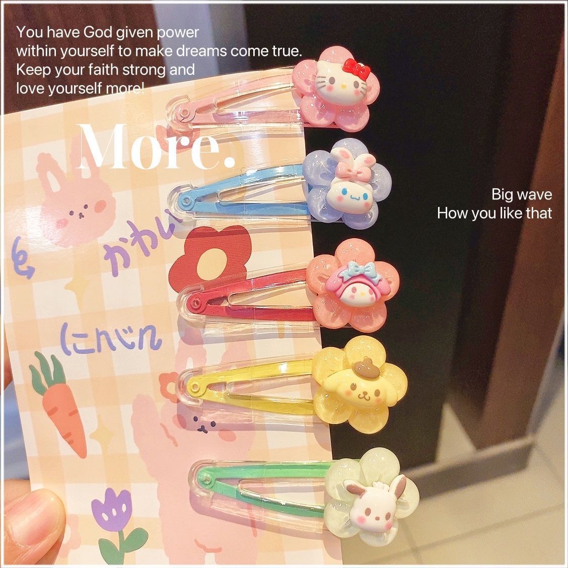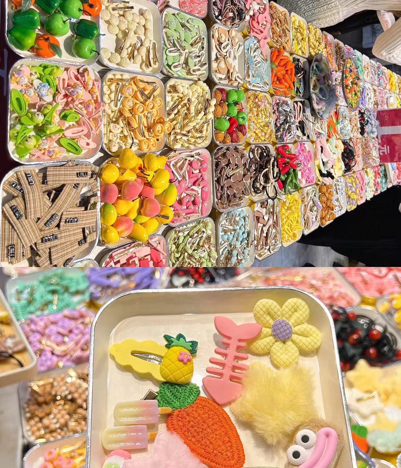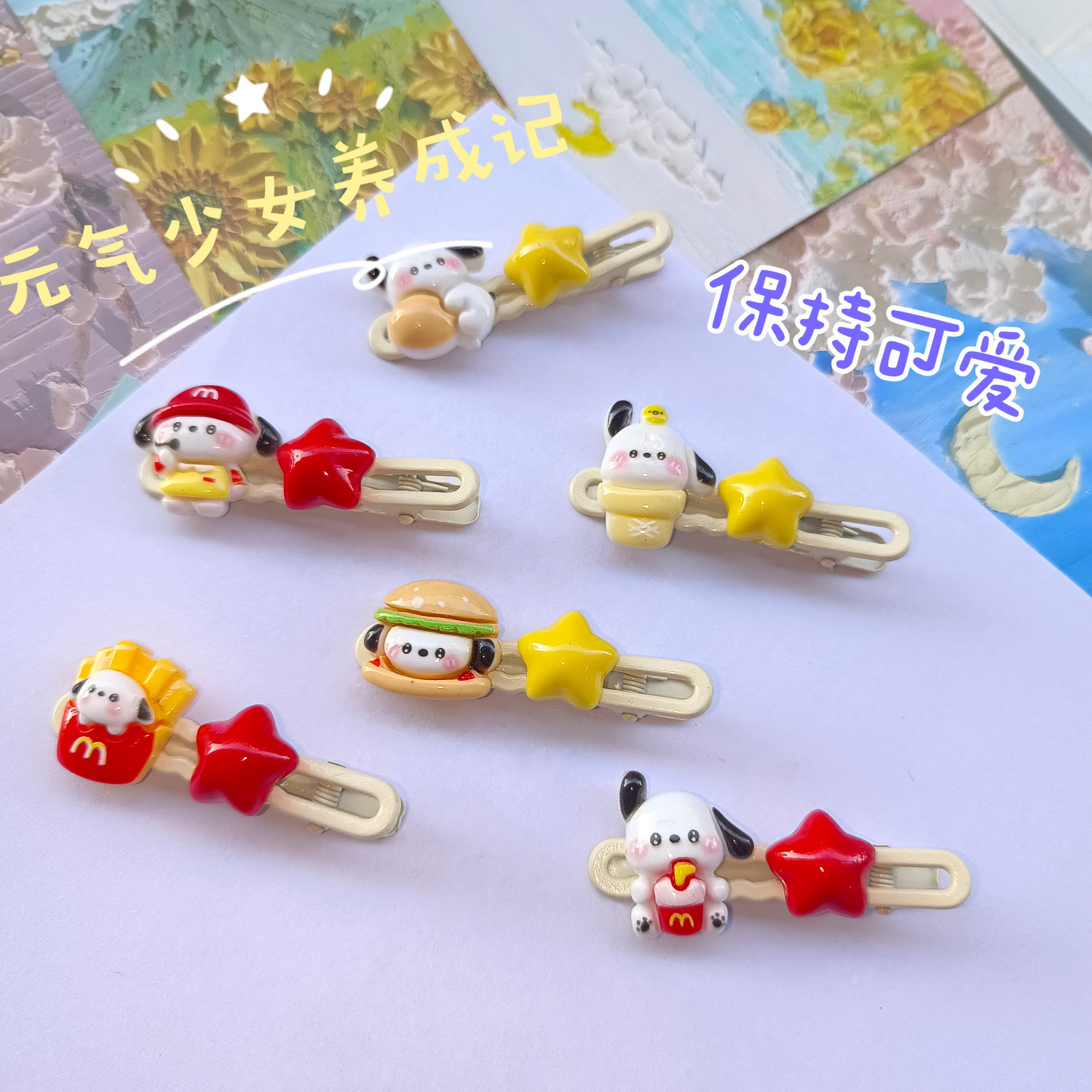 혼합 배치 폭발 1 달러 머리핀 그물 붉은 밤 시장 만화 시뮬레이션 스톨 머리핀 텍스트 플러시 혼합 머리 장식 도매스토어 가기