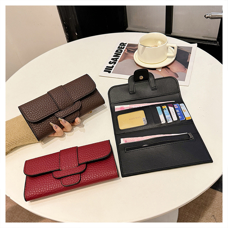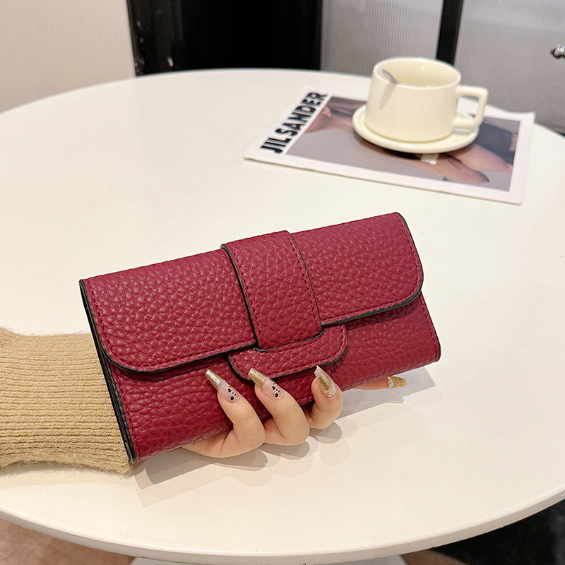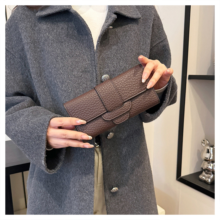 2025 새로운 여성 긴 지갑 한국 패션 litchi 패턴 지갑 국경 도매 30% 대용량 카드 가방스토어 가기