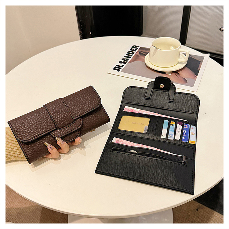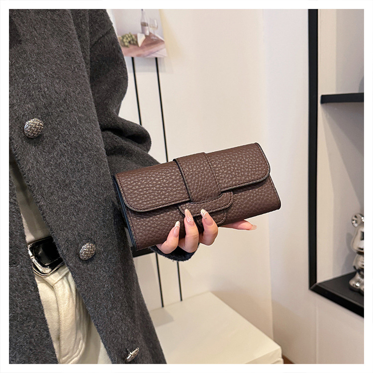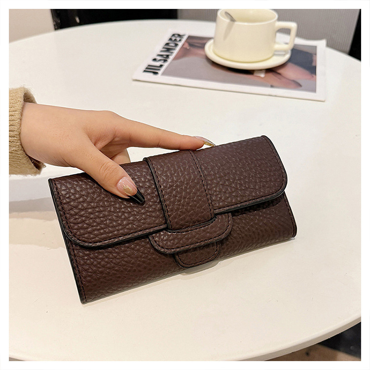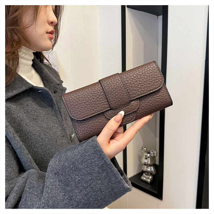 2025 새로운 여성 긴 지갑 한국 패션 litchi 패턴 지갑 국경 도매 30% 대용량 카드 가방