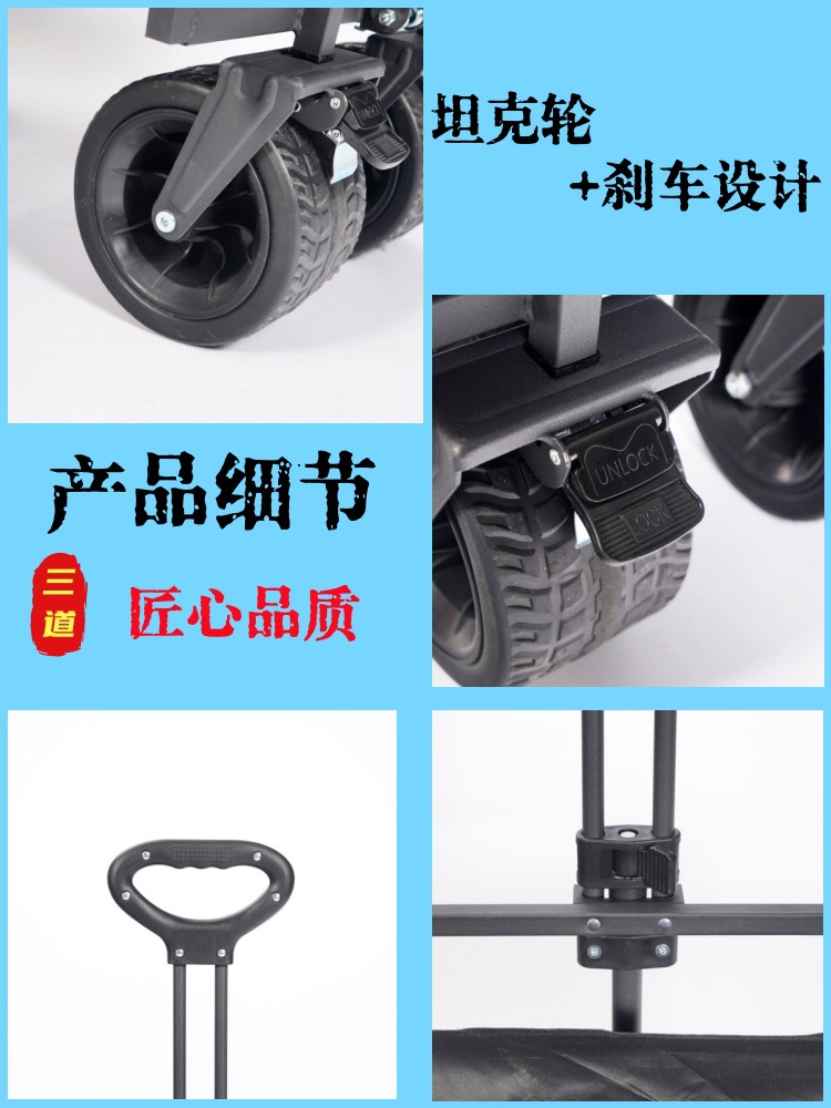 8 인치 핸드 푸시 트롤리 야외 피크닉 캠핑 접이식 캠프 자동차 모든 지형 자동차 견인 휴대용 풀로드 화물 트레일러
