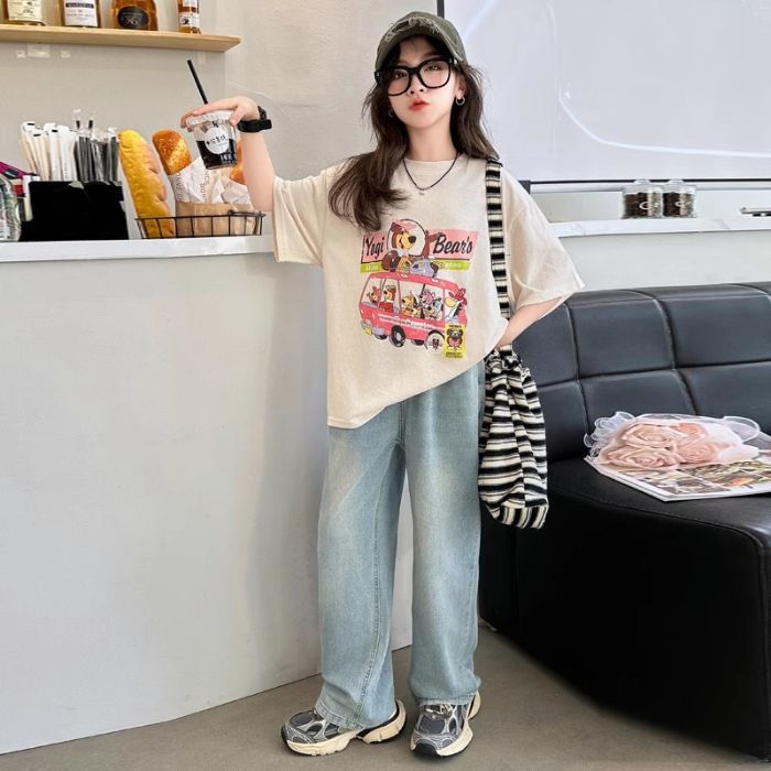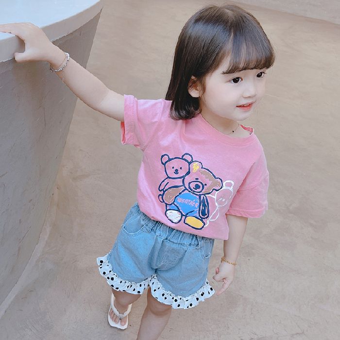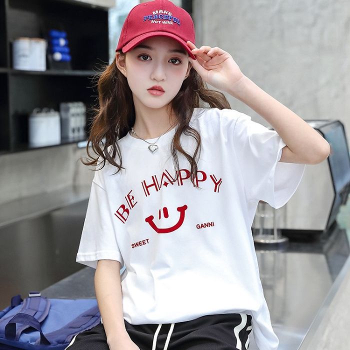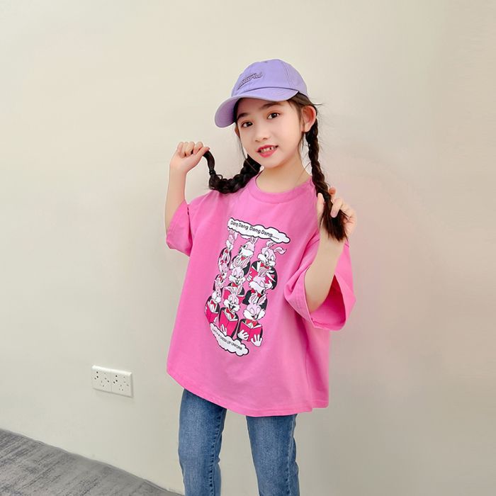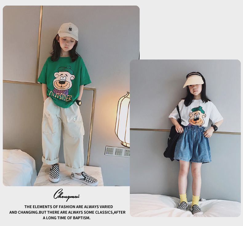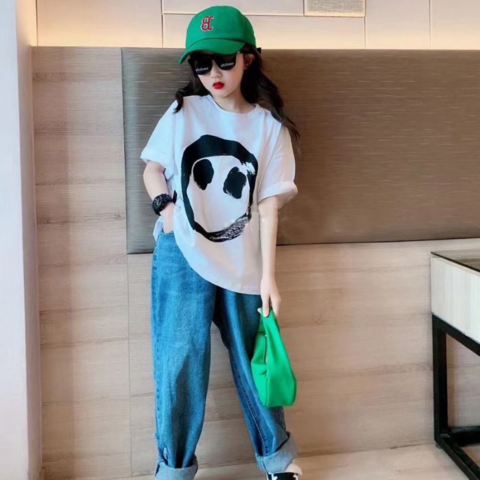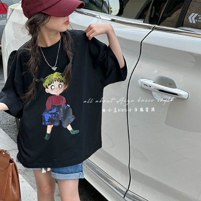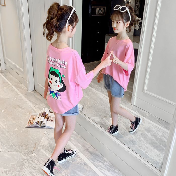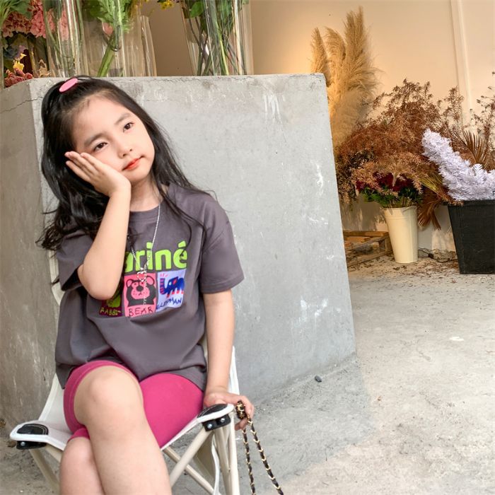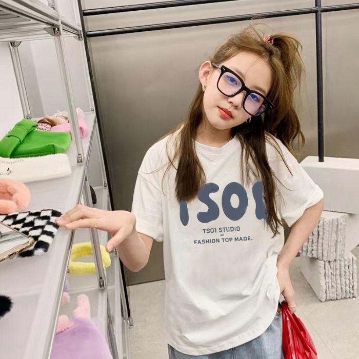 2026년 여아용 한국 스타일 여름 신상 반팔 티셔츠 100% 순면 패셔너블하고 루즈하며 스타일리쉬하고 다용도로 활용 가능한 반팔 티셔츠