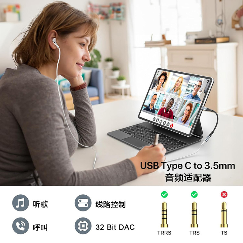 크로스보더 사운드 카드 아마존 타입-C 3.5 이어폰 연장 케이블 USB-C to 3.5 오디오 케이블 어댑터