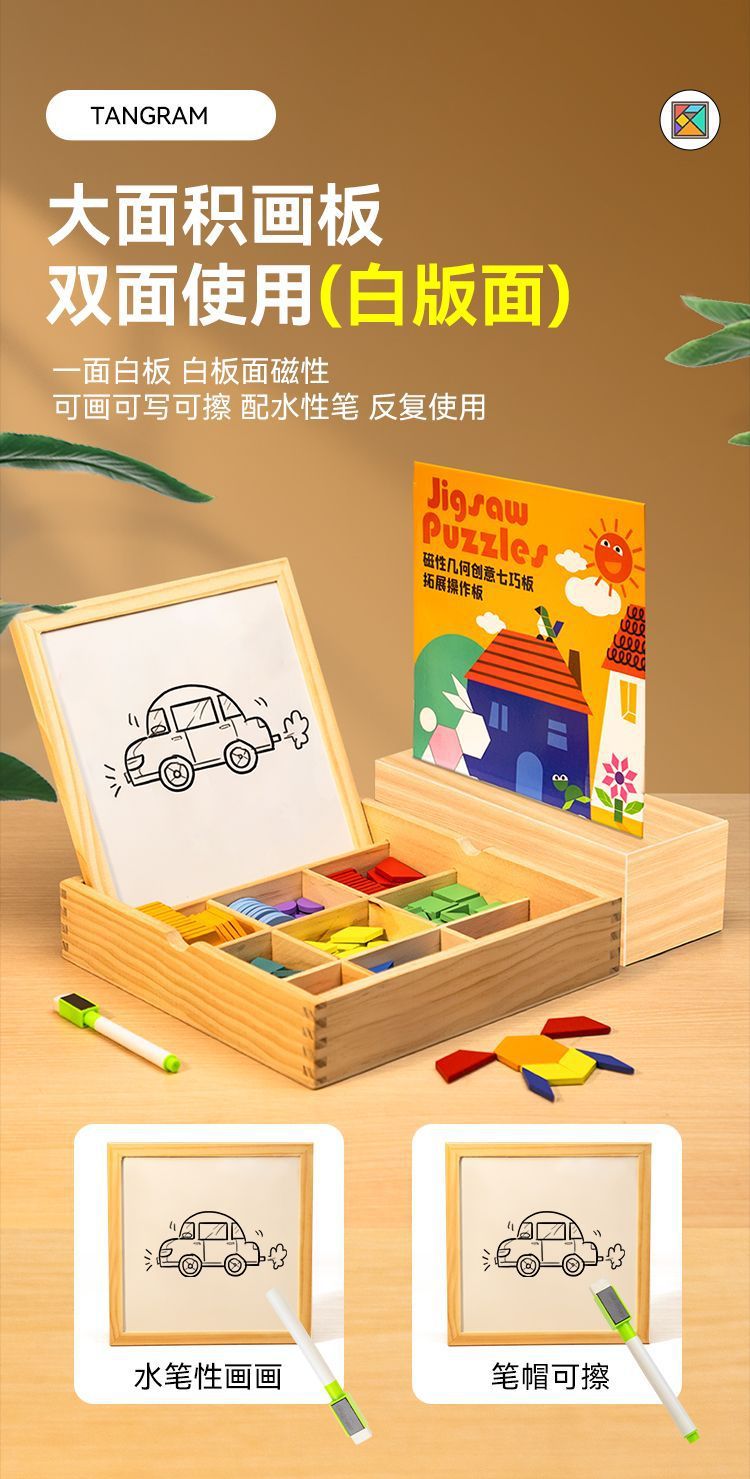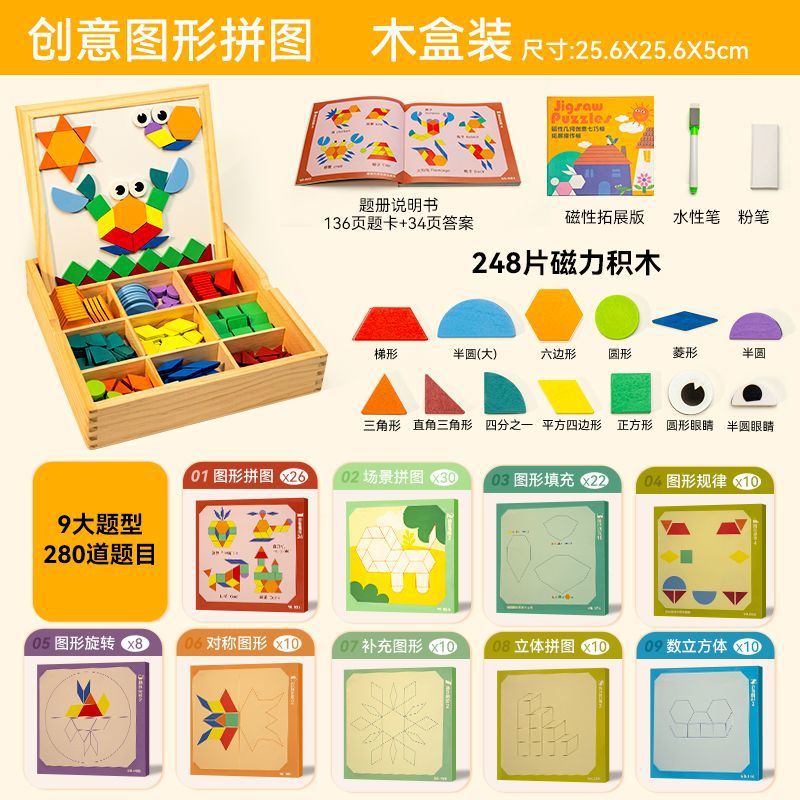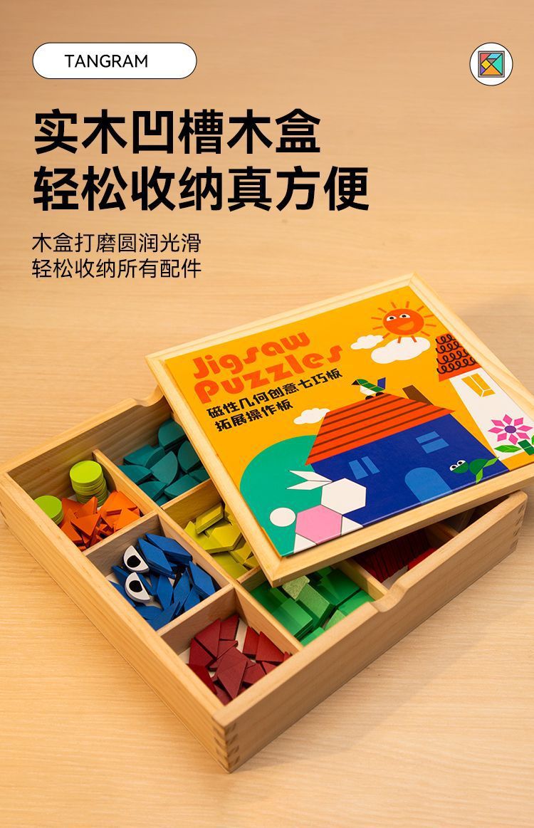 • 288pcs 자기 기하학 퍼즐 빌딩 블록-대형 나무 상자
