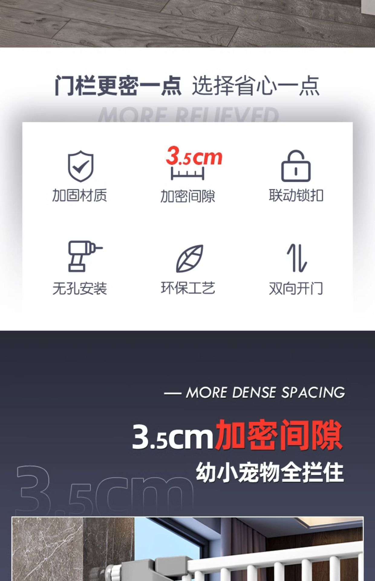 • 높이 150cm, 간격 3.5cm, 자동문 닫힘