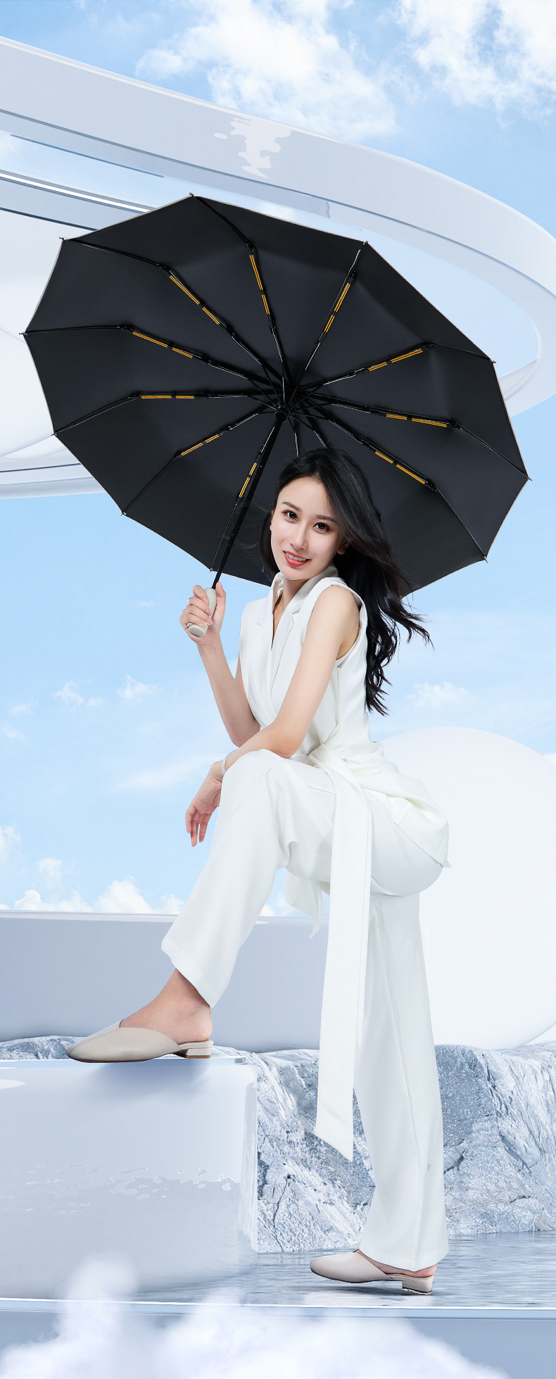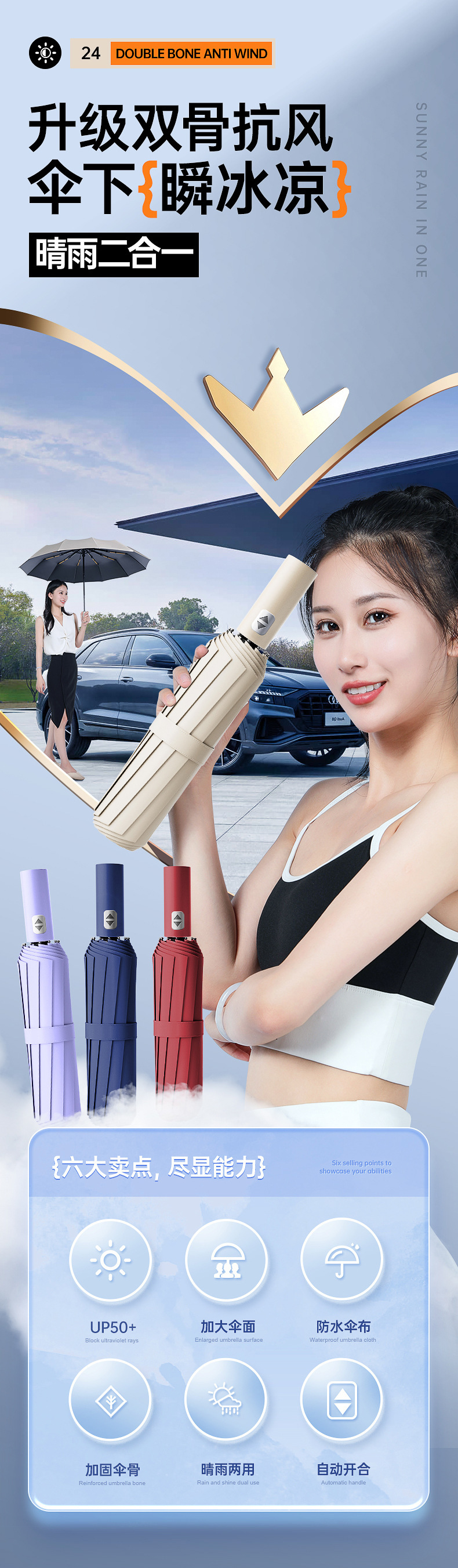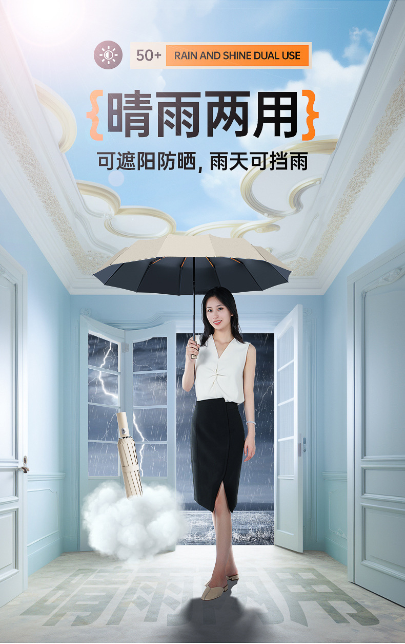 비즈니스 12 가닥 더블 스트랜드 자동 우산 블랙 고무 태양 보호 자외선 보호 태양 우산 맑고 비 이중 목적 접는 햇빛 우산