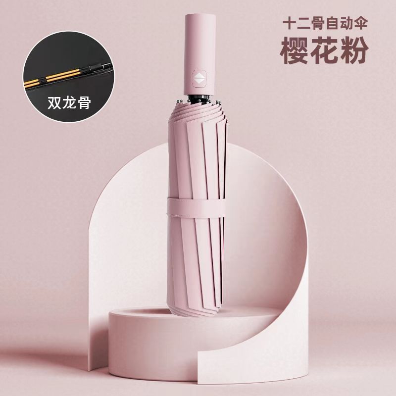 비즈니스 12 가닥 더블 스트랜드 자동 우산 블랙 고무 태양 보호 자외선 보호 태양 우산 맑고 비 이중 목적 접는 햇빛 우산스토어 가기