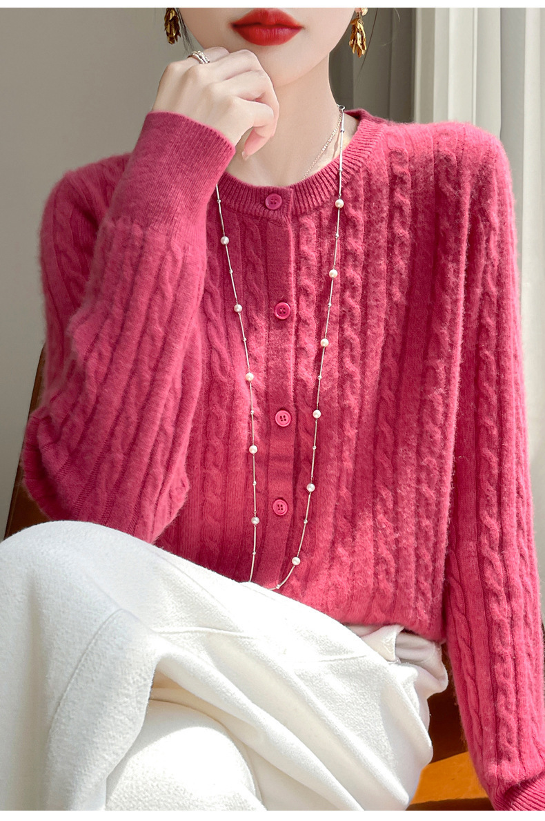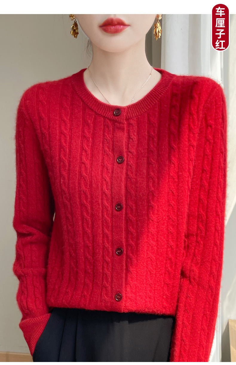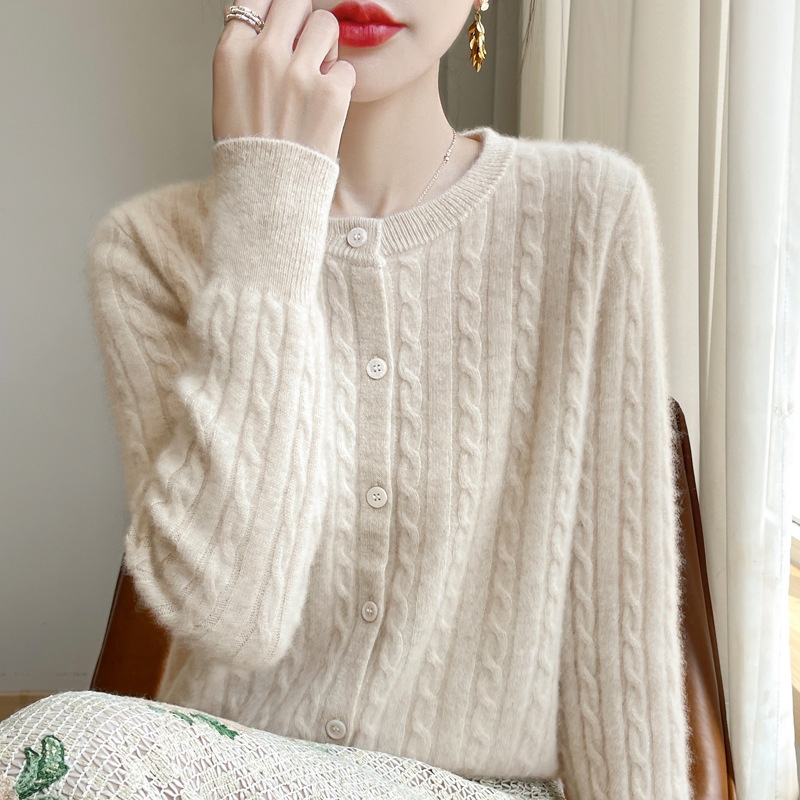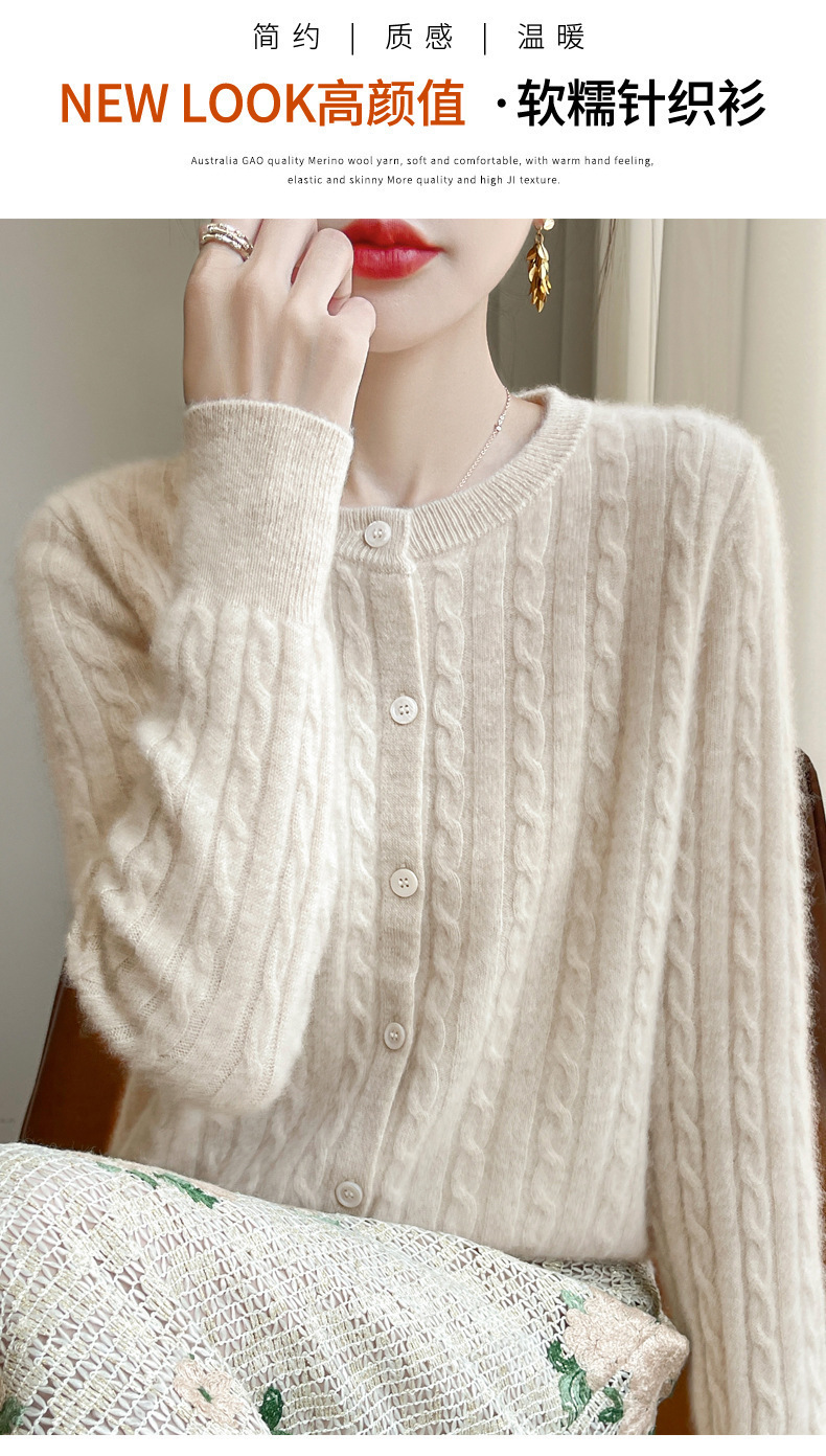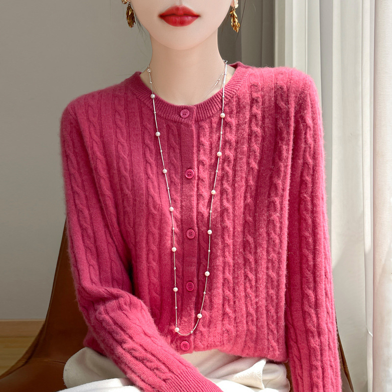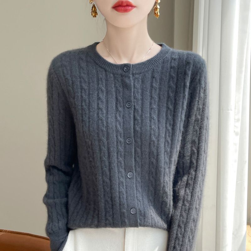 봄과 가을 크루 넥 스웨터 여성의 2024 새로운 싱글 브레스트 코트 솔리드 컬러 트위스트 카디건 웨스턴 스타일 스웨터