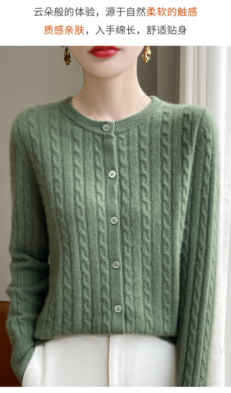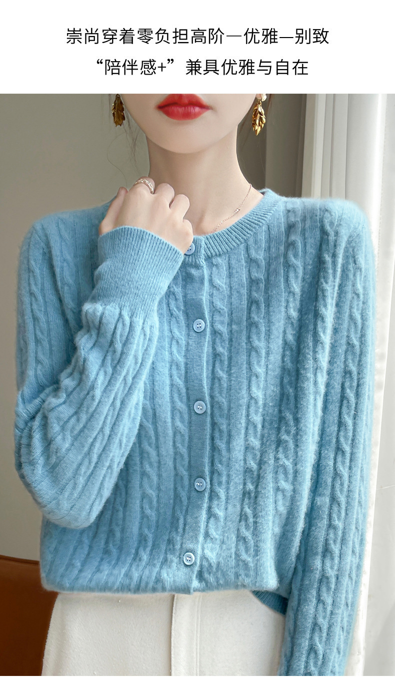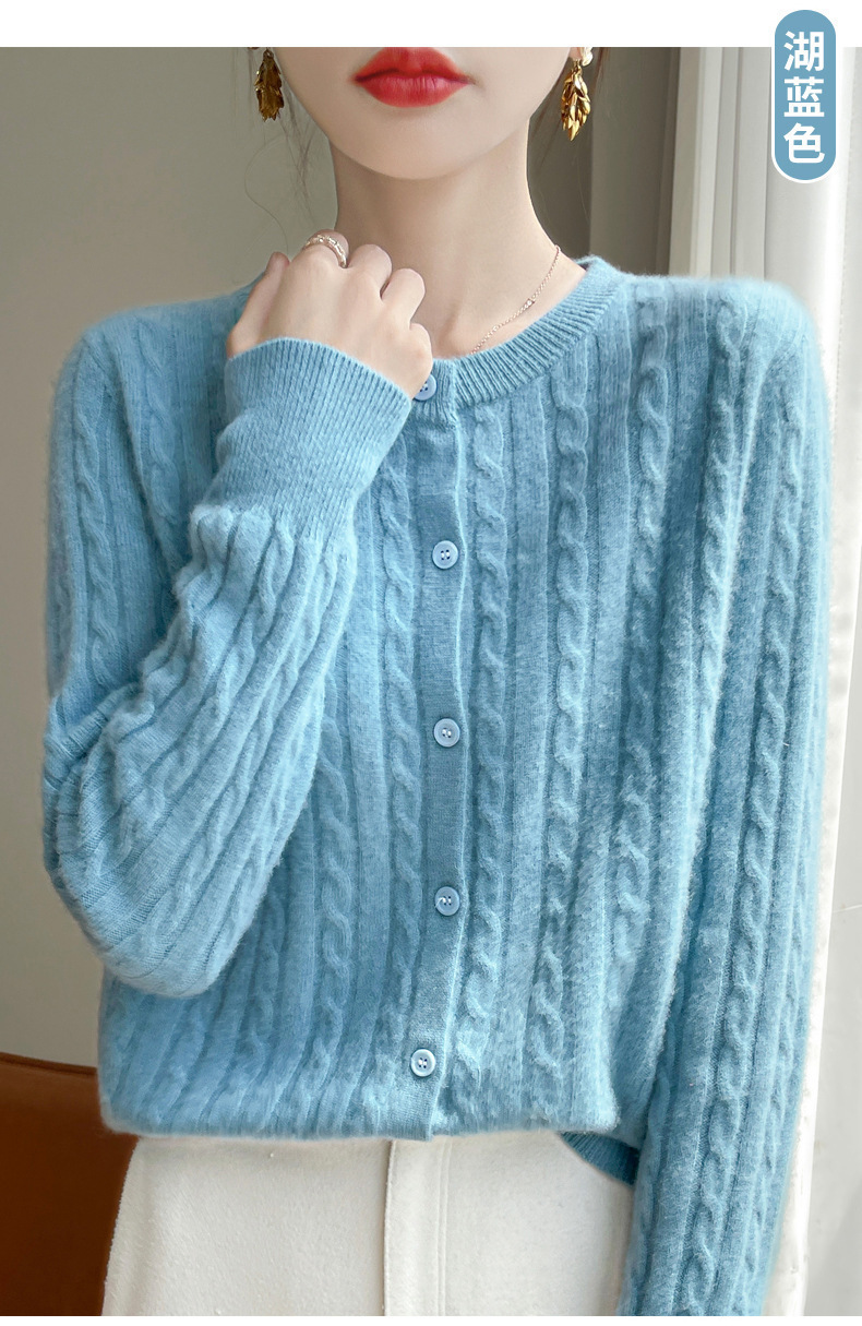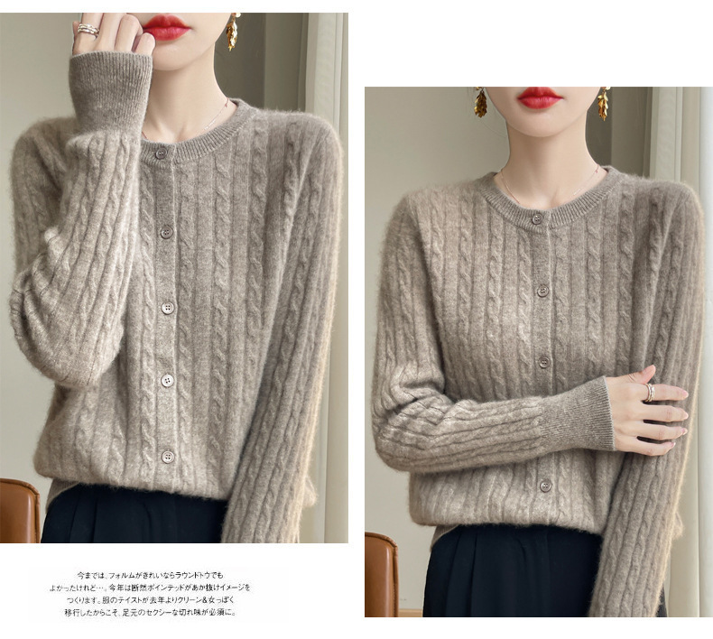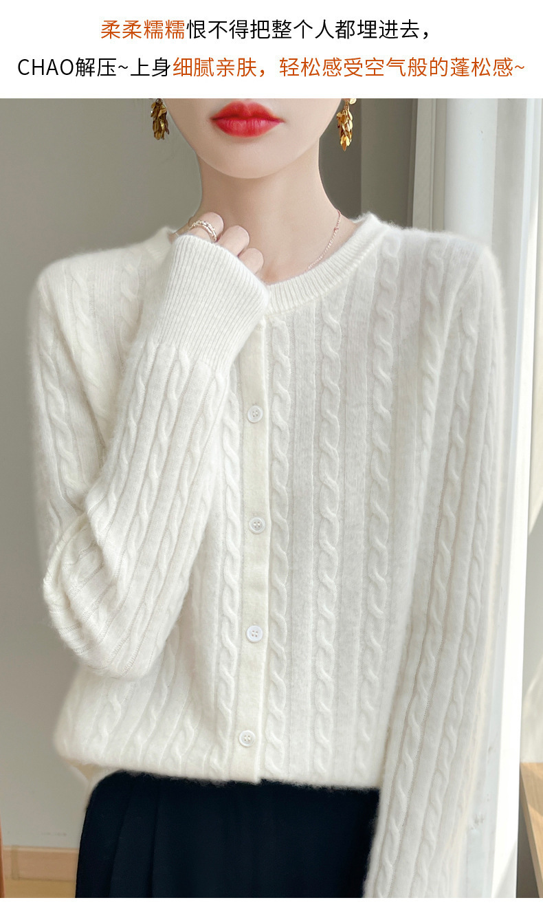 봄과 가을 크루 넥 스웨터 여성의 2024 새로운 싱글 브레스트 코트 솔리드 컬러 트위스트 카디건 웨스턴 스타일 스웨터