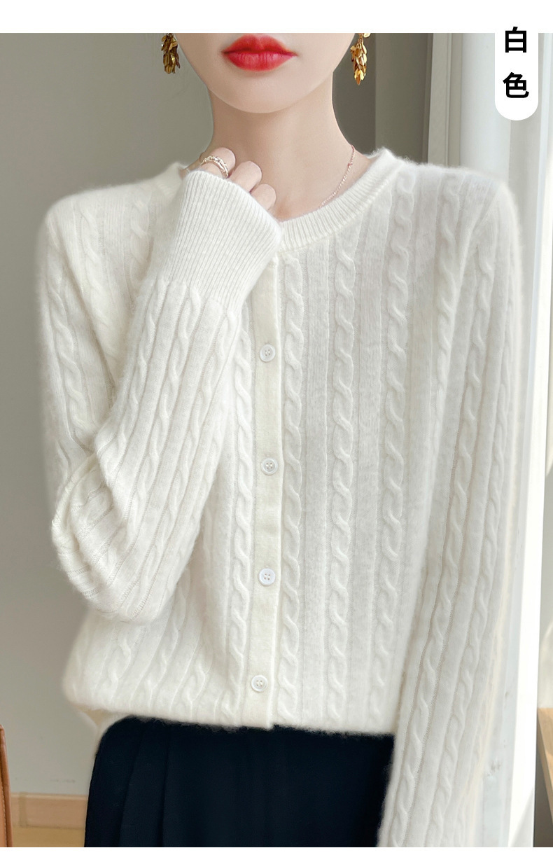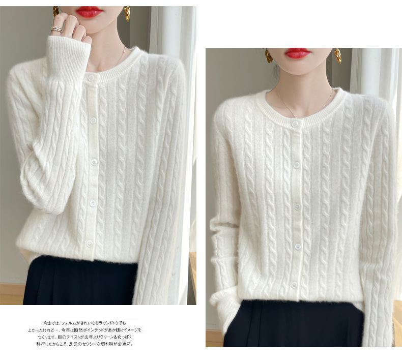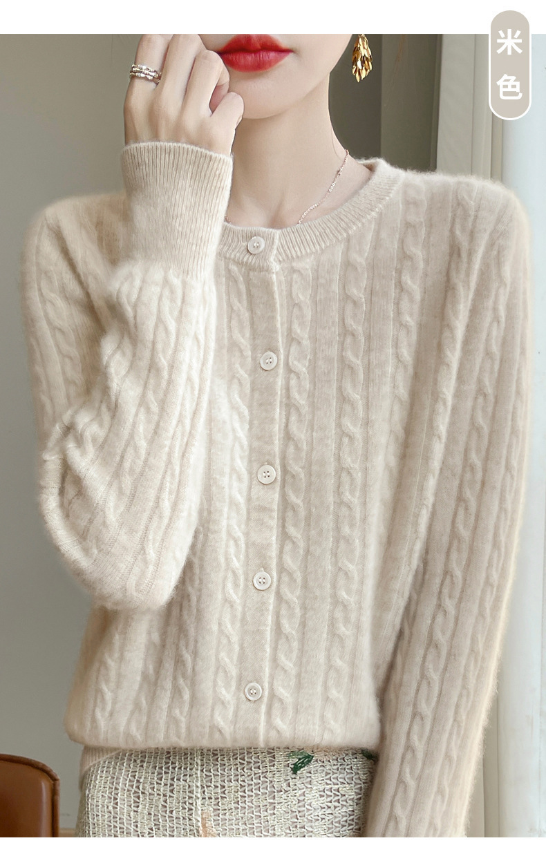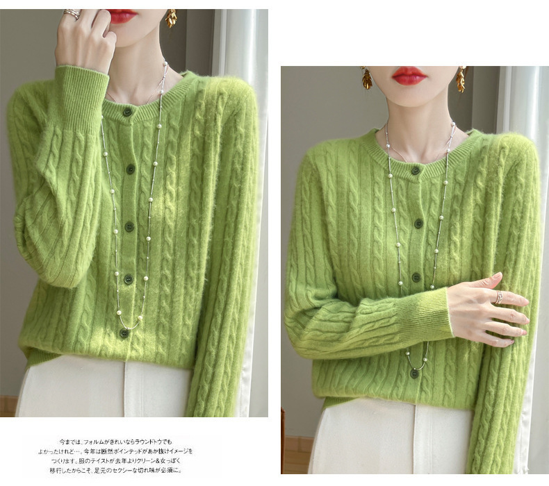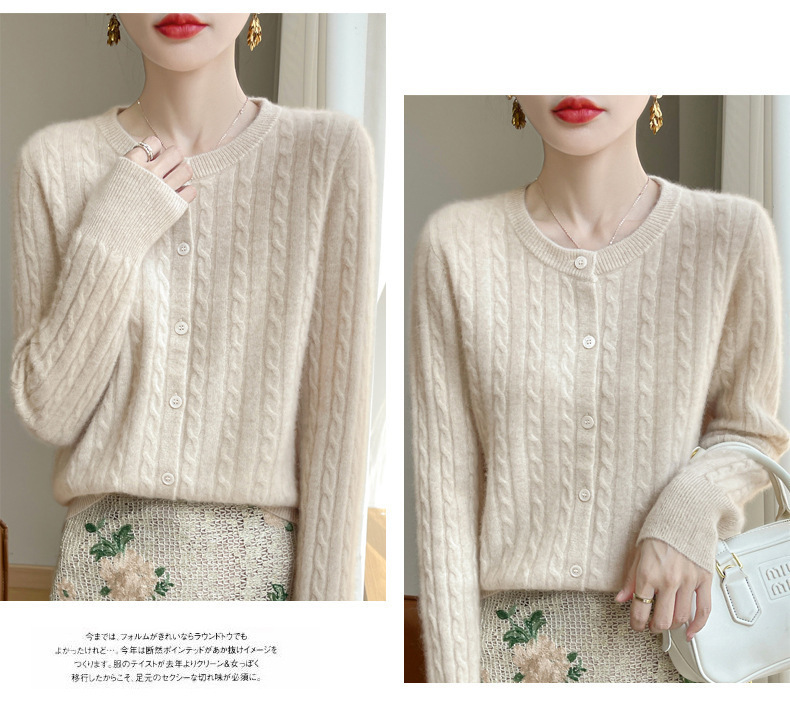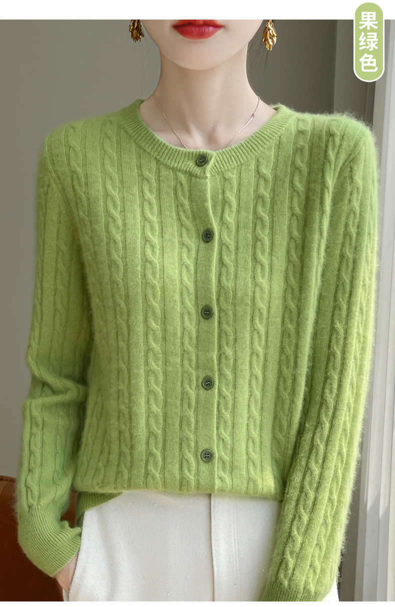 봄과 가을 크루 넥 스웨터 여성의 2024 새로운 싱글 브레스트 코트 솔리드 컬러 트위스트 카디건 웨스턴 스타일 스웨터