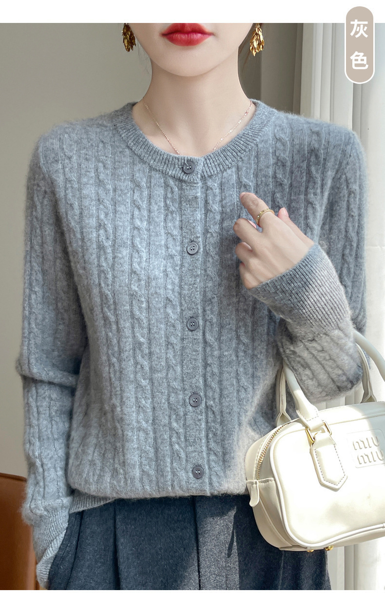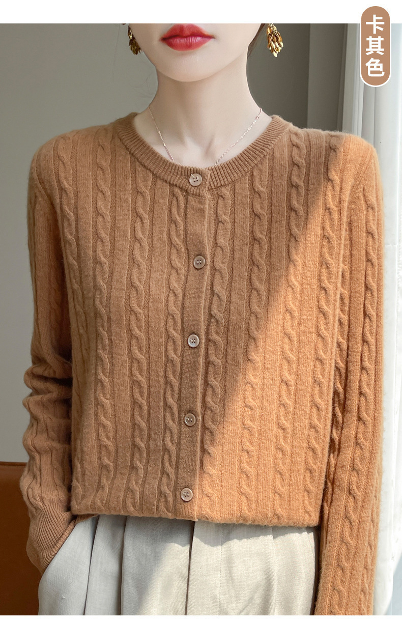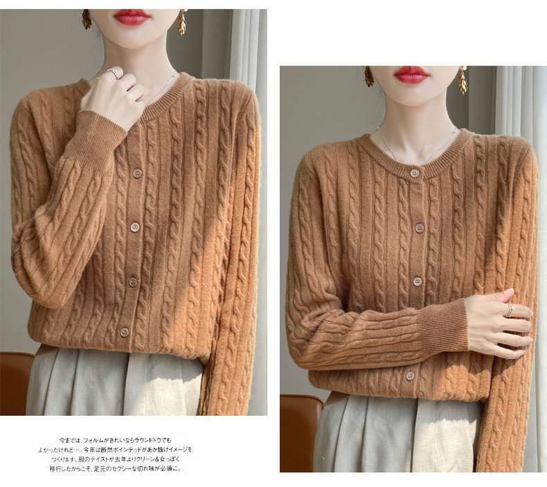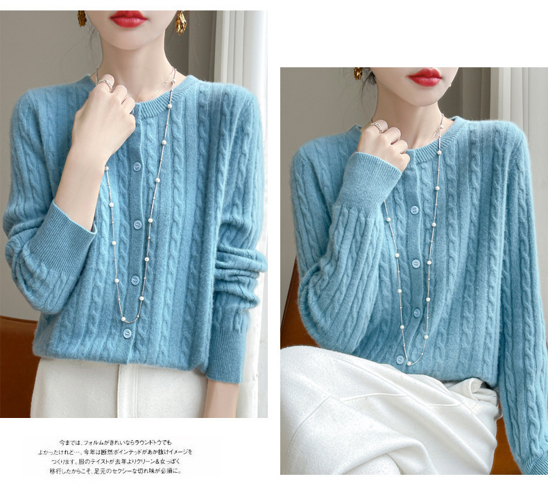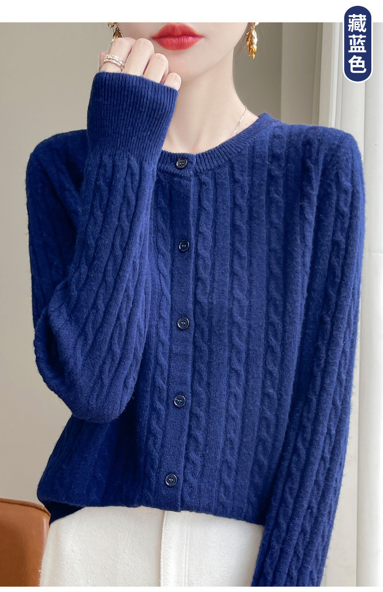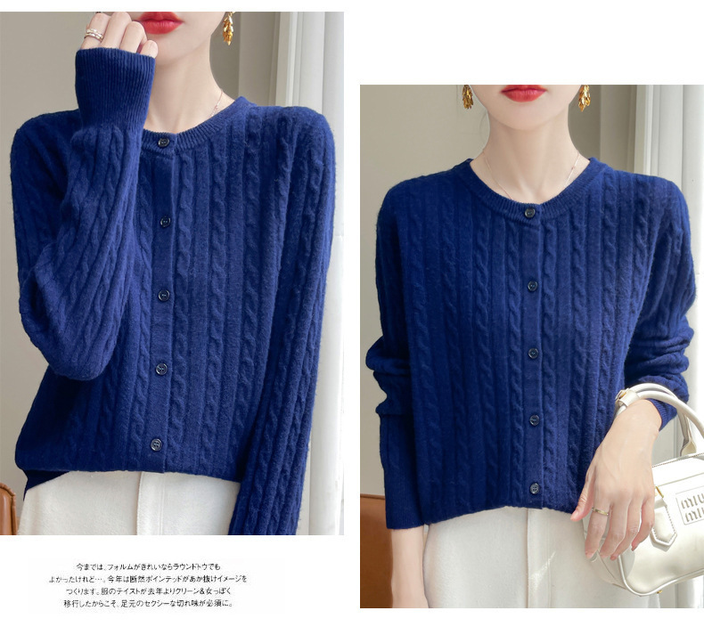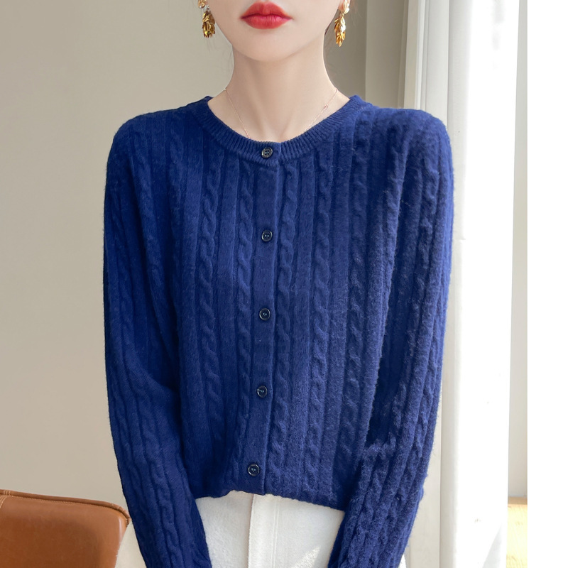 봄과 가을 크루 넥 스웨터 여성의 2024 새로운 싱글 브레스트 코트 솔리드 컬러 트위스트 카디건 웨스턴 스타일 스웨터스토어 가기