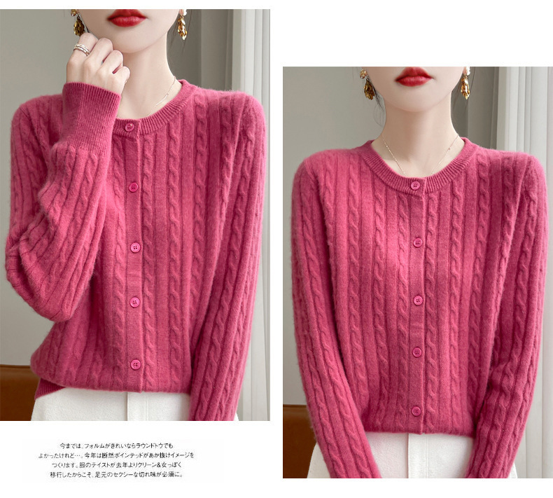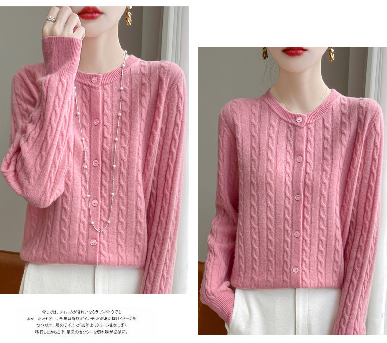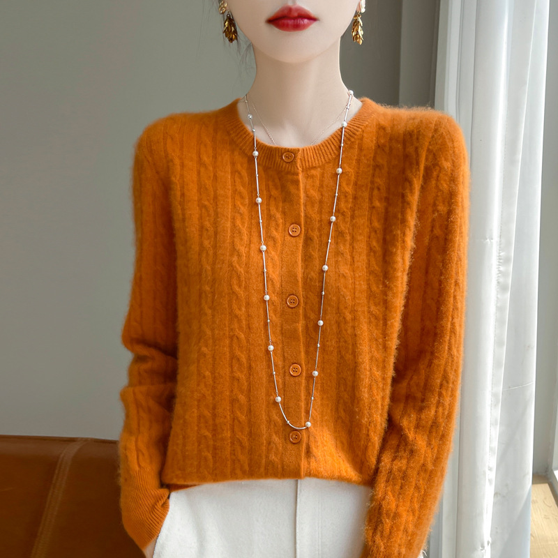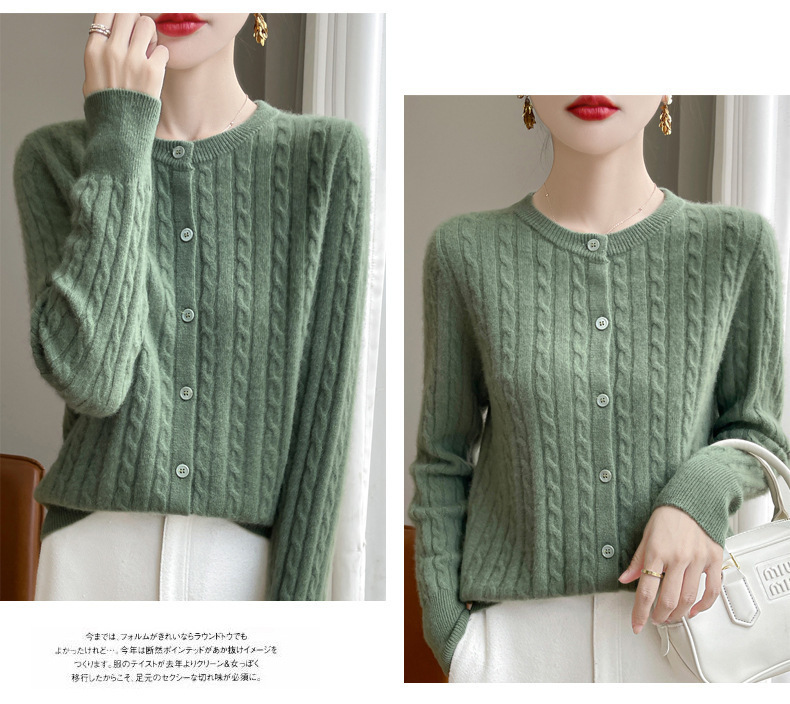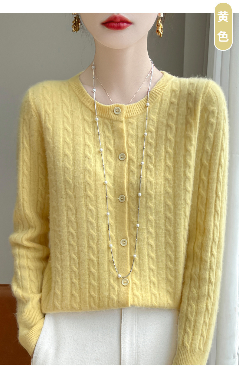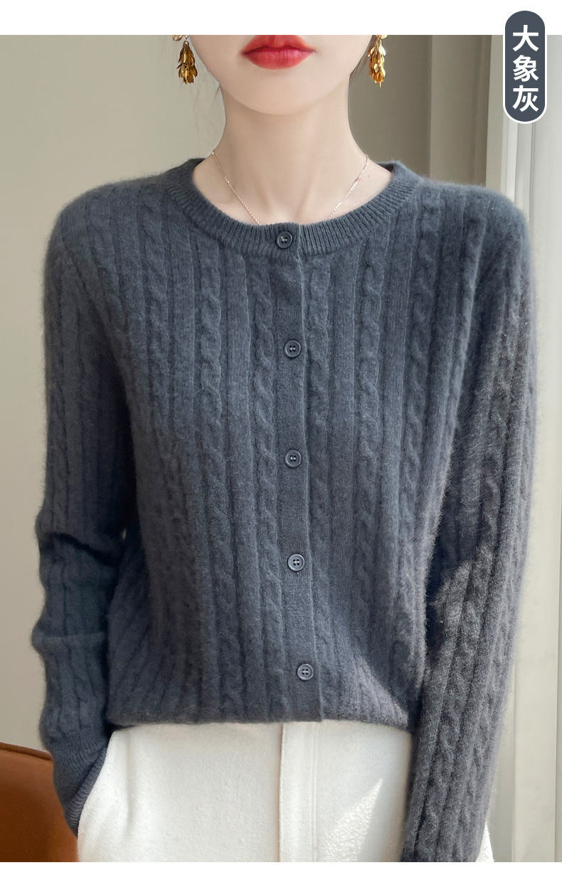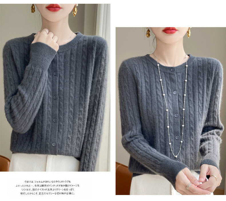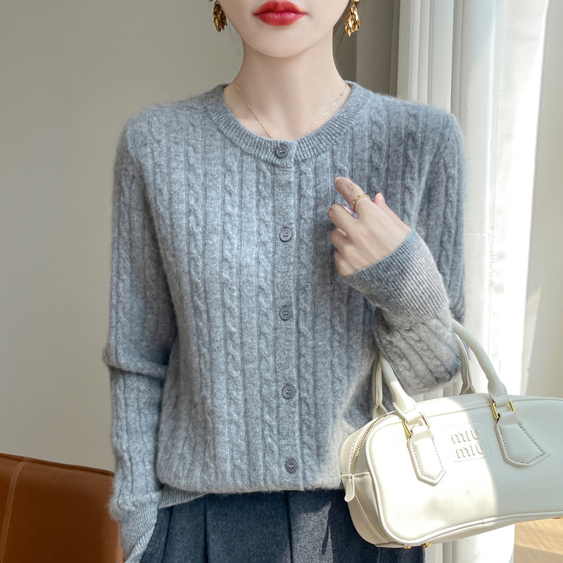 봄과 가을 크루 넥 스웨터 여성의 2024 새로운 싱글 브레스트 코트 솔리드 컬러 트위스트 카디건 웨스턴 스타일 스웨터스토어 가기