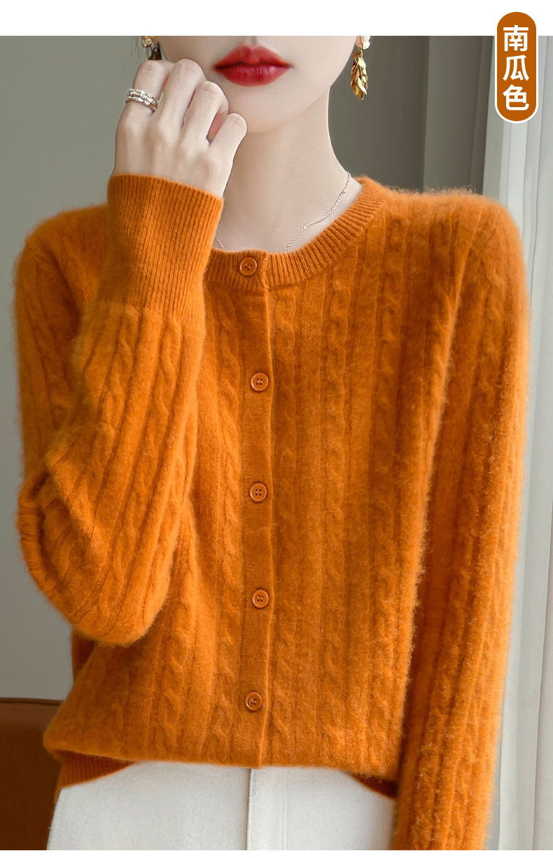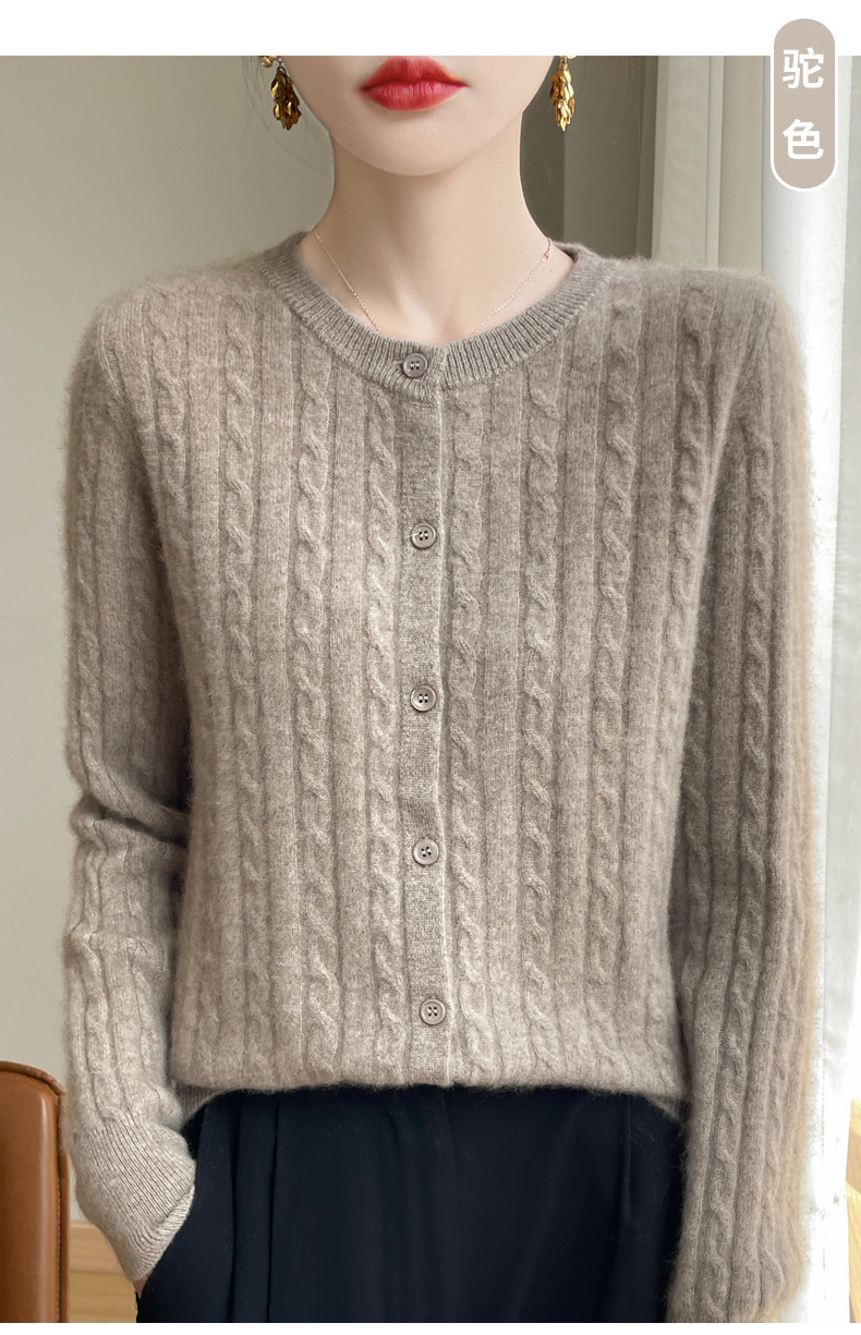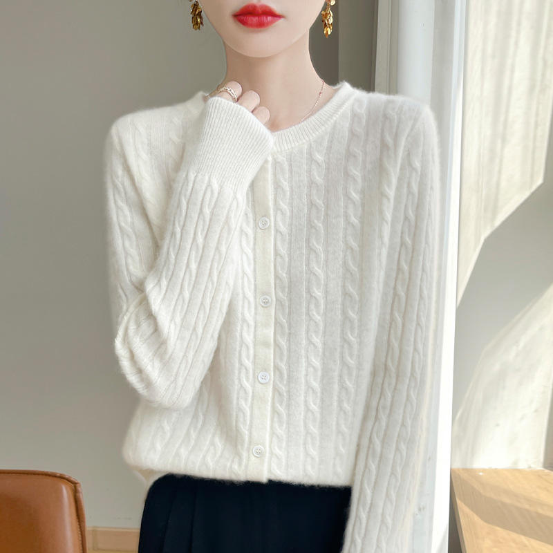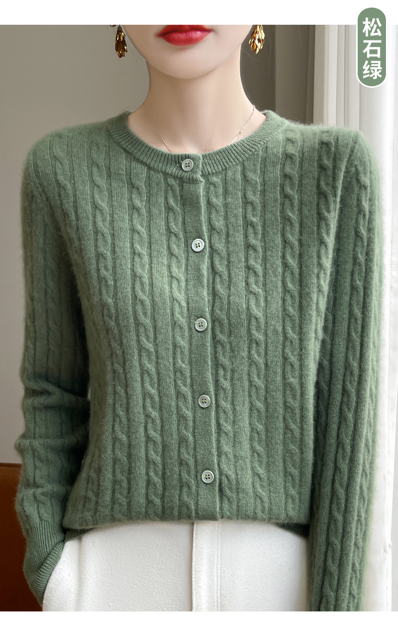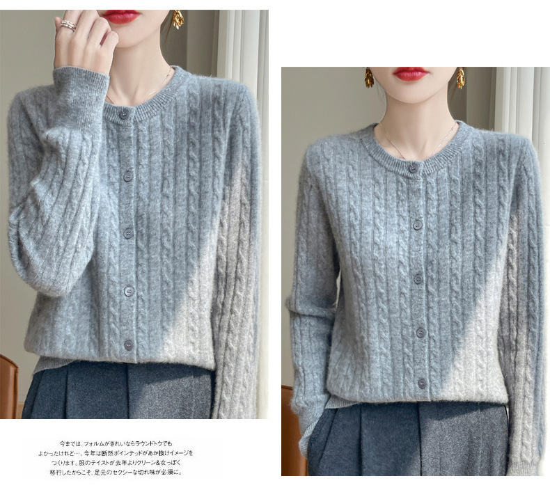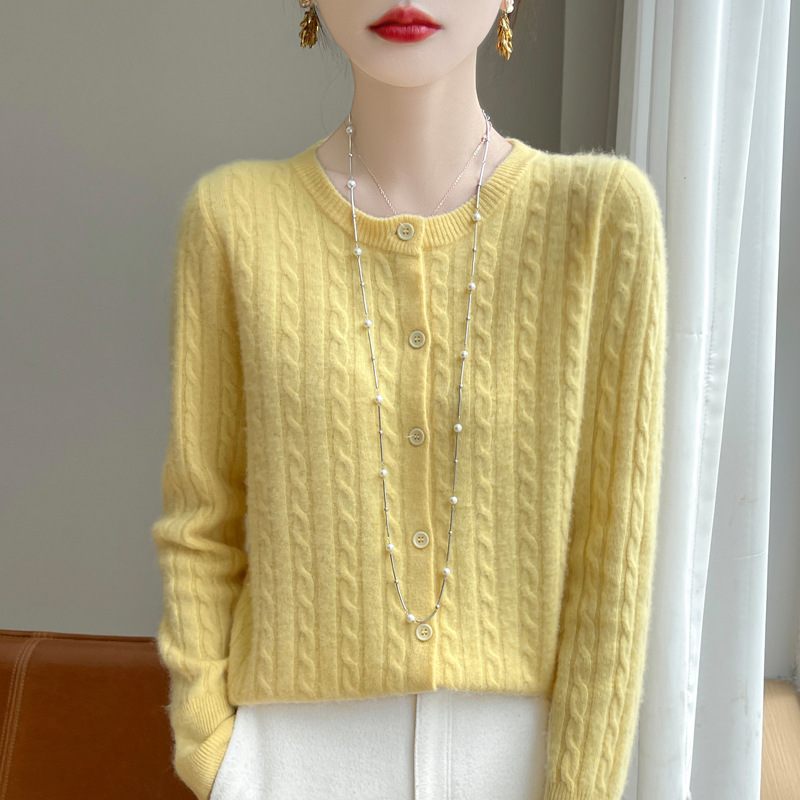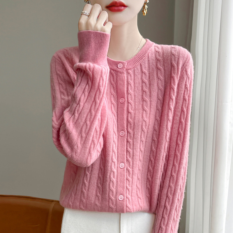 봄과 가을 크루 넥 스웨터 여성의 2024 새로운 싱글 브레스트 코트 솔리드 컬러 트위스트 카디건 웨스턴 스타일 스웨터스토어 가기