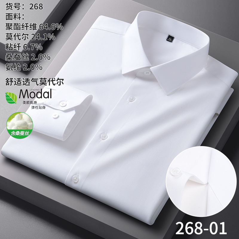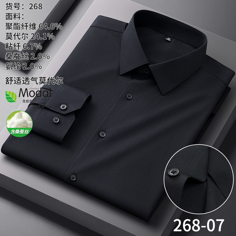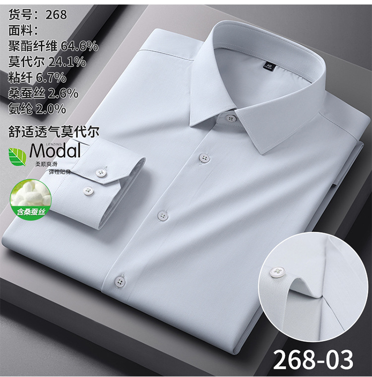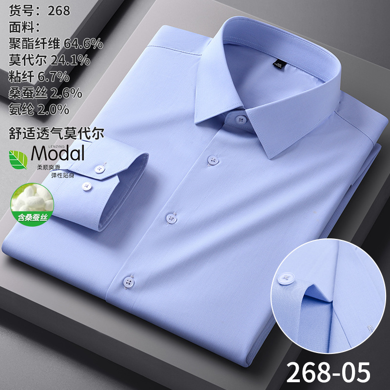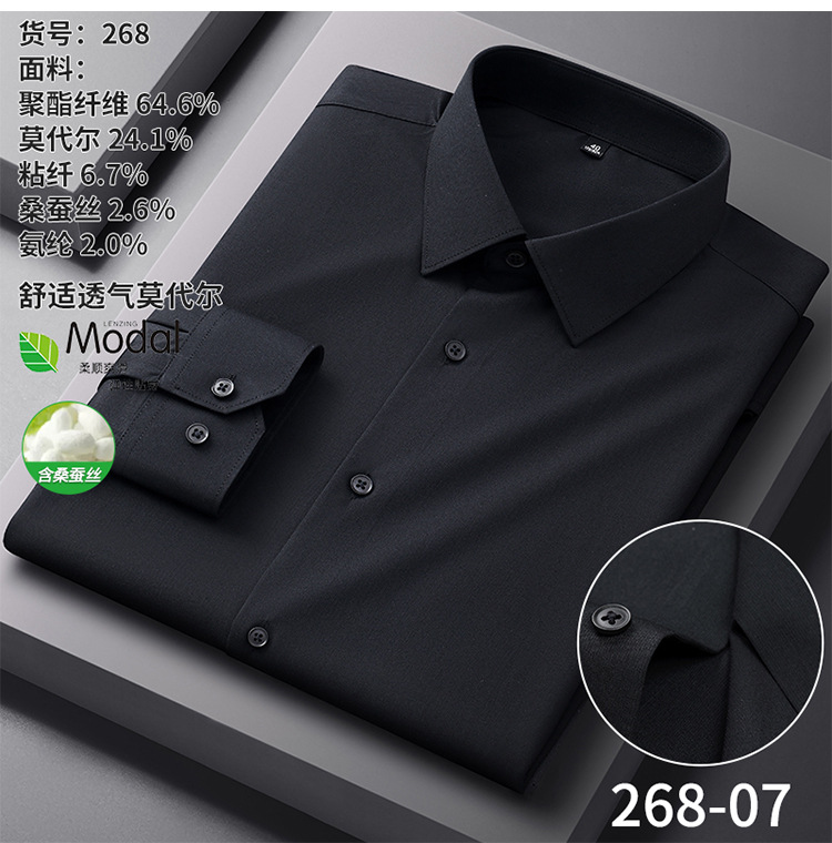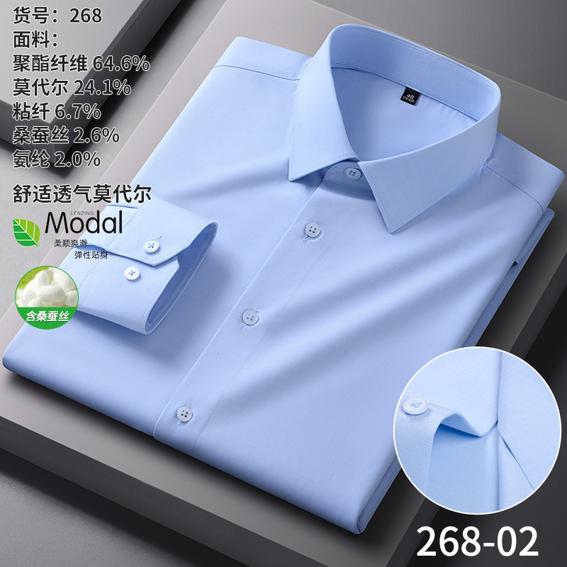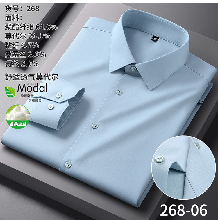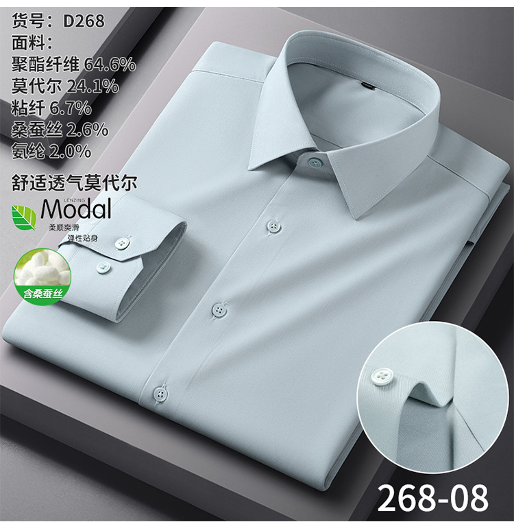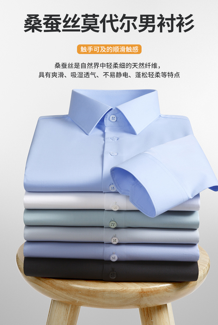 새로운 모달 뽕나무 실크 셔츠 남자의 긴팔 봄과 여름 구름 느낌 수직 주름 방지 셔츠 남자의 가벼운 럭셔리 셔츠