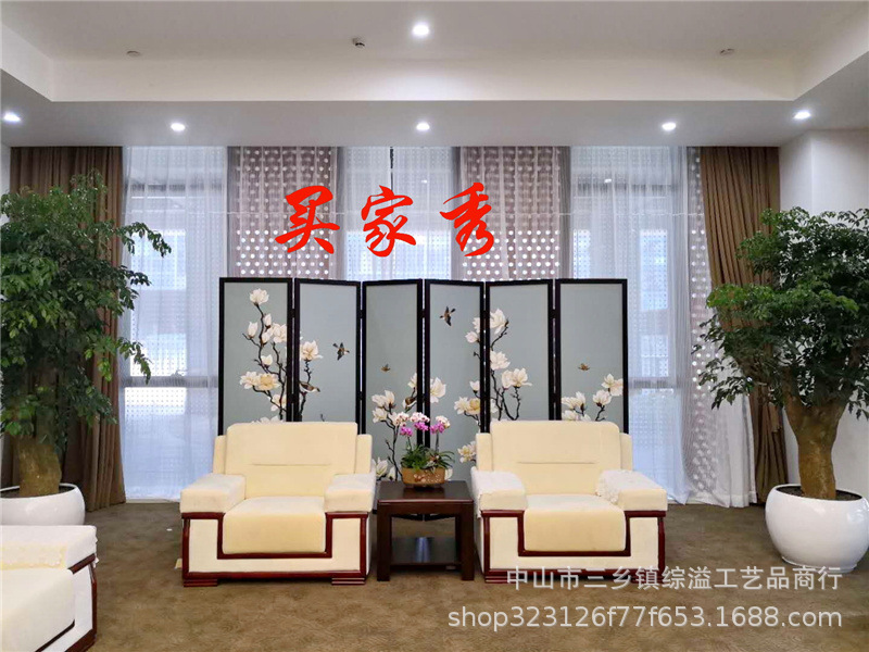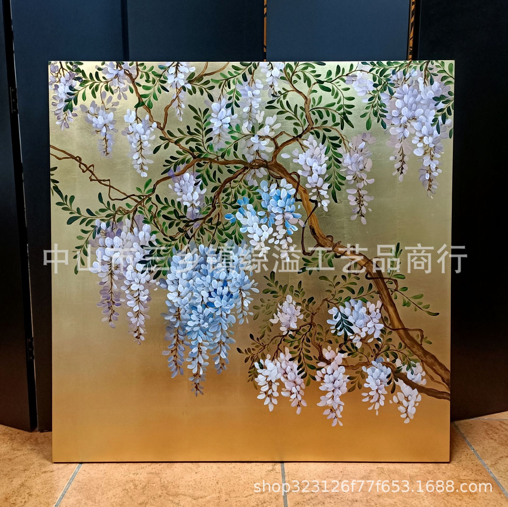 골드 호일 스크린 손으로 그린 등나무 꽃 거실 빌라 사무실 소파 배경 장식 접이식 화면 보라색 공기 동쪽스토어 가기