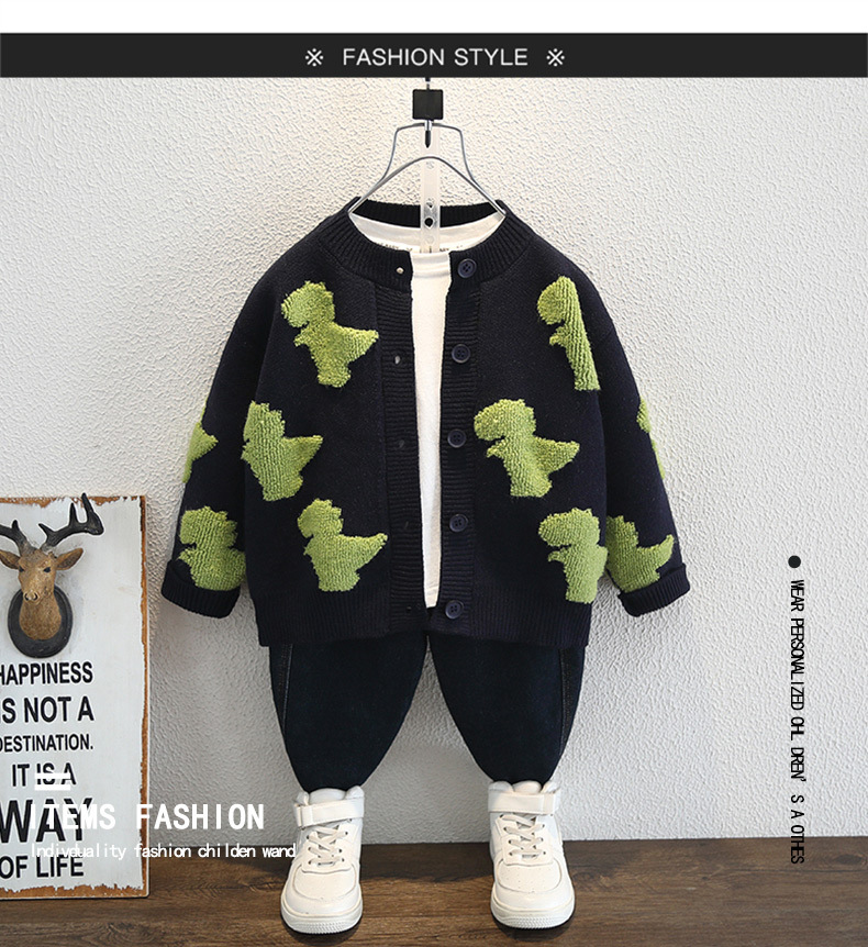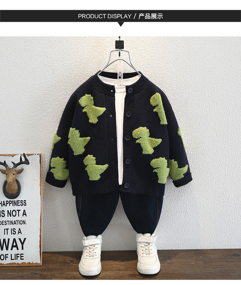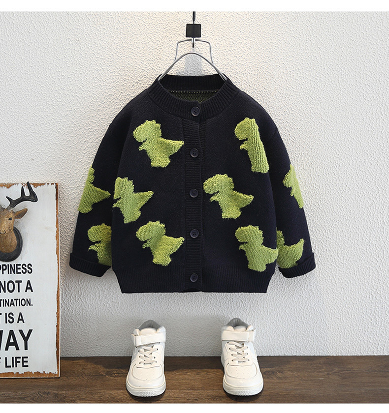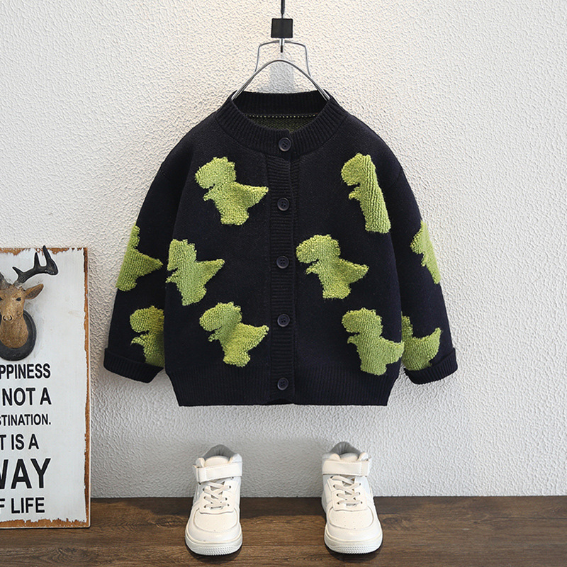 소년 카디건 스웨터 봄과 가을 코트 2025 새로운 러피 잘 생긴 아기 공룡 울 스웨터 멋진스토어 가기
