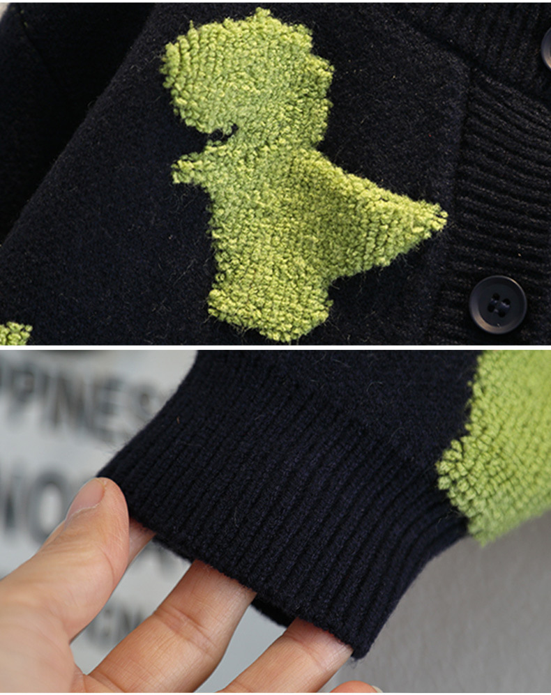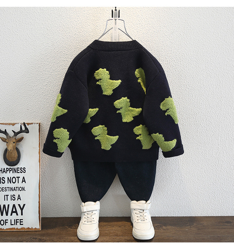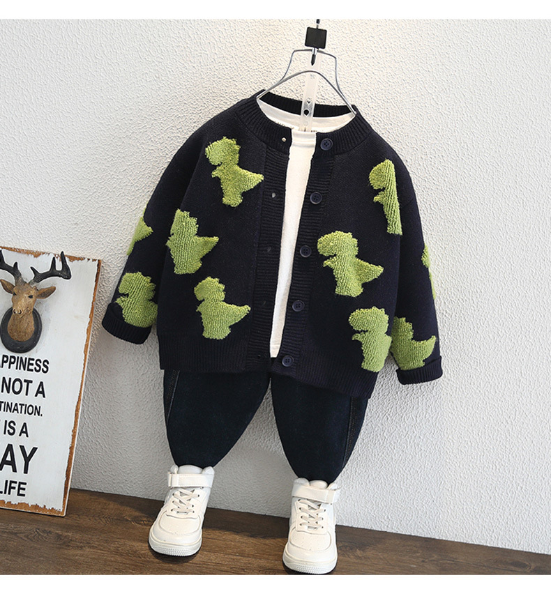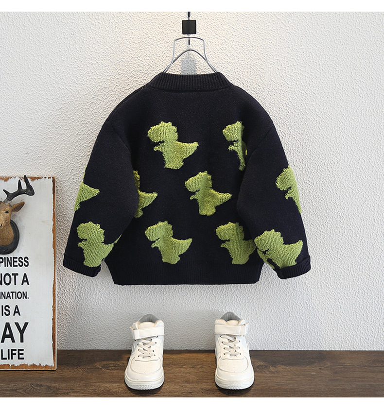 소년 카디건 스웨터 봄과 가을 코트 2025 새로운 러피 잘 생긴 아기 공룡 울 스웨터 멋진
