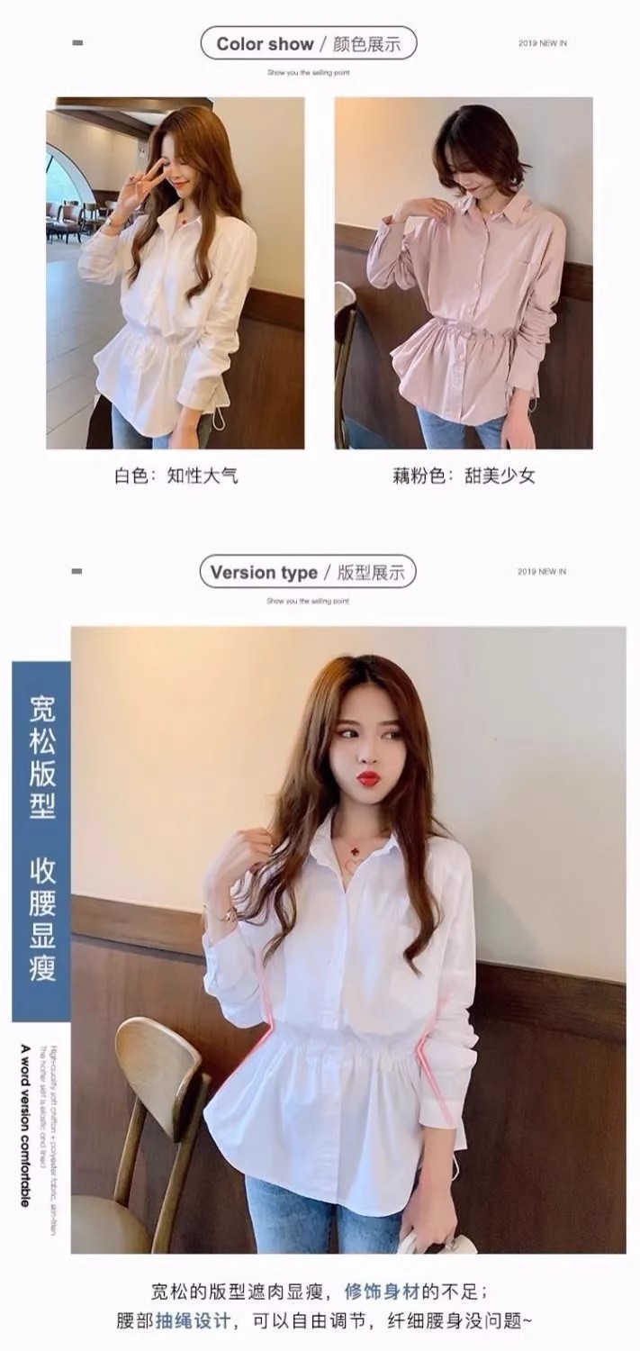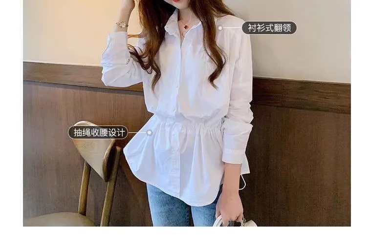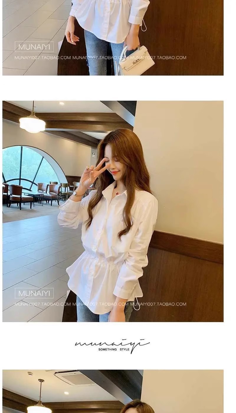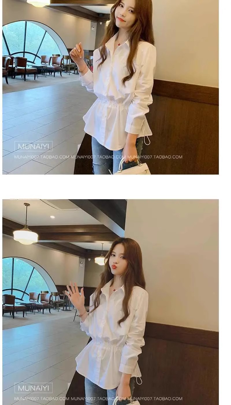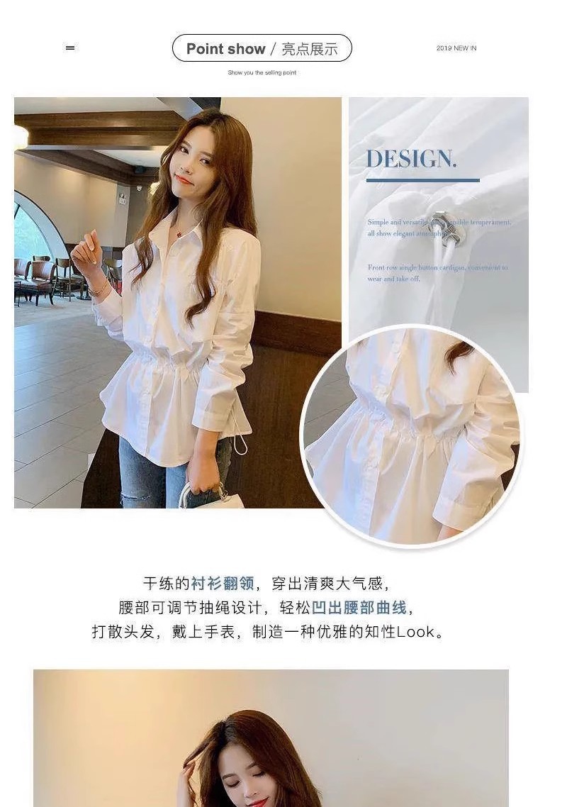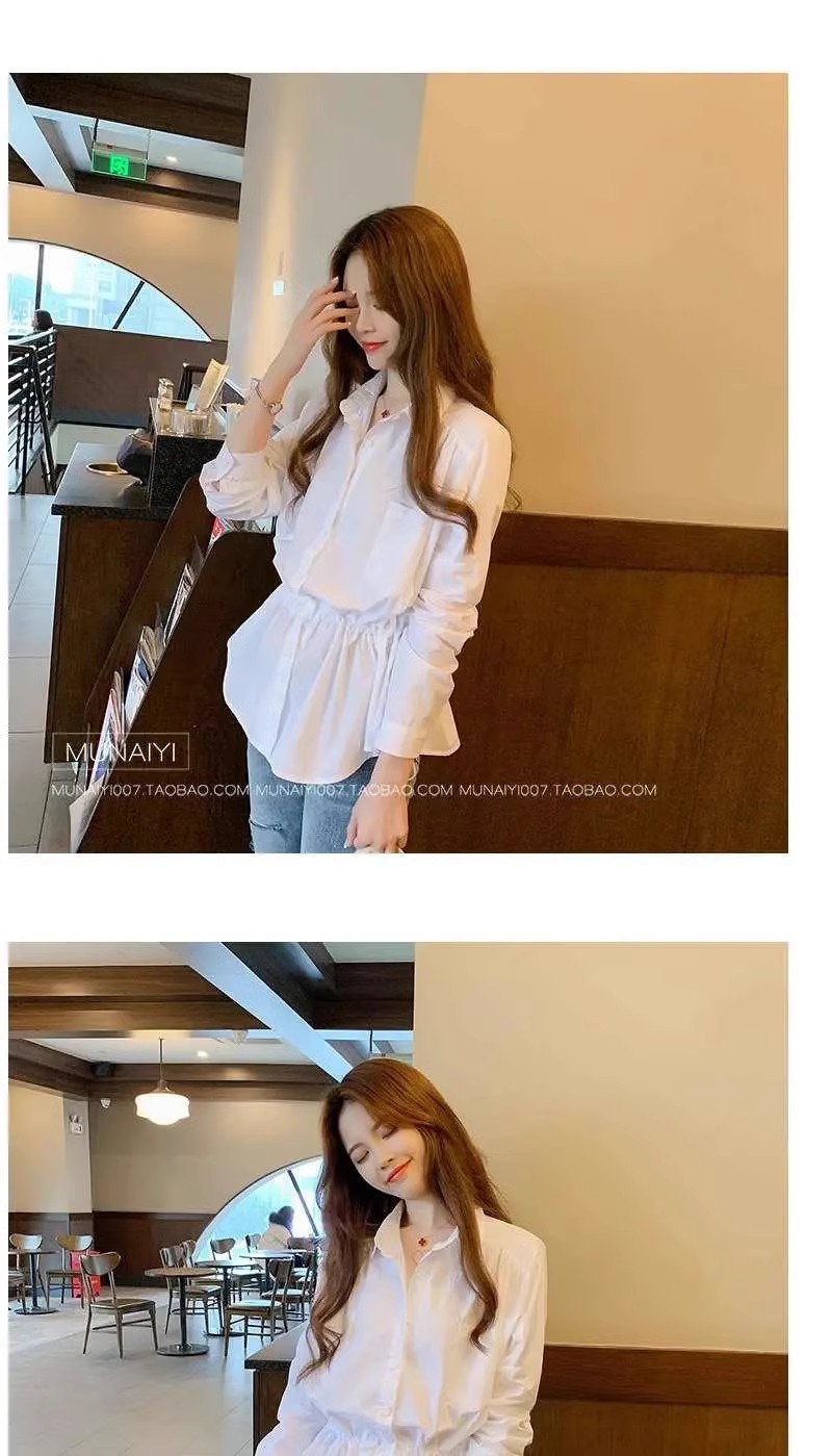 봄과 여름 우아한 허리 쉬폰 화이트 셔츠 여성 디자인 센스 틈새 높은 허리 탑 배꼽 덮음 세련된 아름다운 작은 셔츠스토어 가기