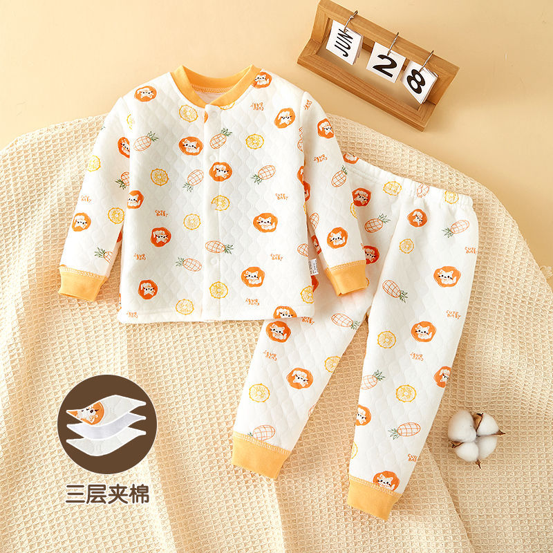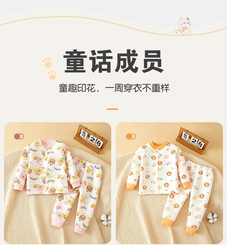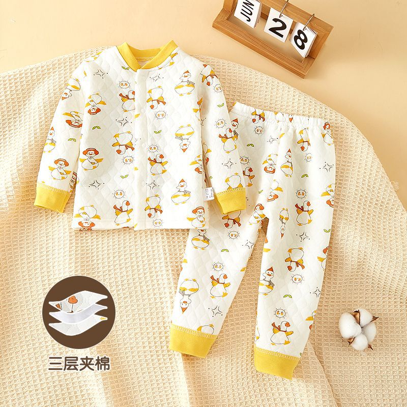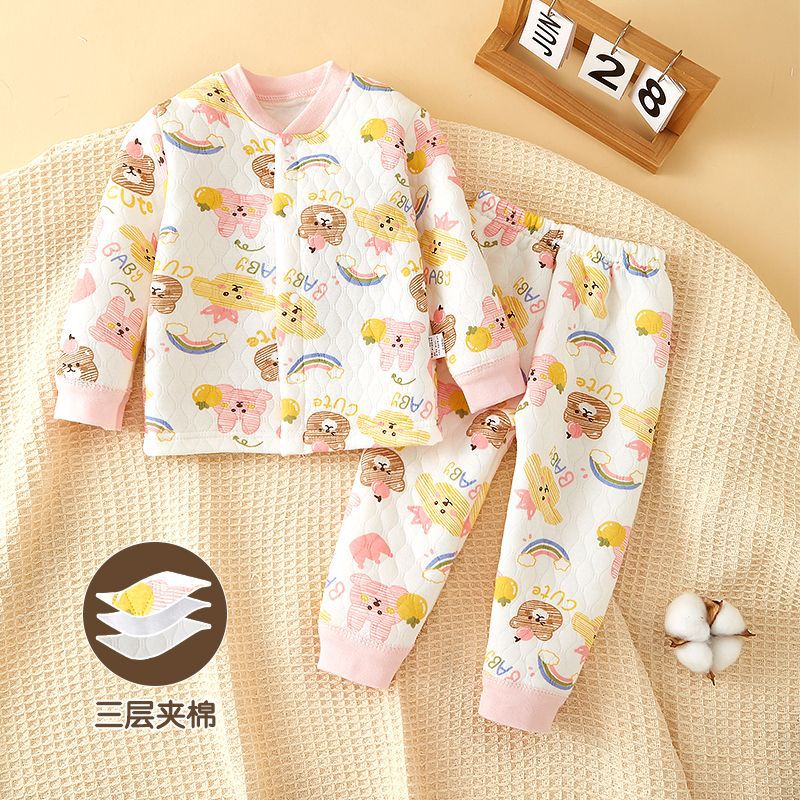 아기의 열 속옷 세트 코튼 아기의 순면 옷 분할 잠옷 신생아 양면 패딩 옷 가을과 겨울